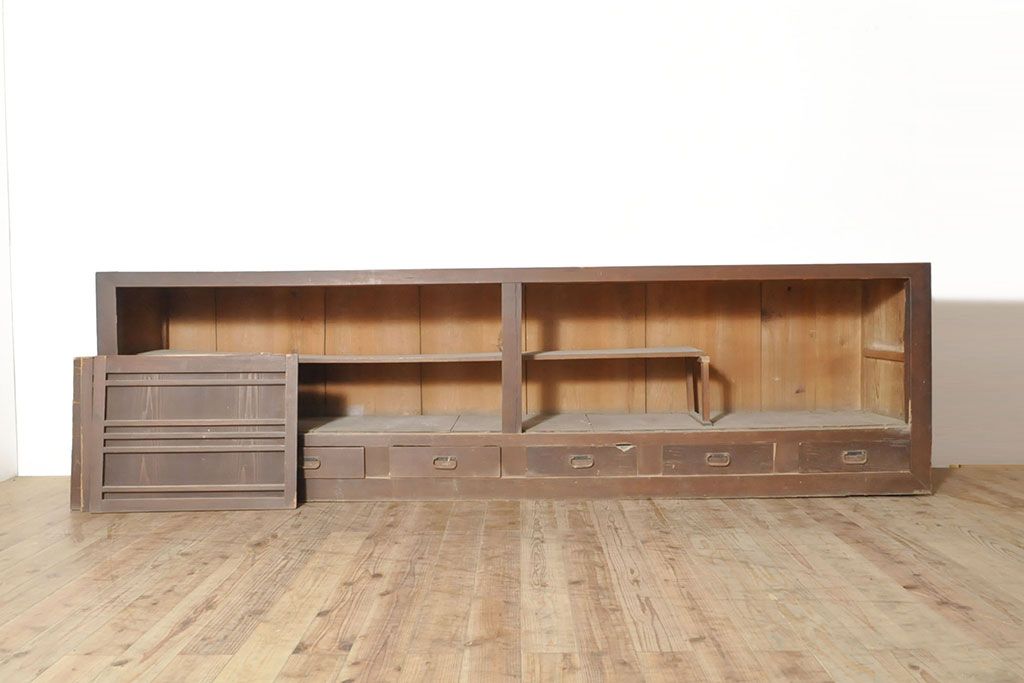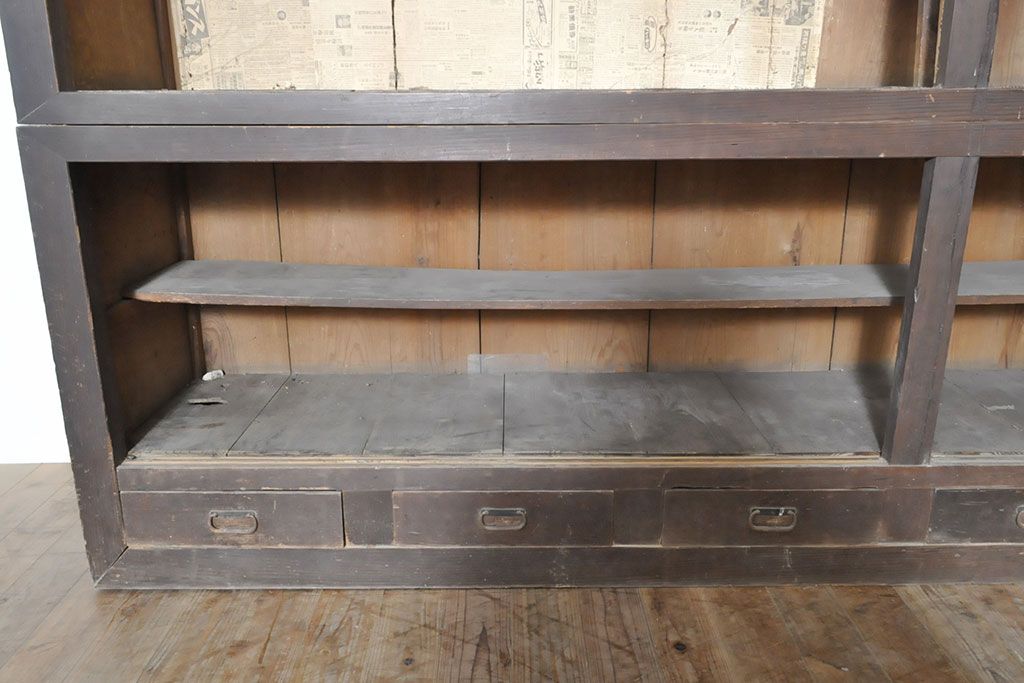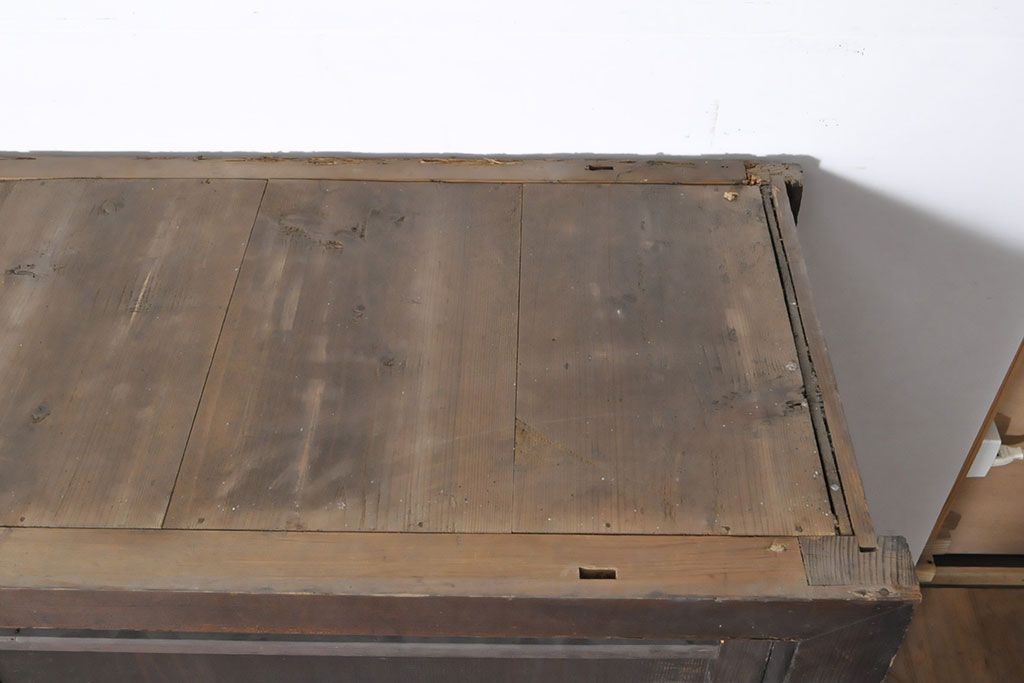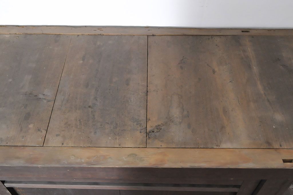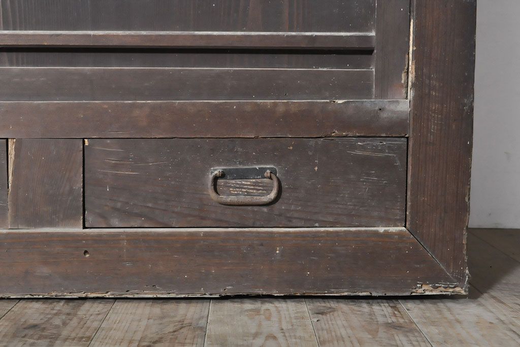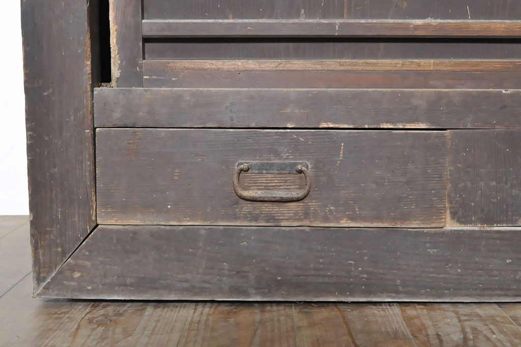 ラフジュ工房> キャビネット・戸棚> 食器棚・カップボード > 和製アンティーク 前面ヒノキ材 特大サイズ!九尺収納箪笥キャビネット(水屋箪笥、食器棚、収納棚、サイドボード)(R-051517)