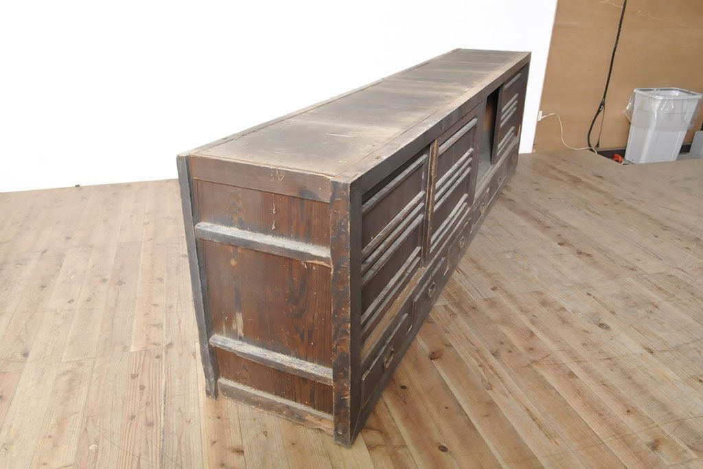 ラフジュ工房> 和箪笥 > 和製アンティーク 前面ヒノキ材 特大サイズ!九尺収納箪笥キャビネット(水屋箪笥、食器棚、収納棚、サイドボード)(R-051517)