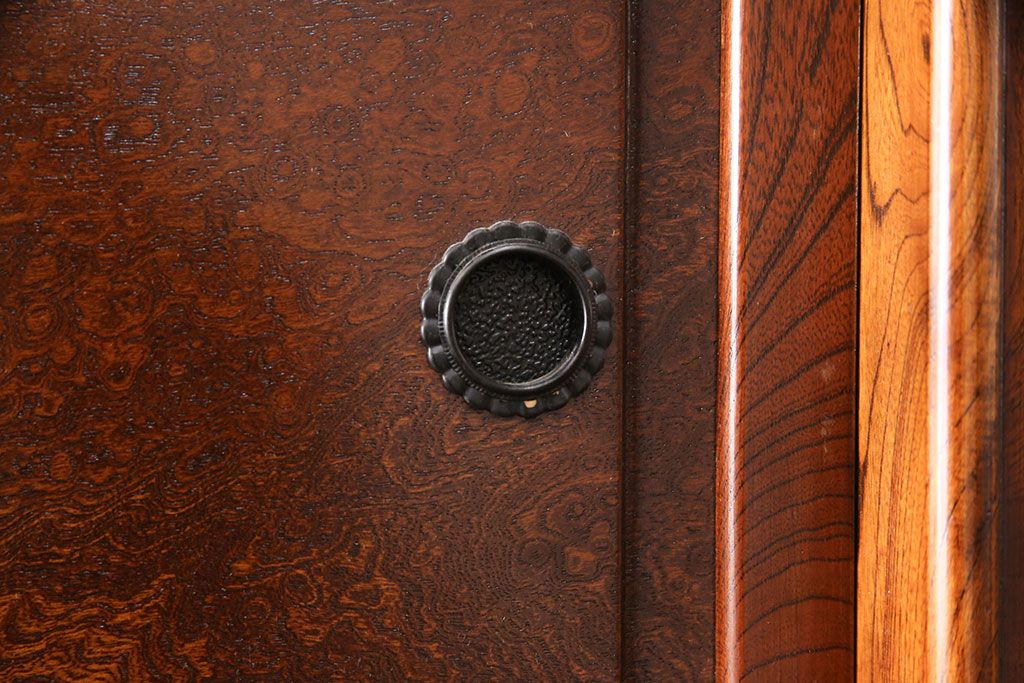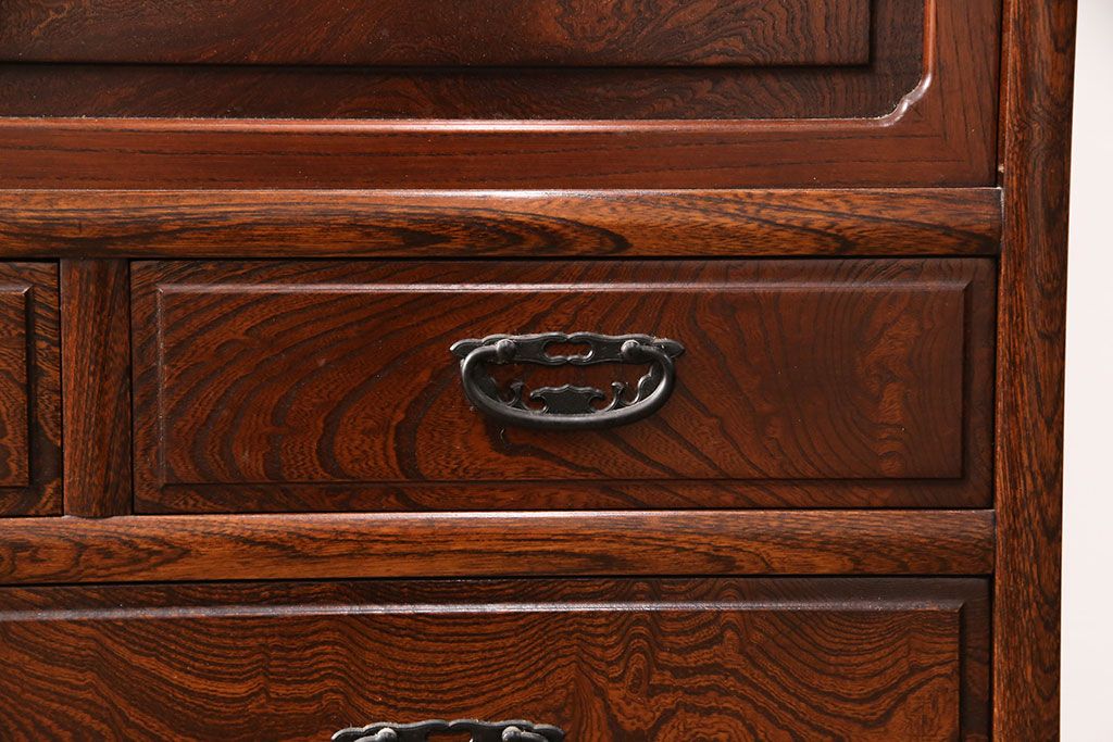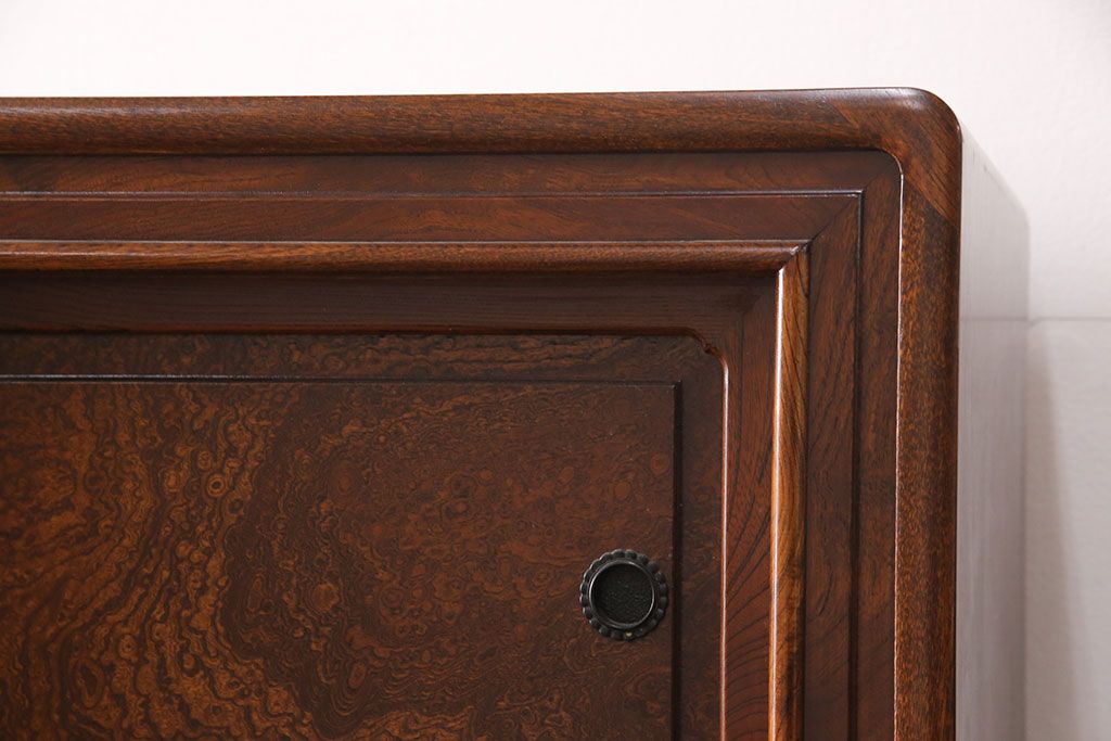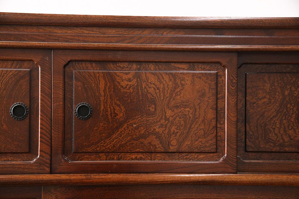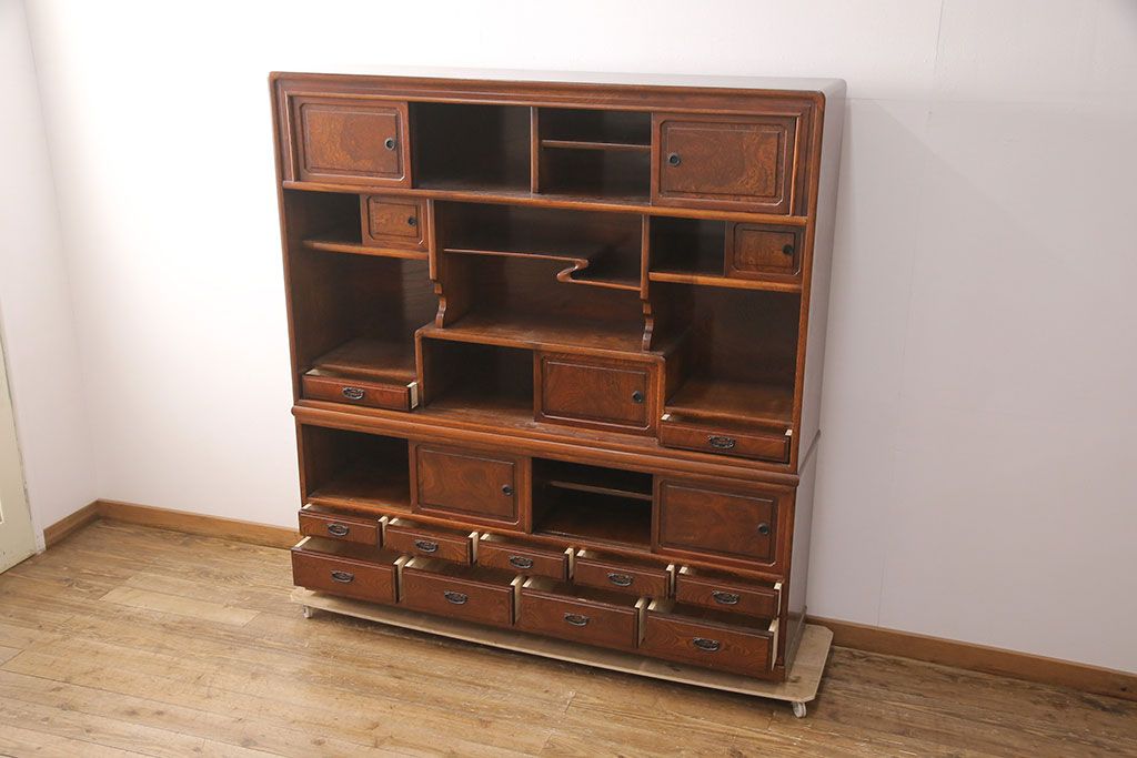 中古 極上品 総漆塗り 前面ケヤキ無垢材 玉杢 最高級品の二段重ね大型茶箪笥(茶棚、飾り棚、収納棚、キャビネット)(定価約250万円)(R-051772)です。