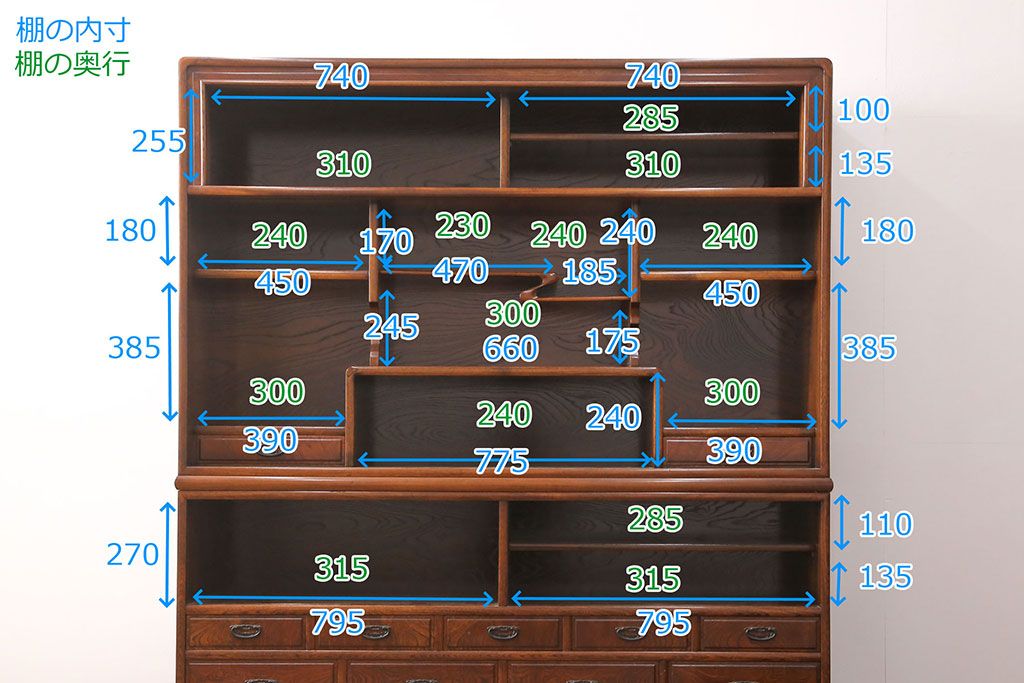 棚の内寸は4枚目の画像に記載しておりますのでそちらをご参考ください。