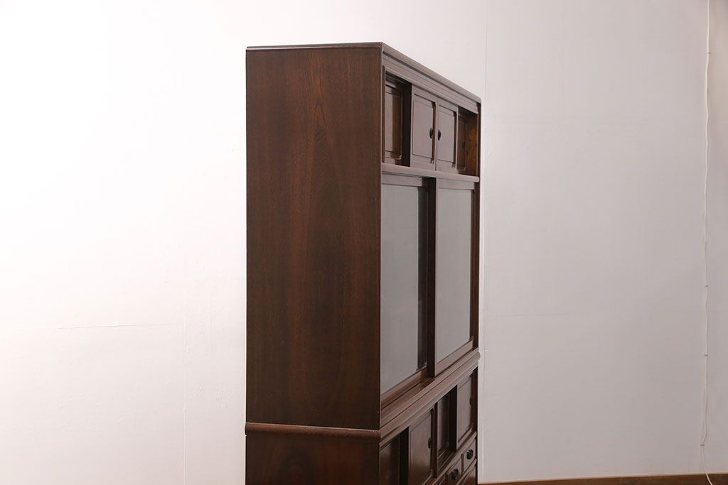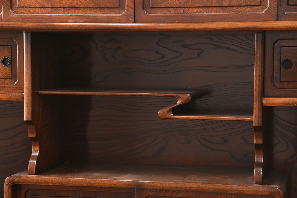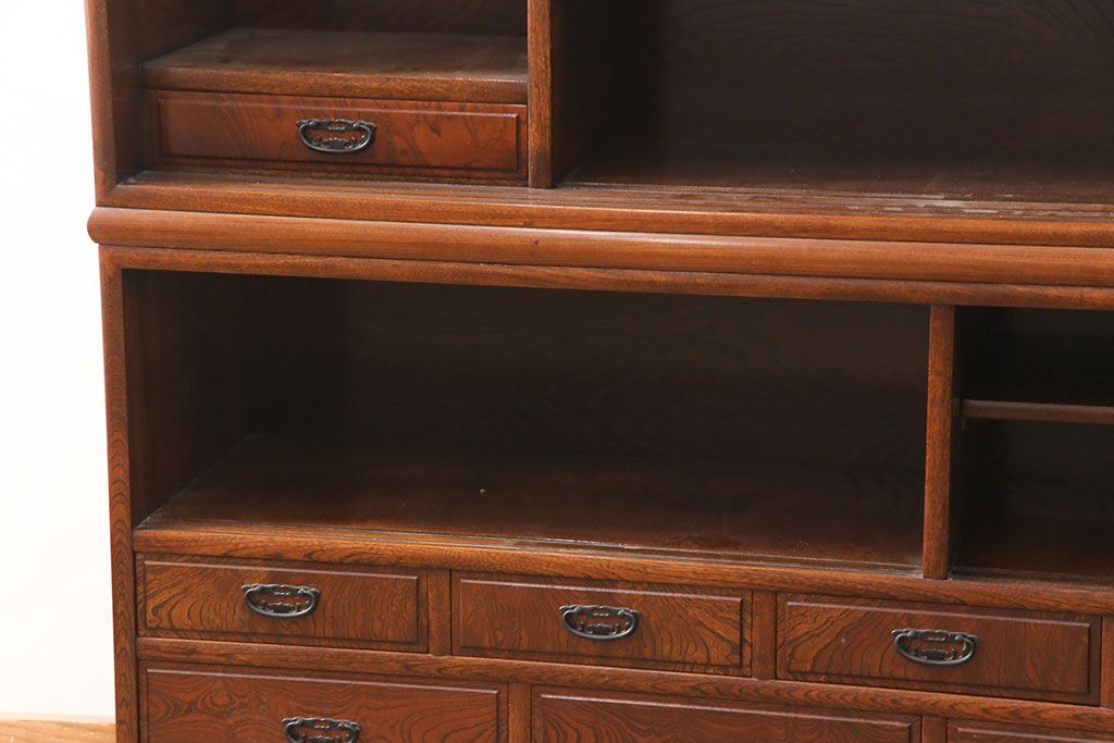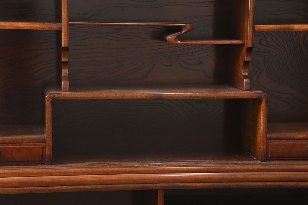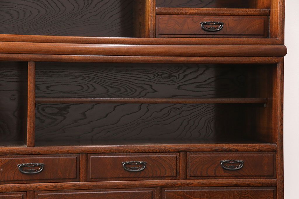 和箪笥> 茶箪笥・茶棚 > 中古 極上品 総漆塗り 前面ケヤキ無垢材 玉杢 最高級品の二段重ね大型茶箪笥(茶棚、飾り棚、収納棚、キャビネット)(定価約250万円)(R-051772)