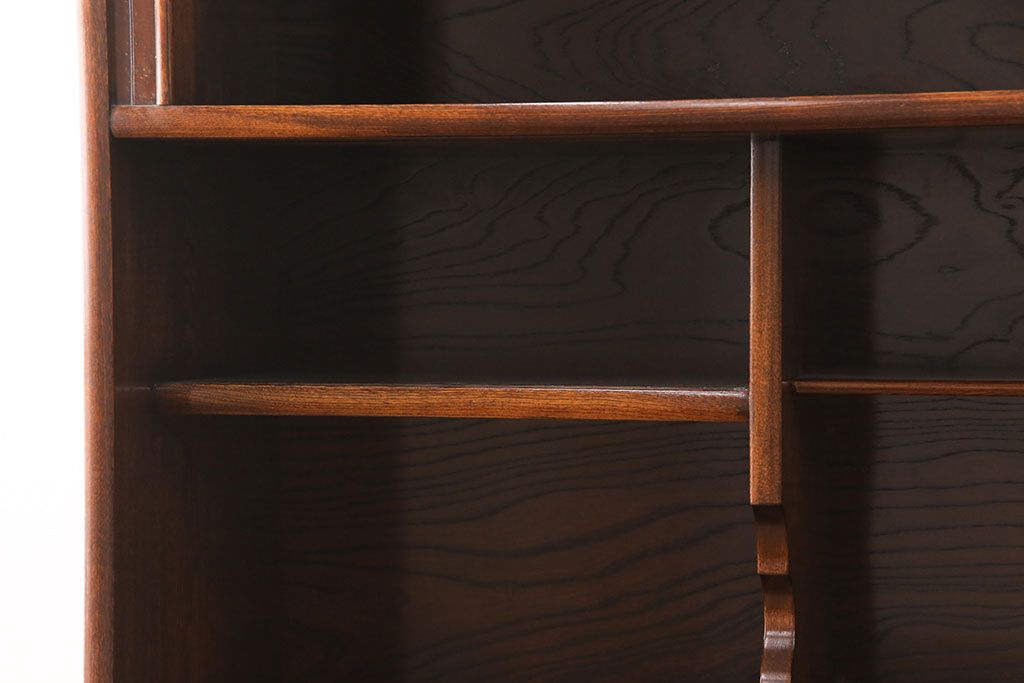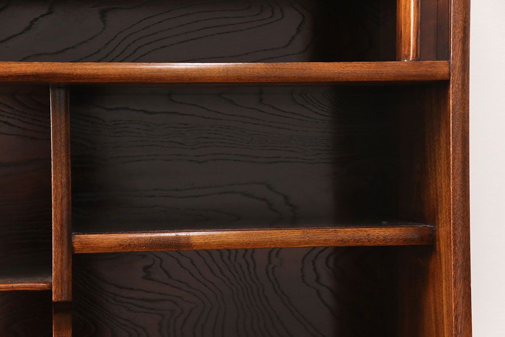 棚板は下段右側のみ取り外しできます。棚幅サイズのものが1枚の作りです。