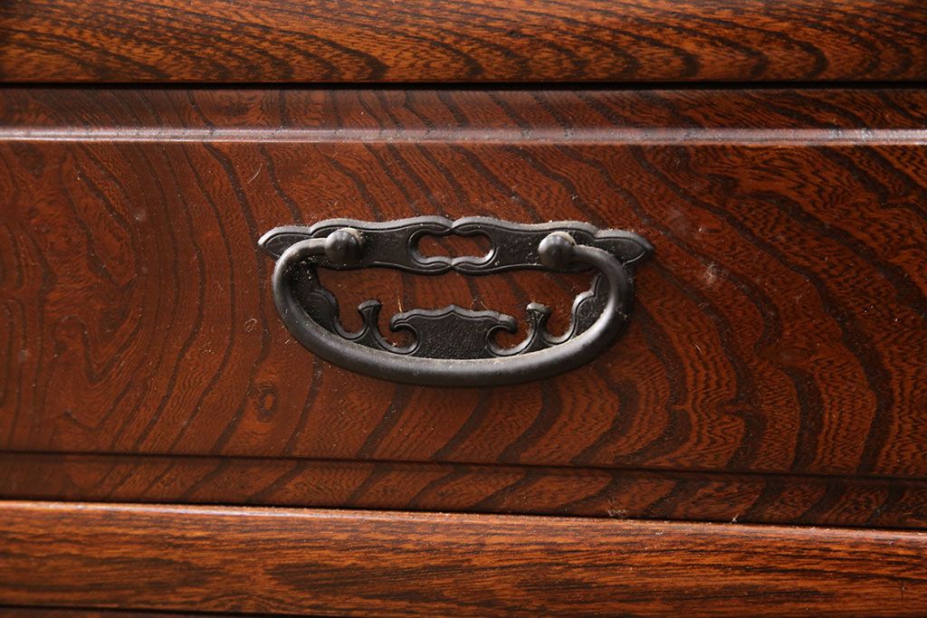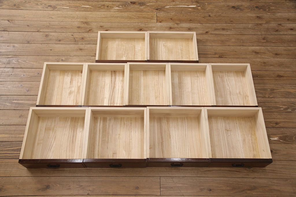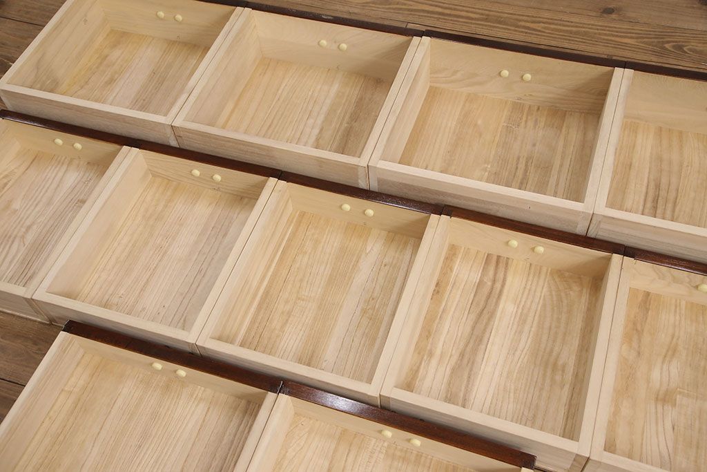 引き出しの前面には厚手のケヤキ材が貼られており、