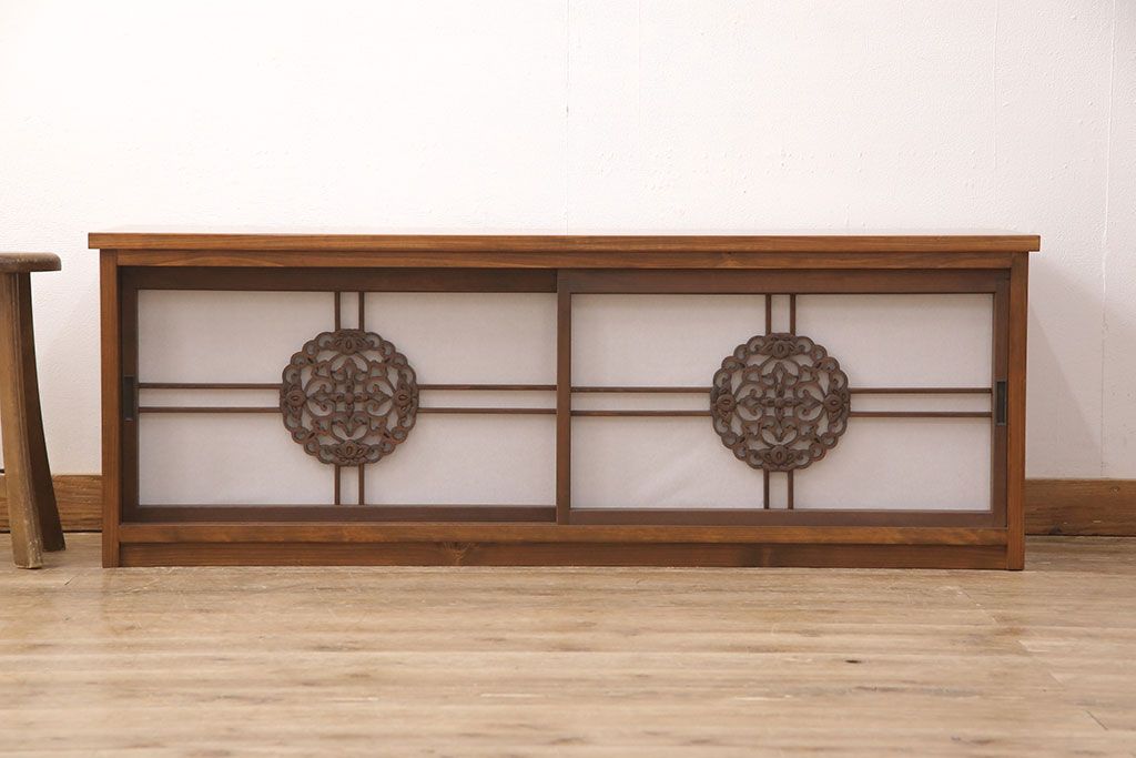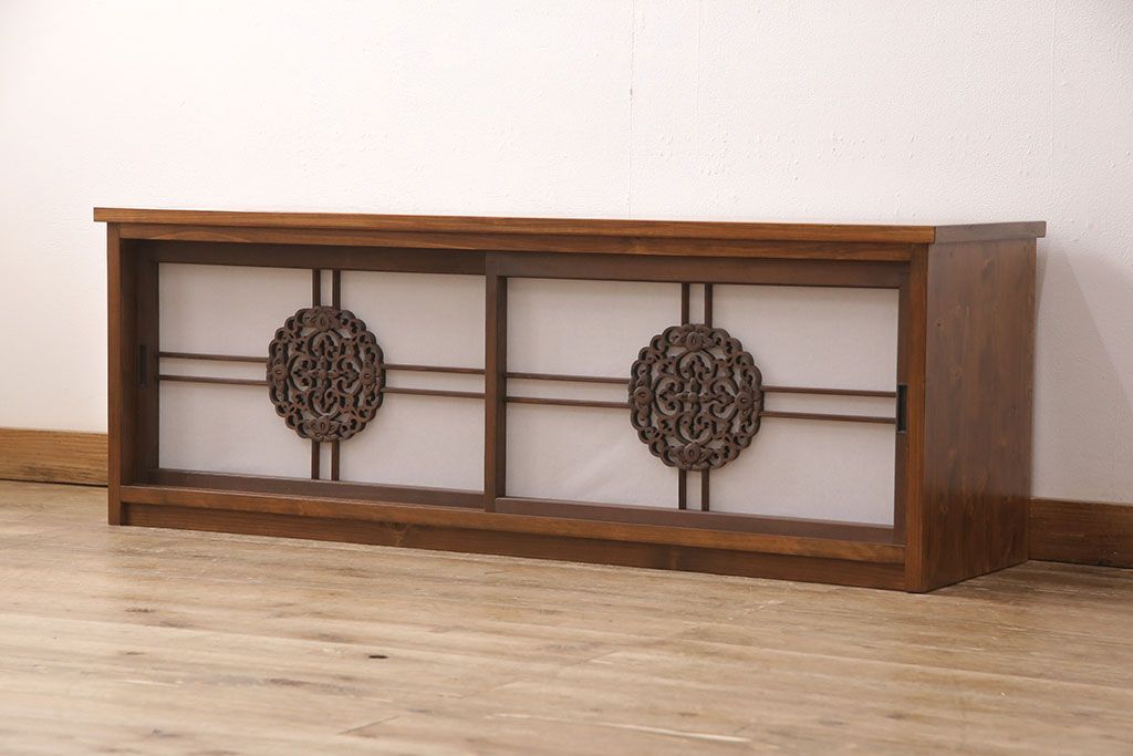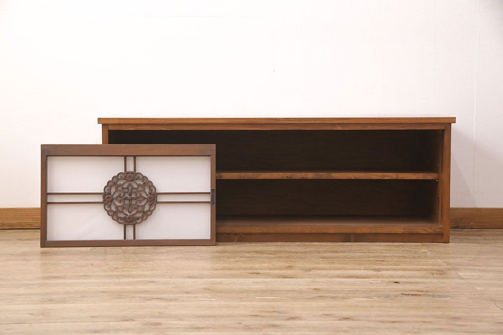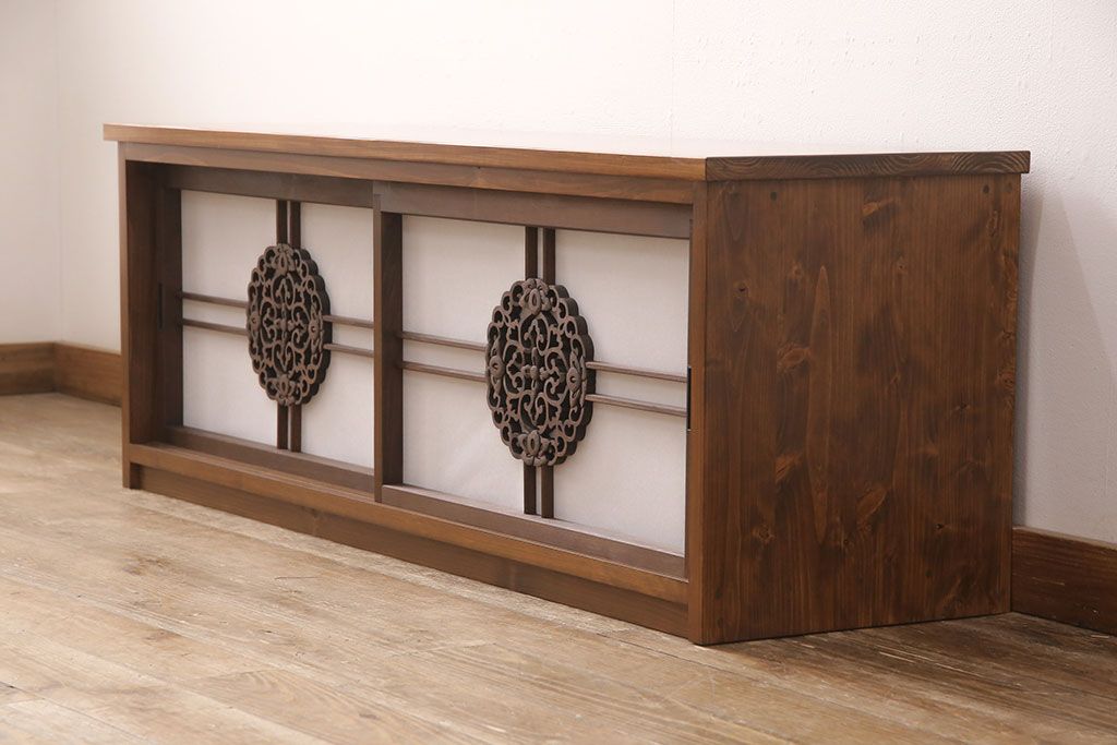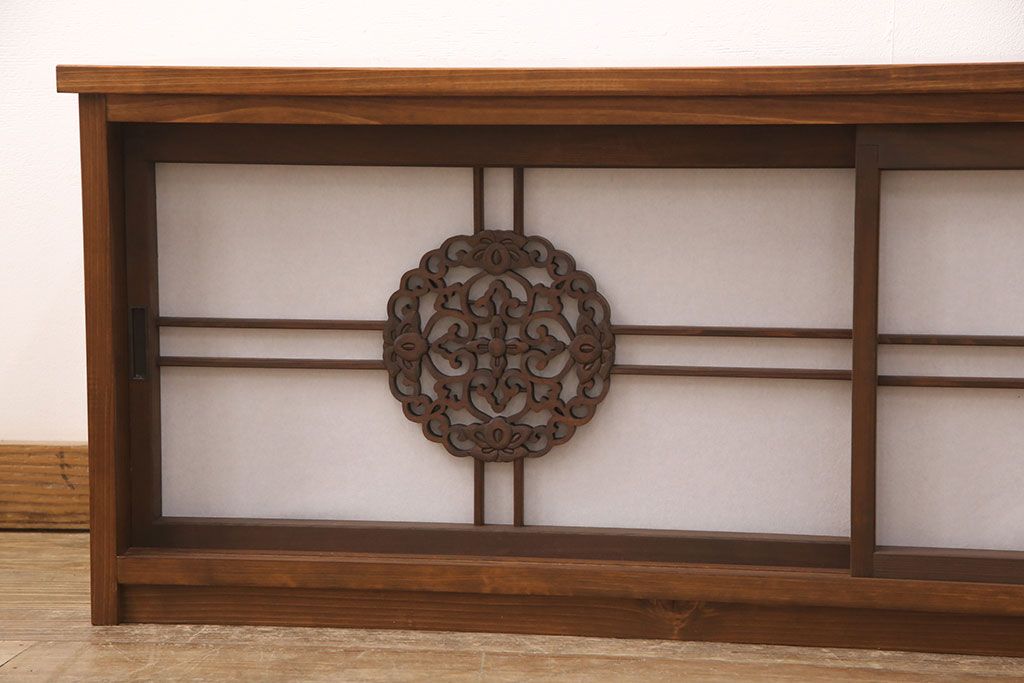 ラフジュ工房オリジナル 古建具リメイク 透かし彫りが上品なアクセントになる引き戸のテレビ台(ローボード、テレビボード、収納棚)(R-052022)です。