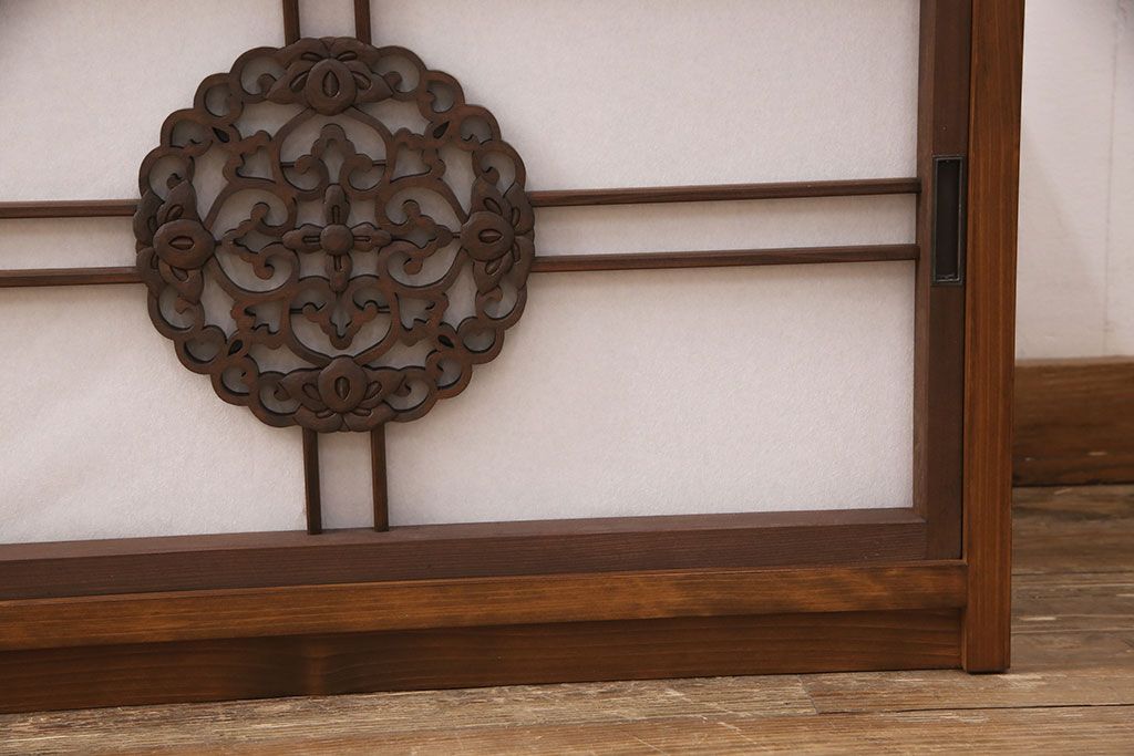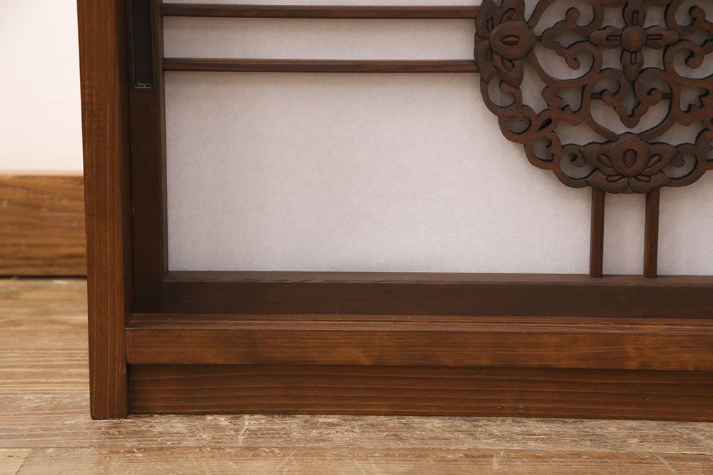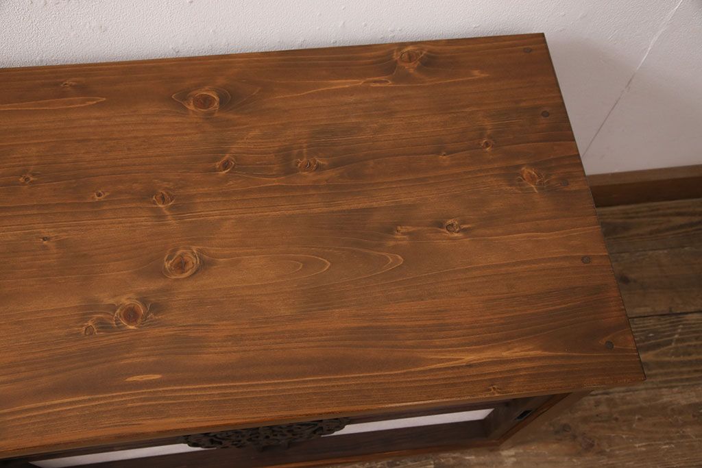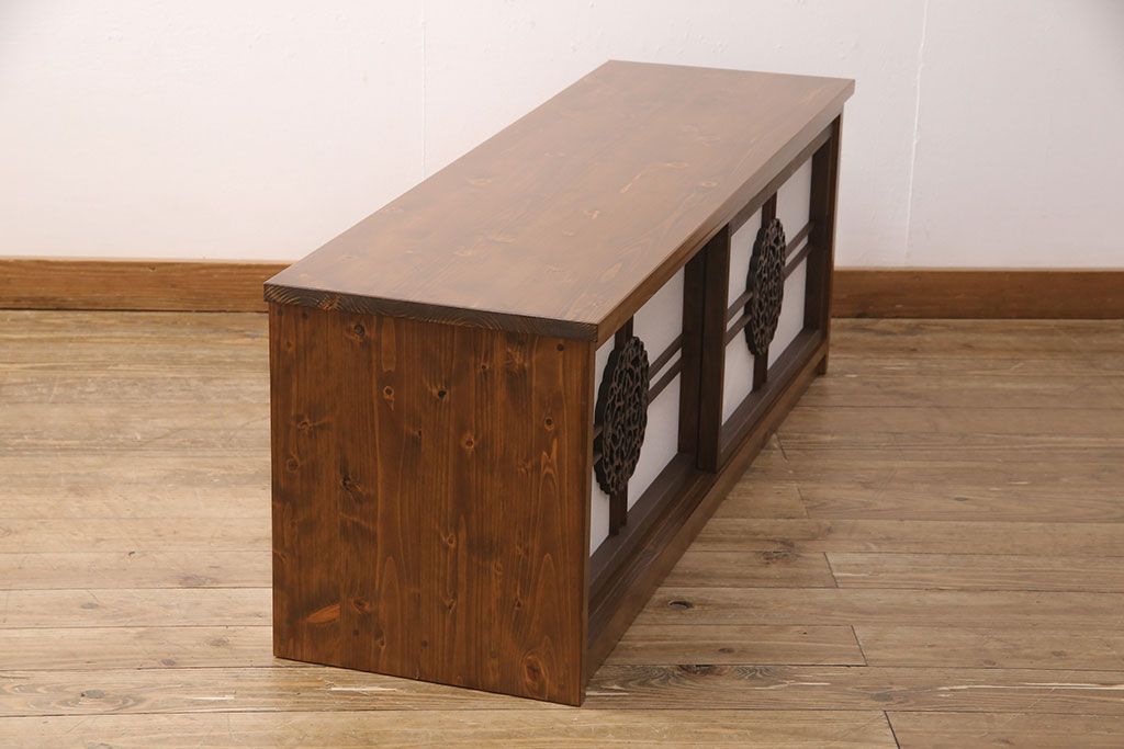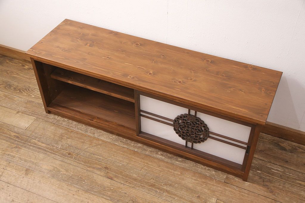 ラフジュ工房オリジナル 古建具リメイク 透かし彫りが上品なアクセントになる引き戸のテレビ台(ローボード、テレビボード、収納棚)(R-052022)です。