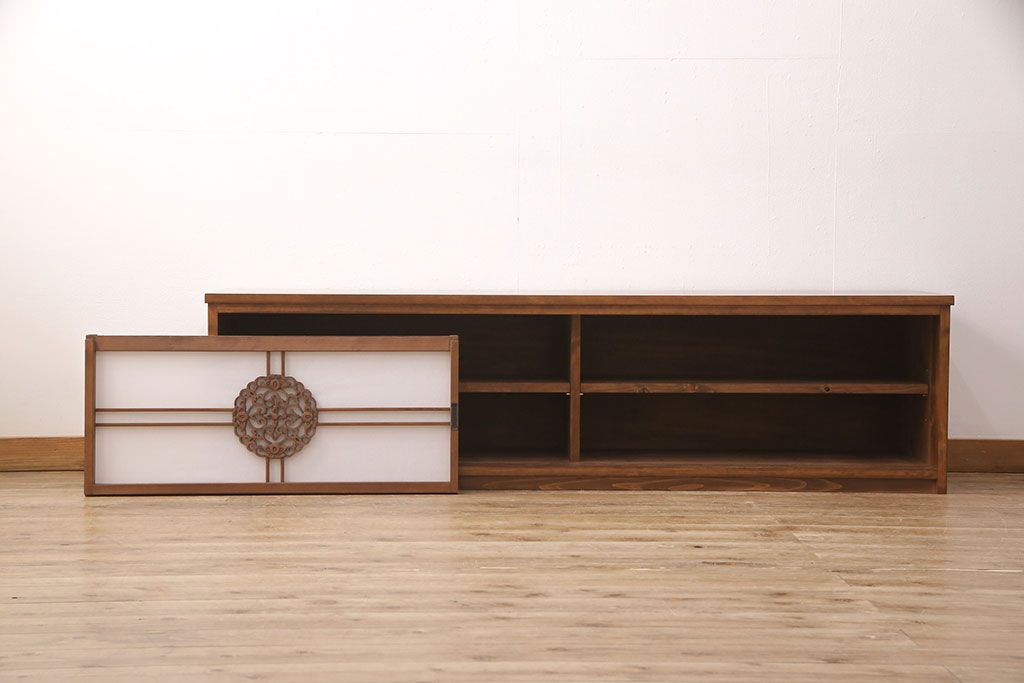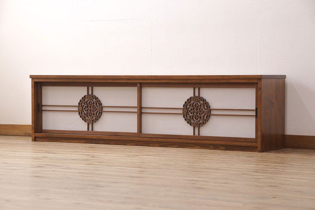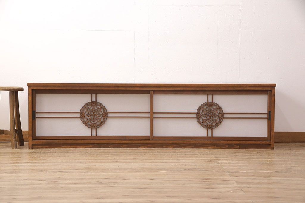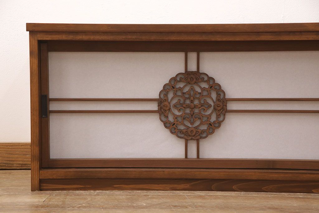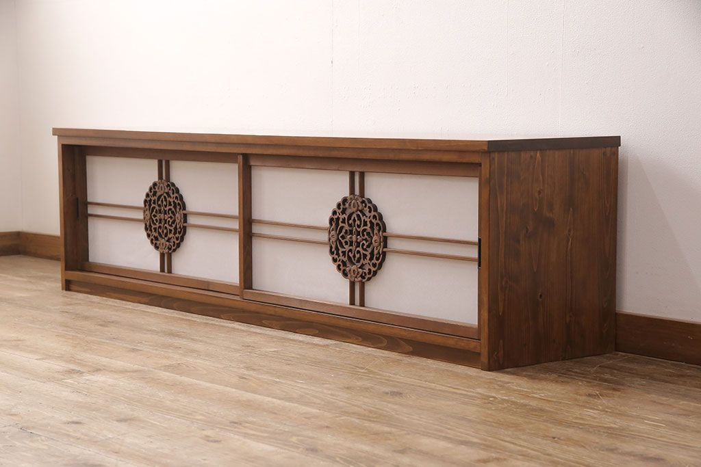 ラフジュ工房オリジナル 古建具リメイク 透かし彫り 上品な和の趣を演出する引き戸のテレビ台(ローボード、テレビボード、収納棚)(R-052024)です。