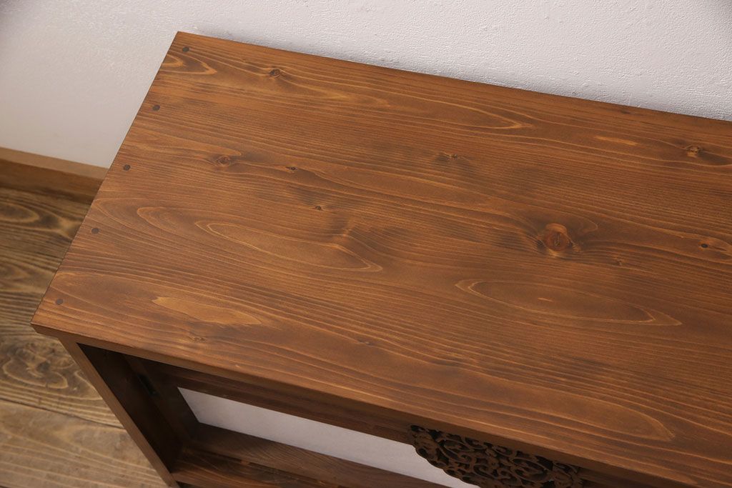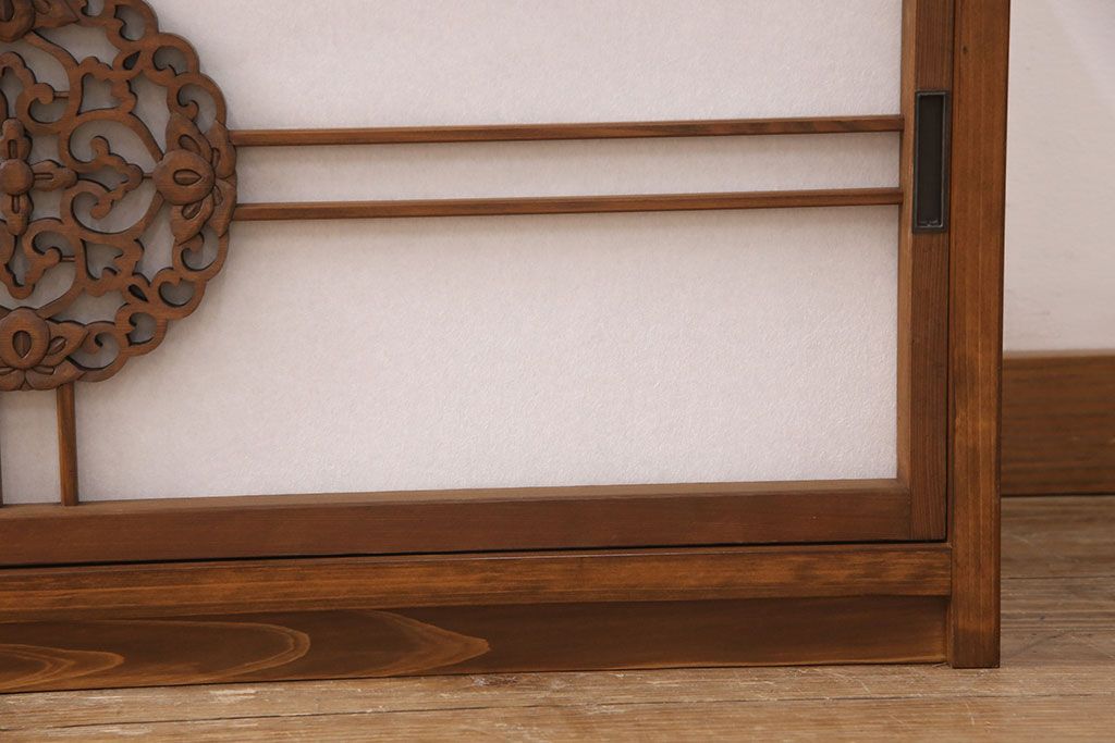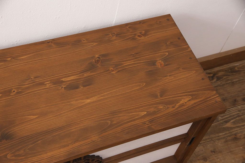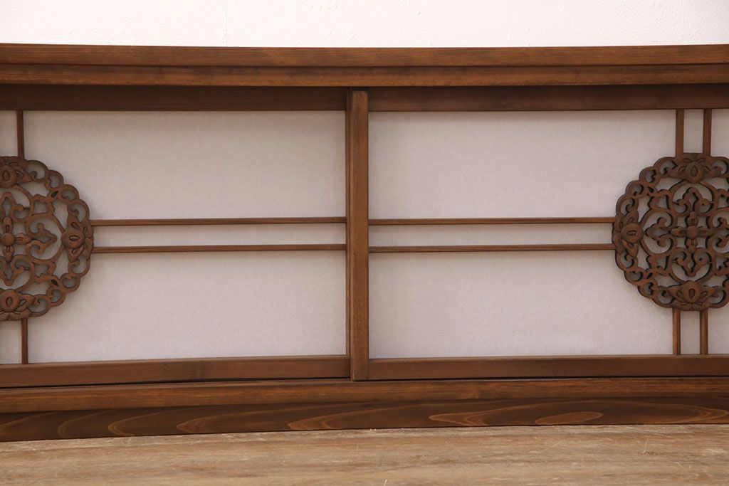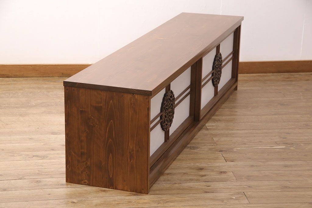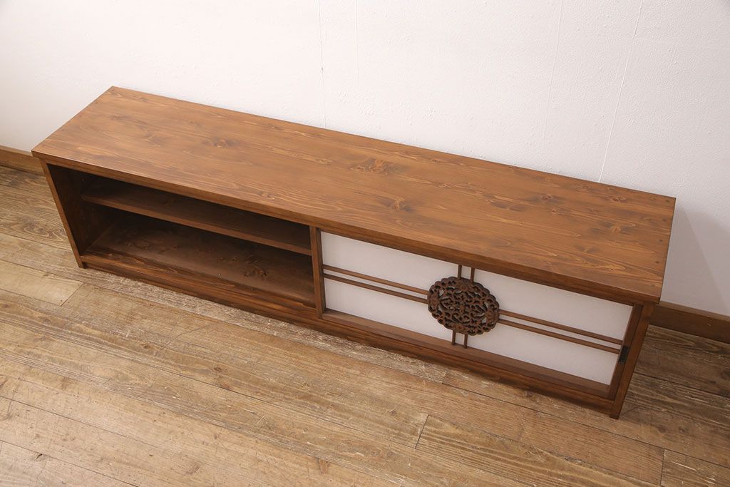 ラフジュ工房オリジナル 古建具リメイク 透かし彫り 上品な和の趣を演出する引き戸のテレビ台(ローボード、テレビボード、収納棚)(R-052024)です。