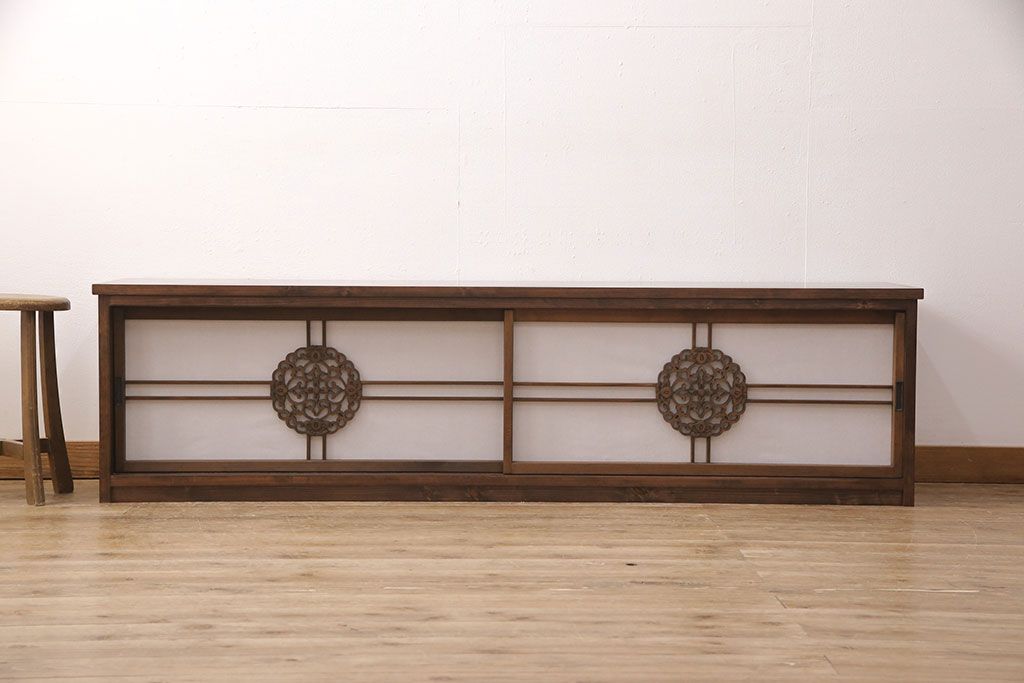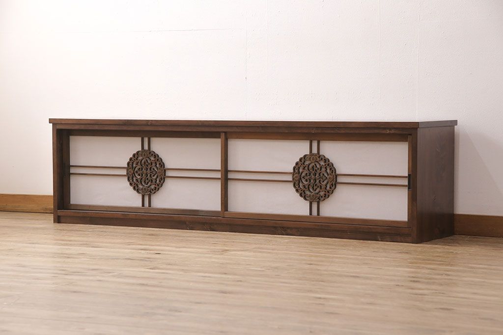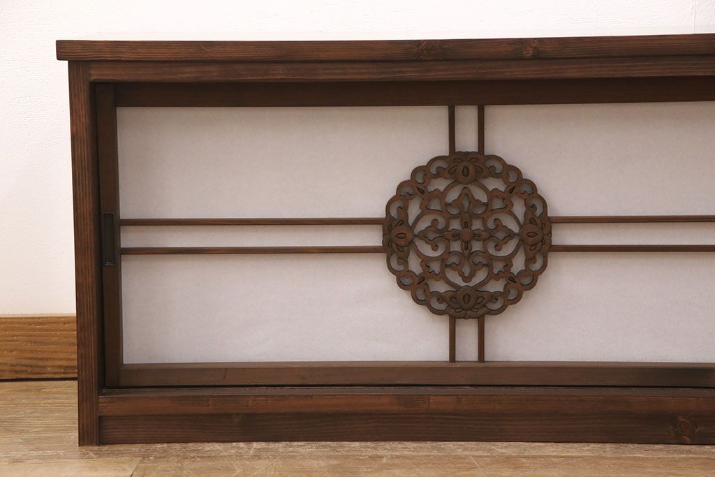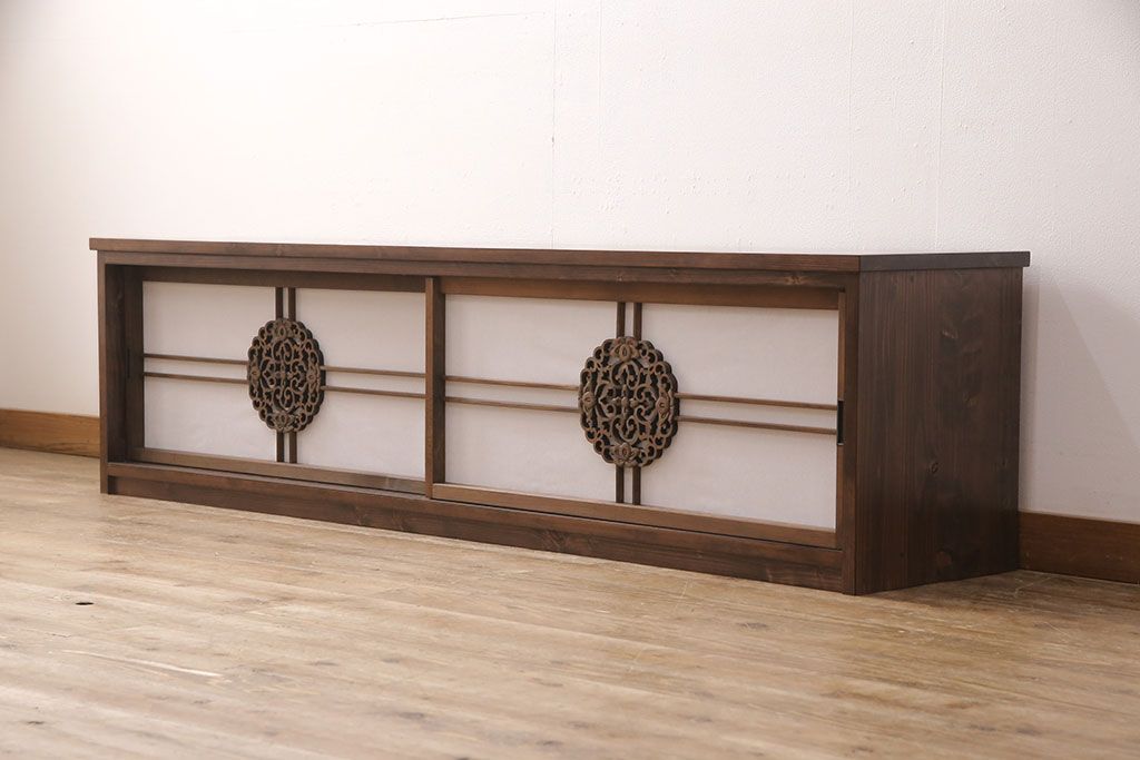 ラフジュ工房オリジナル 古建具リメイク 透かし彫り 上品な和の雰囲気を高める引き戸のテレビ台(ローボード、テレビボード、収納棚)(R-052025)