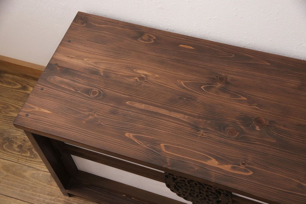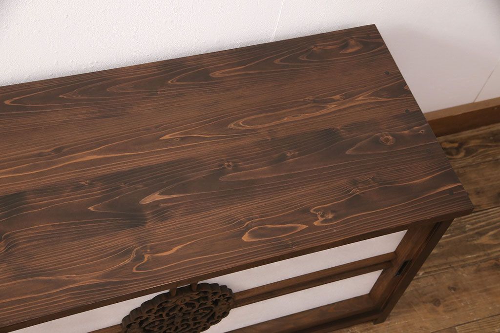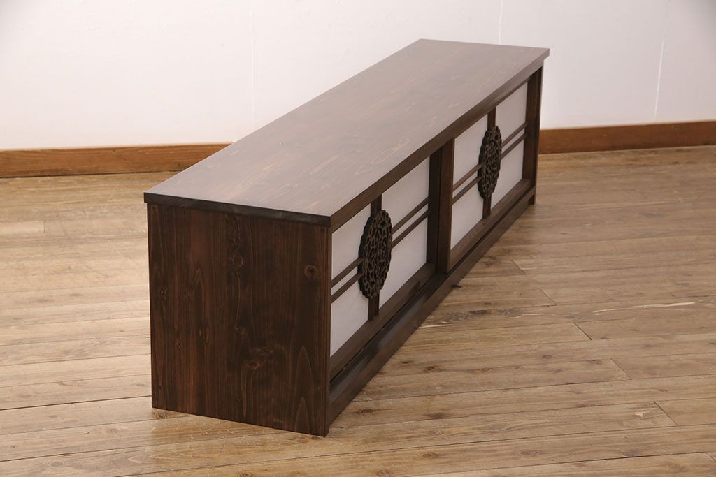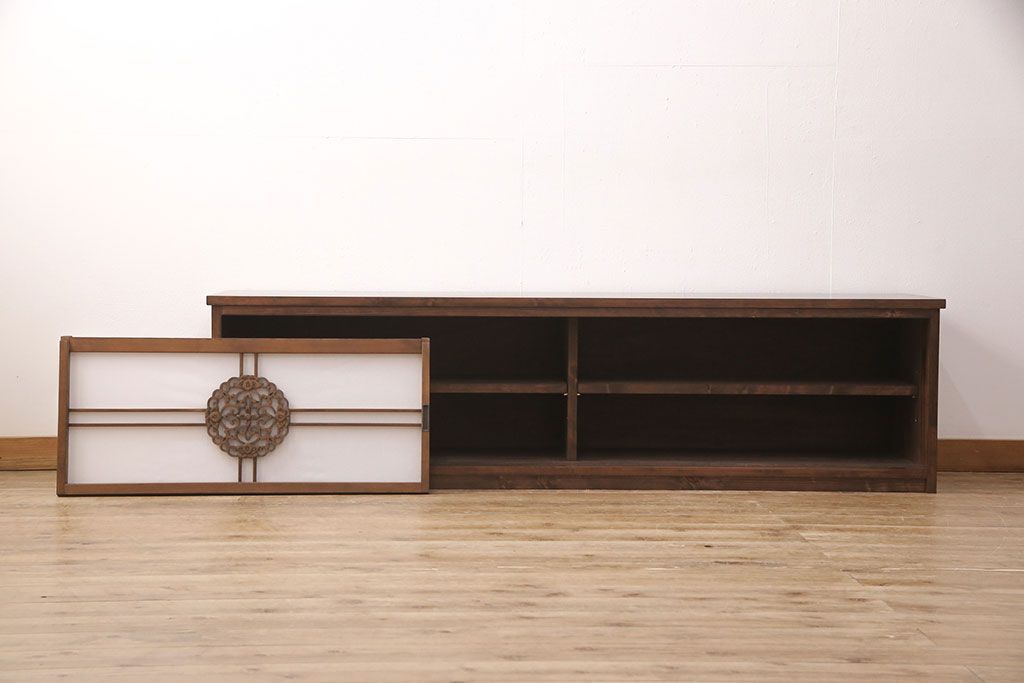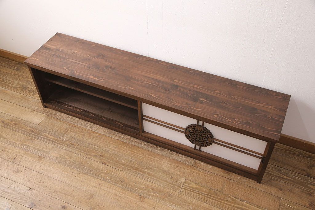 ラフジュ工房オリジナル 古建具リメイク 透かし彫り 上品な和の雰囲気を高める引き戸のテレビ台(ローボード、テレビボード、収納棚)(R-052025)