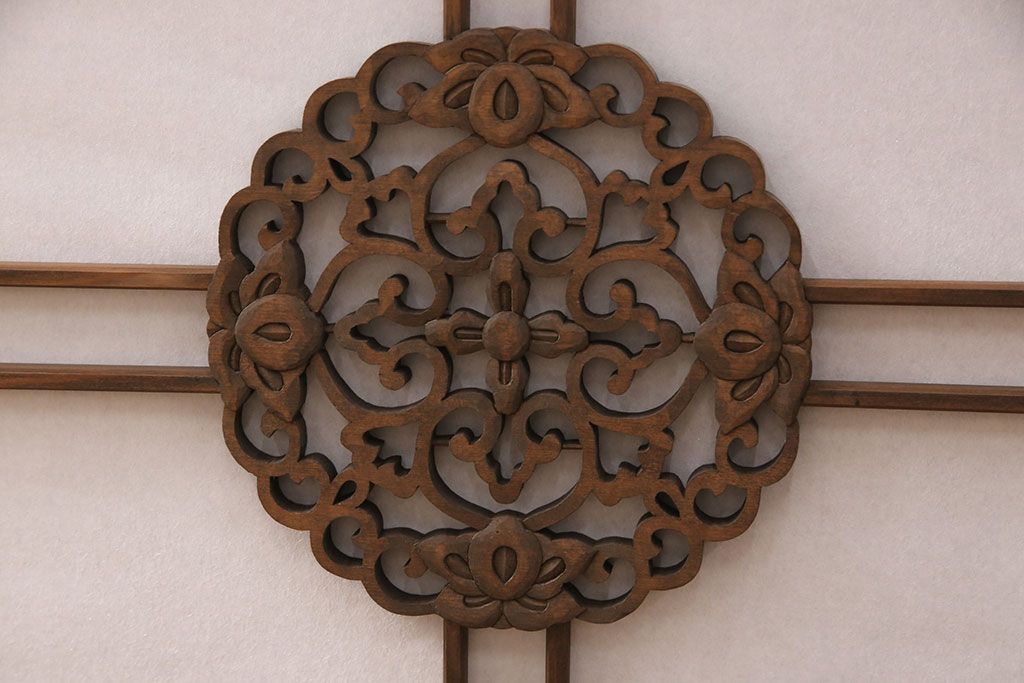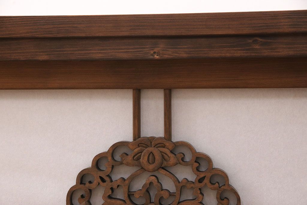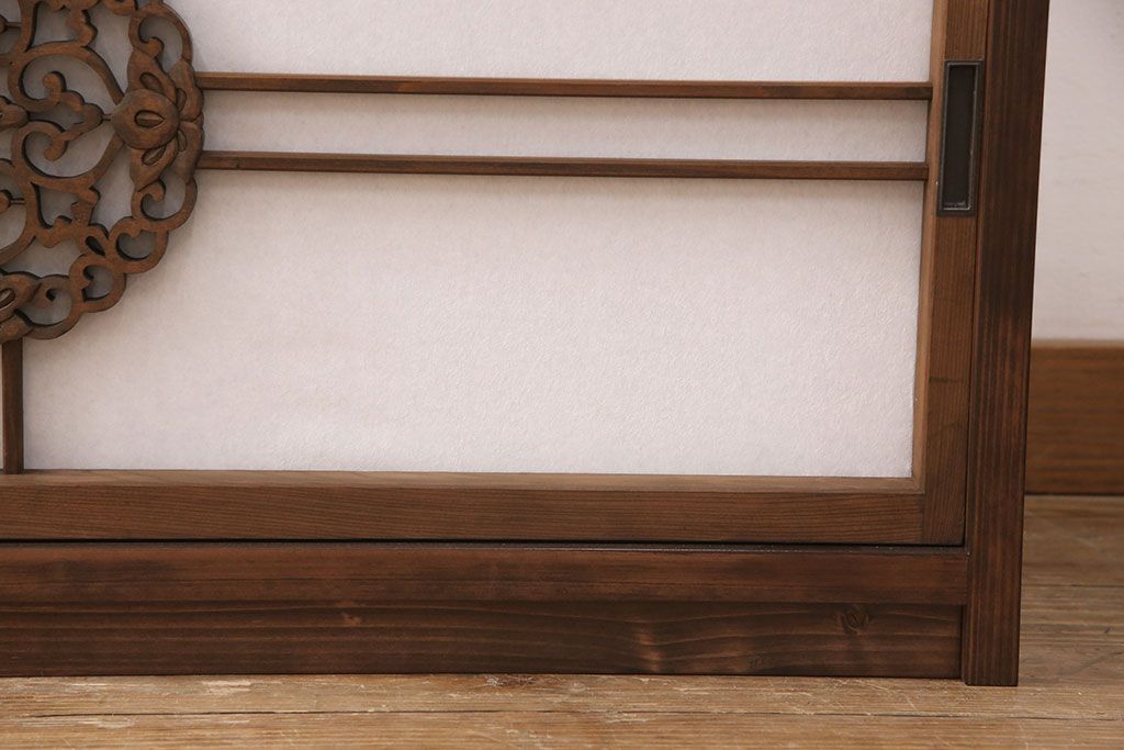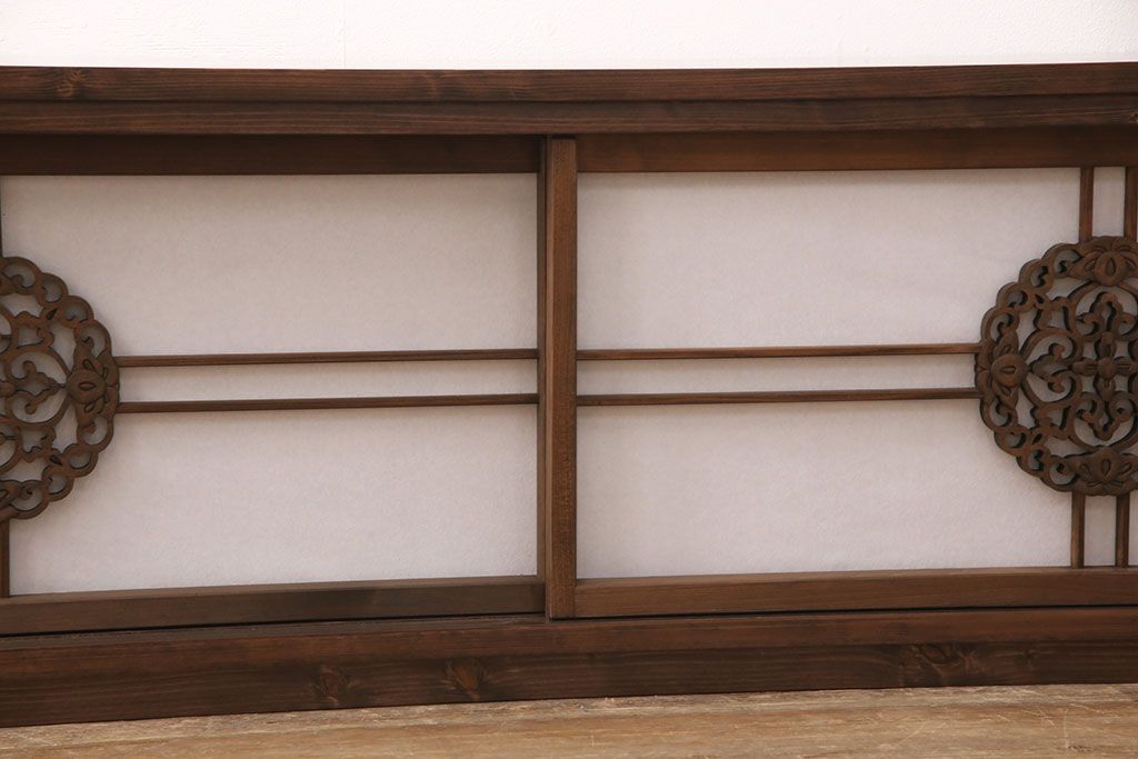 ラフジュ工房> キャビネット・戸棚> テレビ台・ローボード > ラフジュ工房オリジナル 古建具リメイク 透かし彫り 上品な和の雰囲気を高める引き戸のテレビ台(ローボード、テレビボード、収納棚)(R-052025)