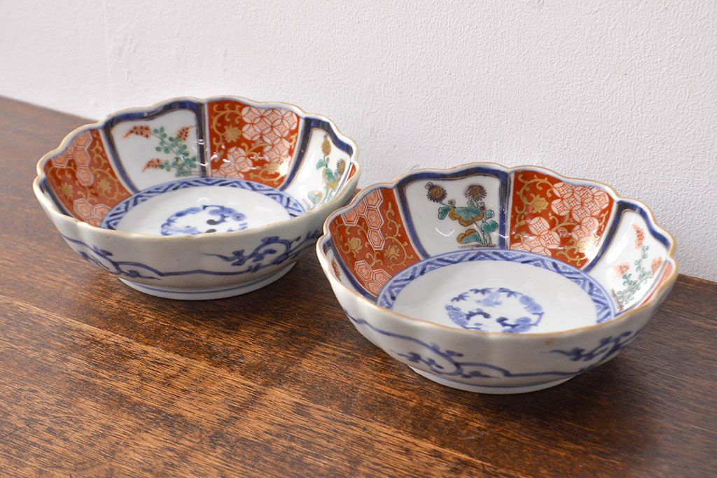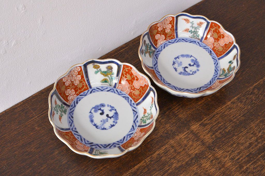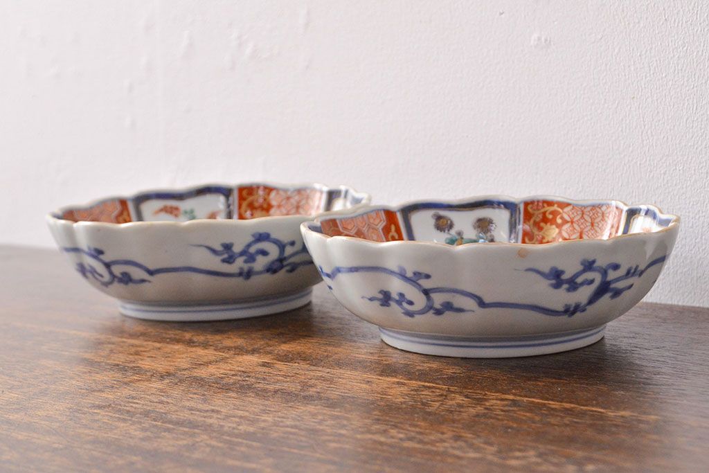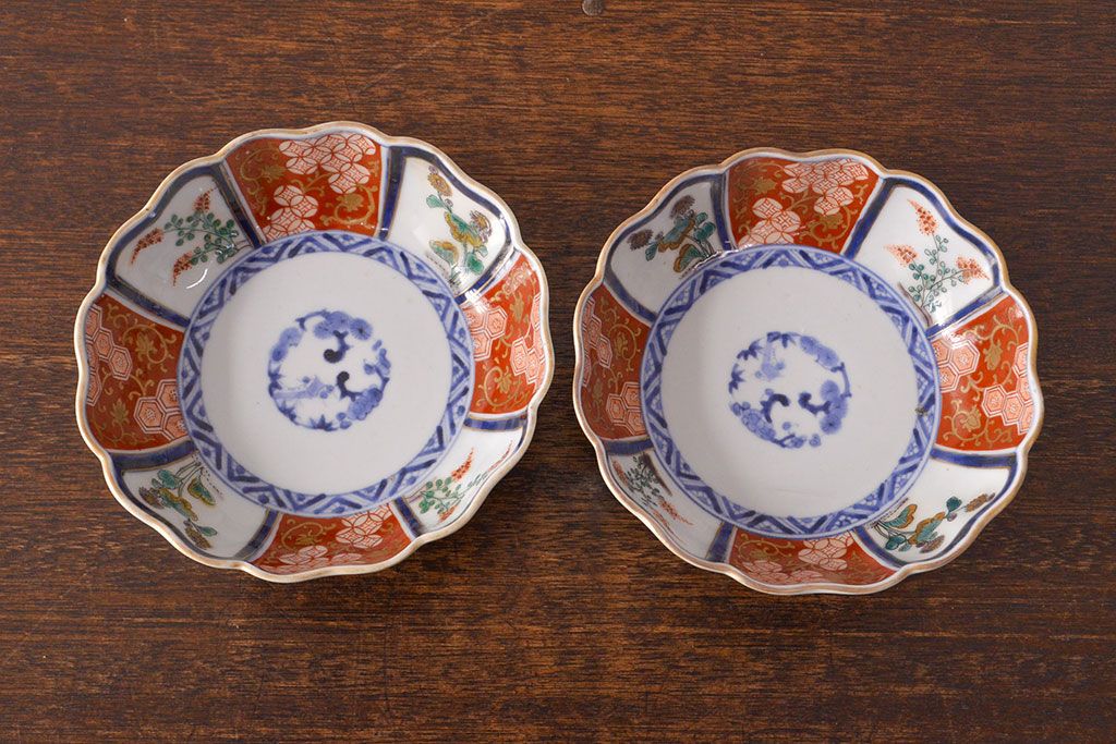 ラフジュ工房> 和食器・茶道具> 皿 > 江戸期 古伊万里 成化年製 色絵窓絵染付なます皿2枚セット(和食器、深皿)(R-051906)