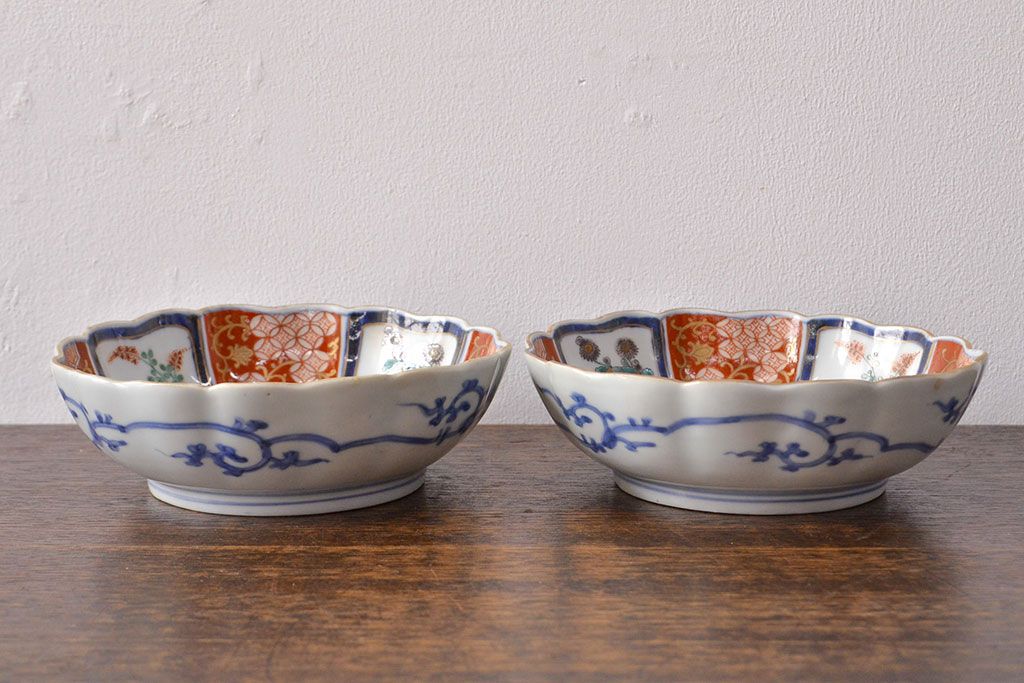 ラフジュ工房> 骨董・美術品> 骨董-陶磁器 > 江戸期 古伊万里 成化年製 色絵窓絵染付なます皿2枚セット(和食器、深皿)(R-051906)