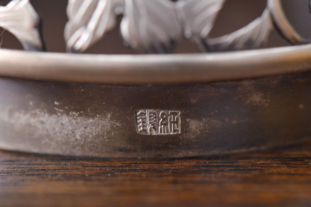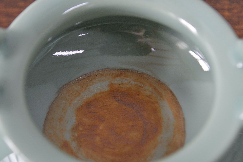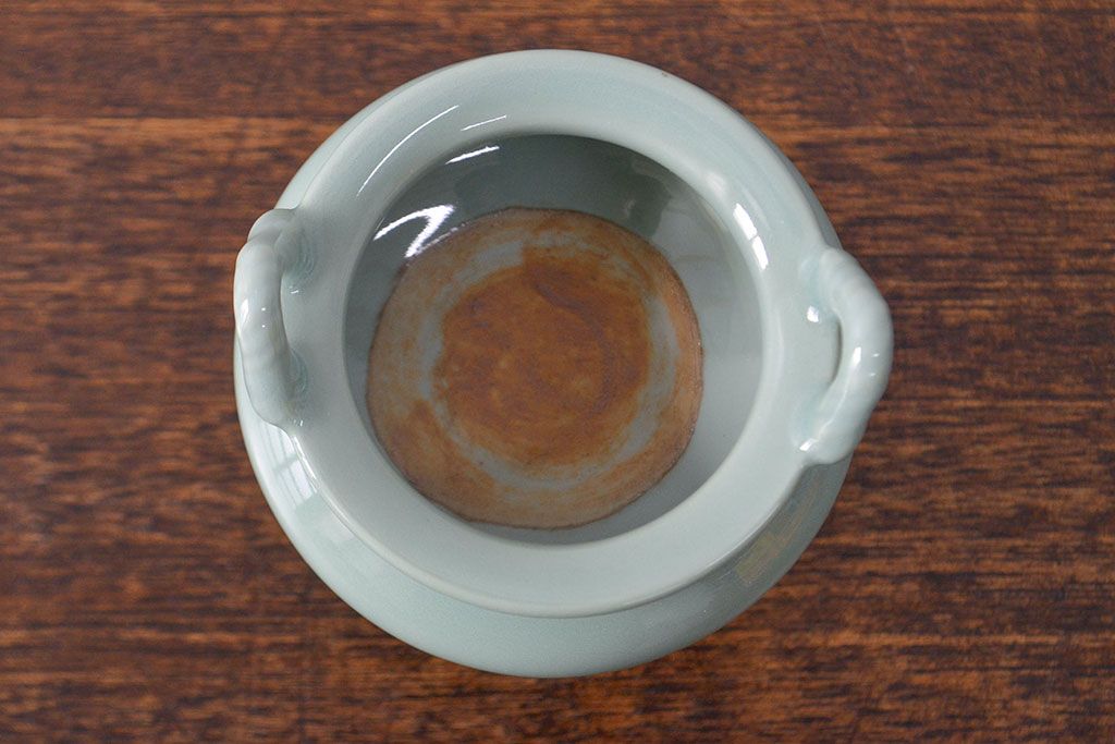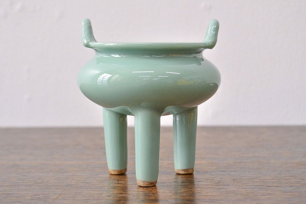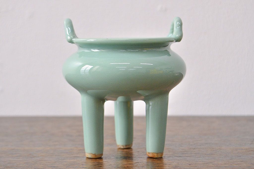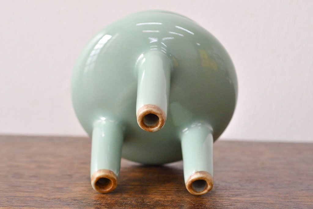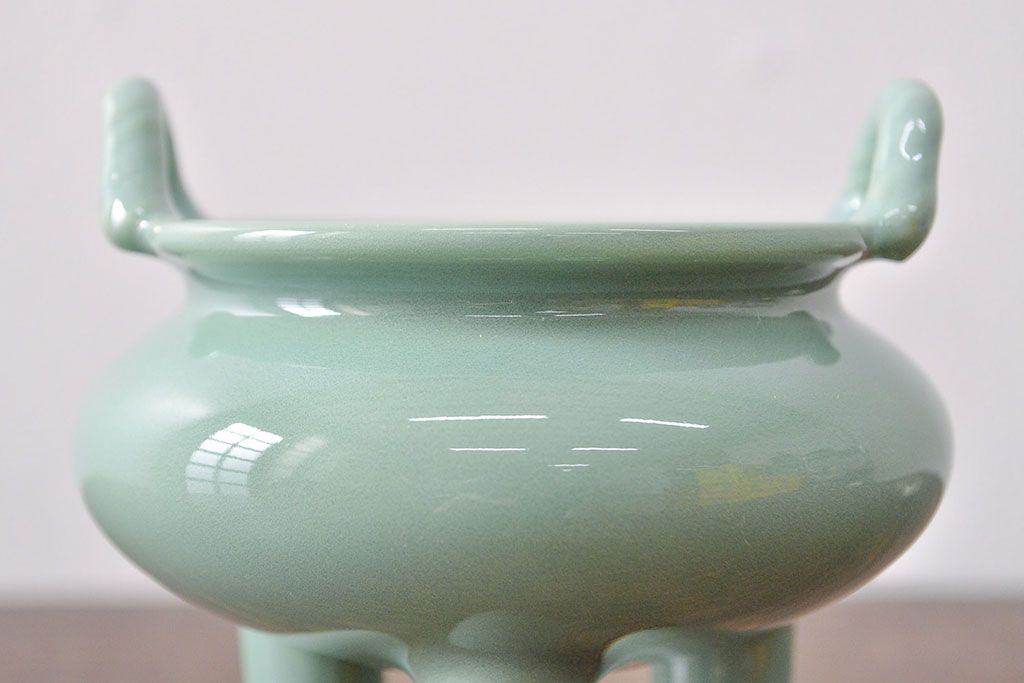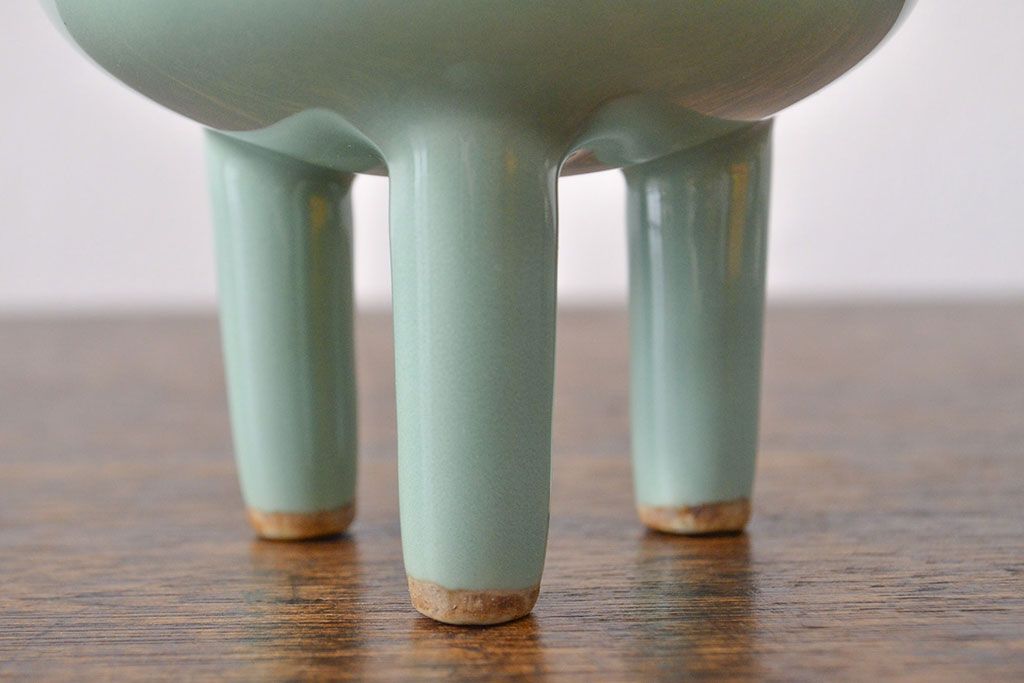 古い 青磁三足香炉 純銀火屋(中国?)(R-051912)