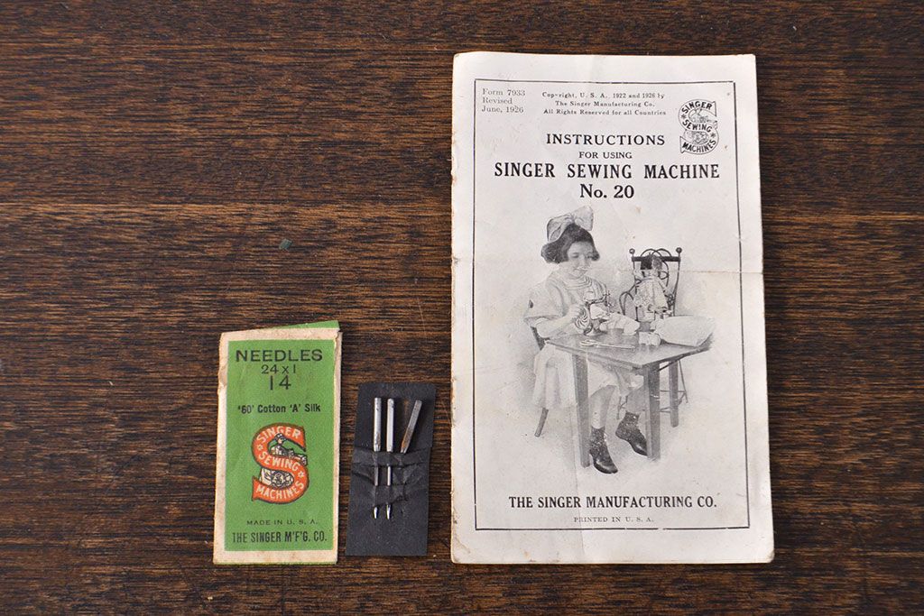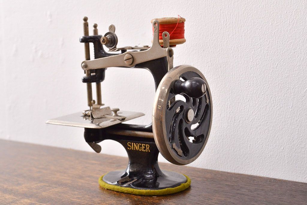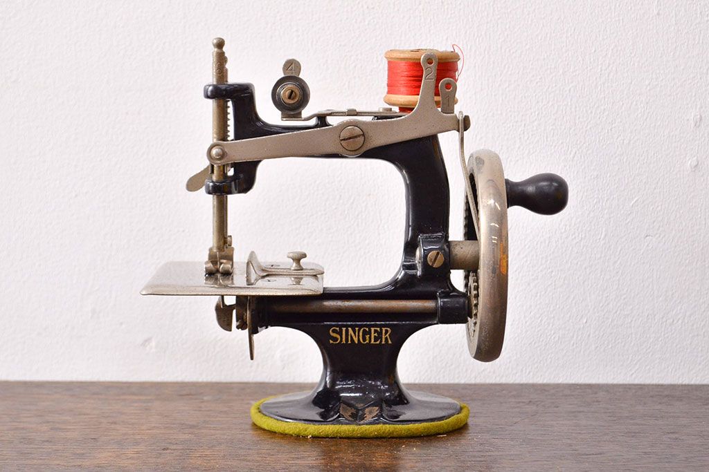 ラフジュ工房> 雑貨> ミシン > アンティーク 古い手回し SINGER シンガーミシン(説明書、箱付、糸)(R-051931)