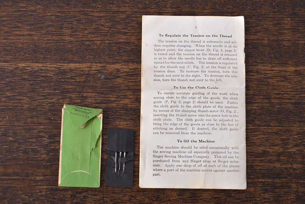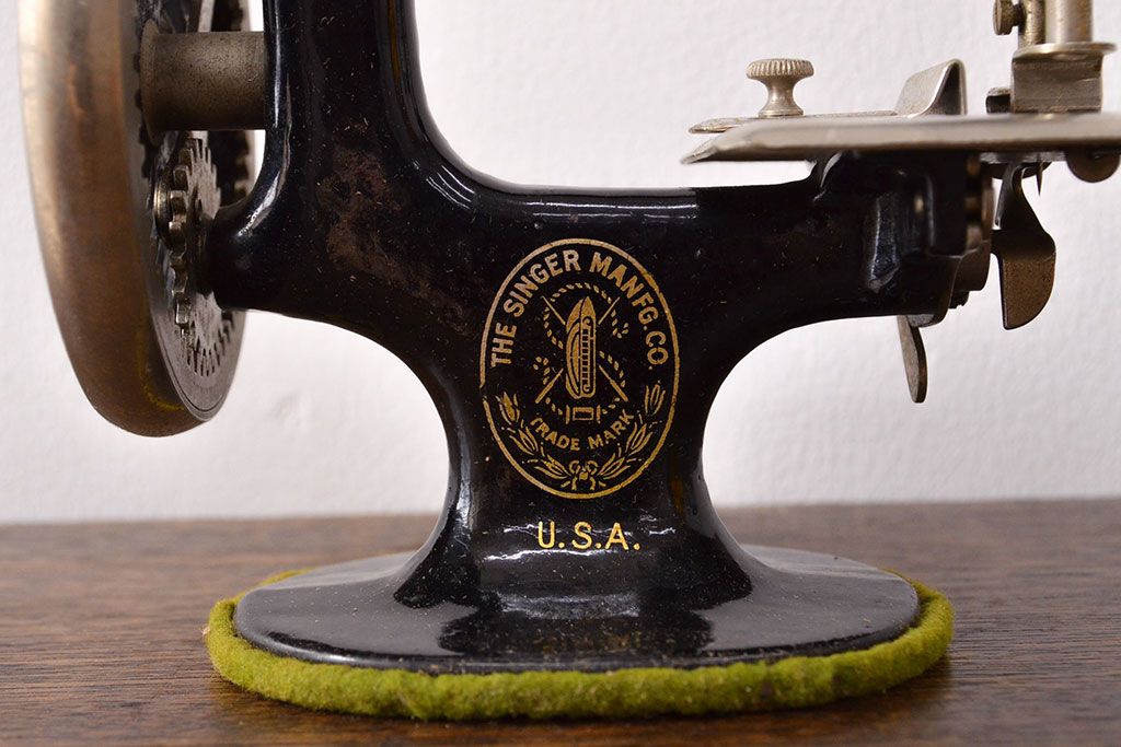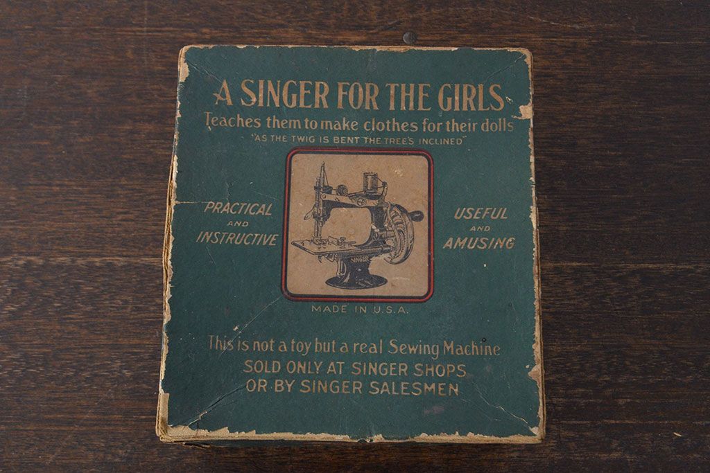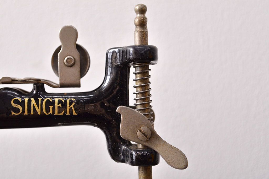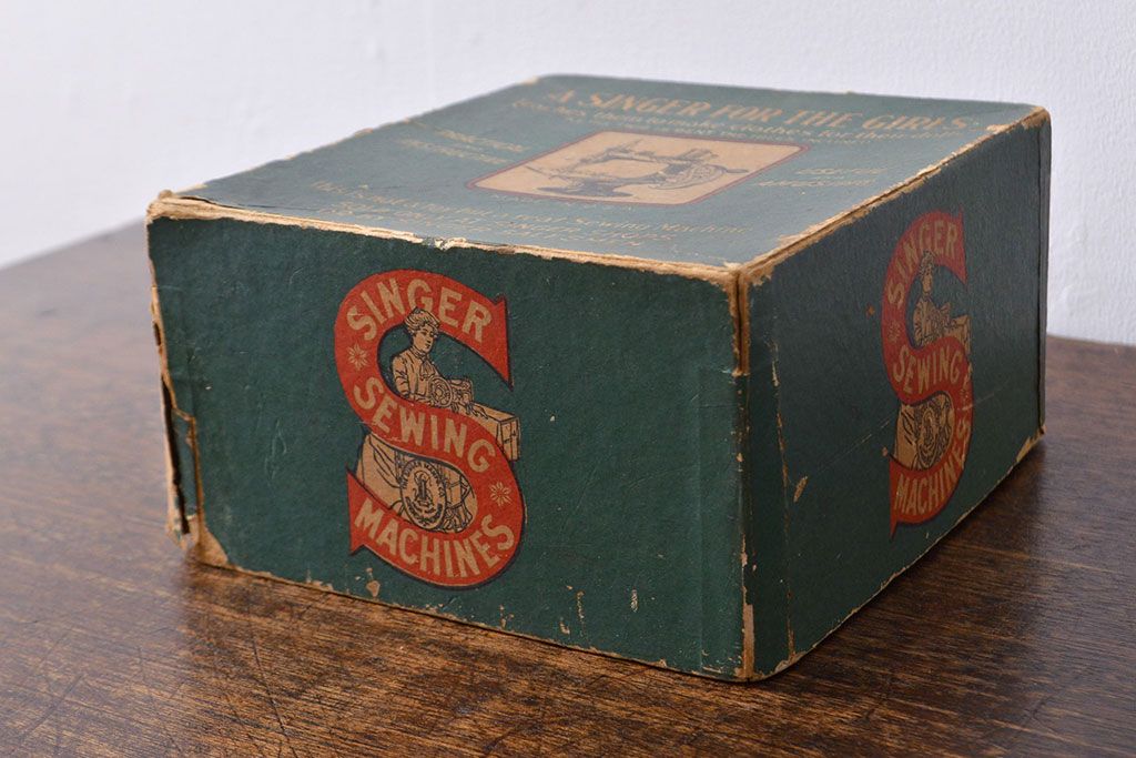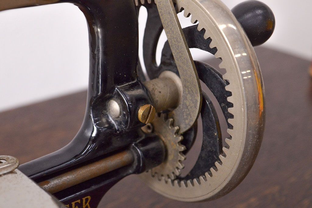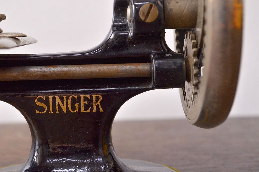 アンティーク 古い手回し SINGER シンガーミシン(説明書、箱付、糸)(R-051931)