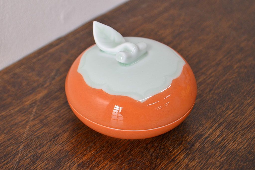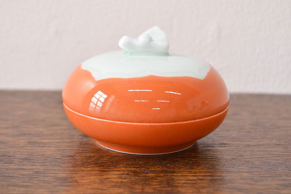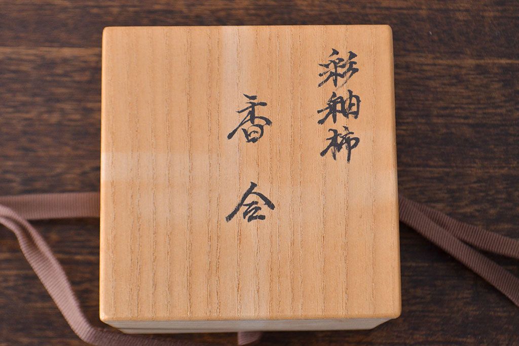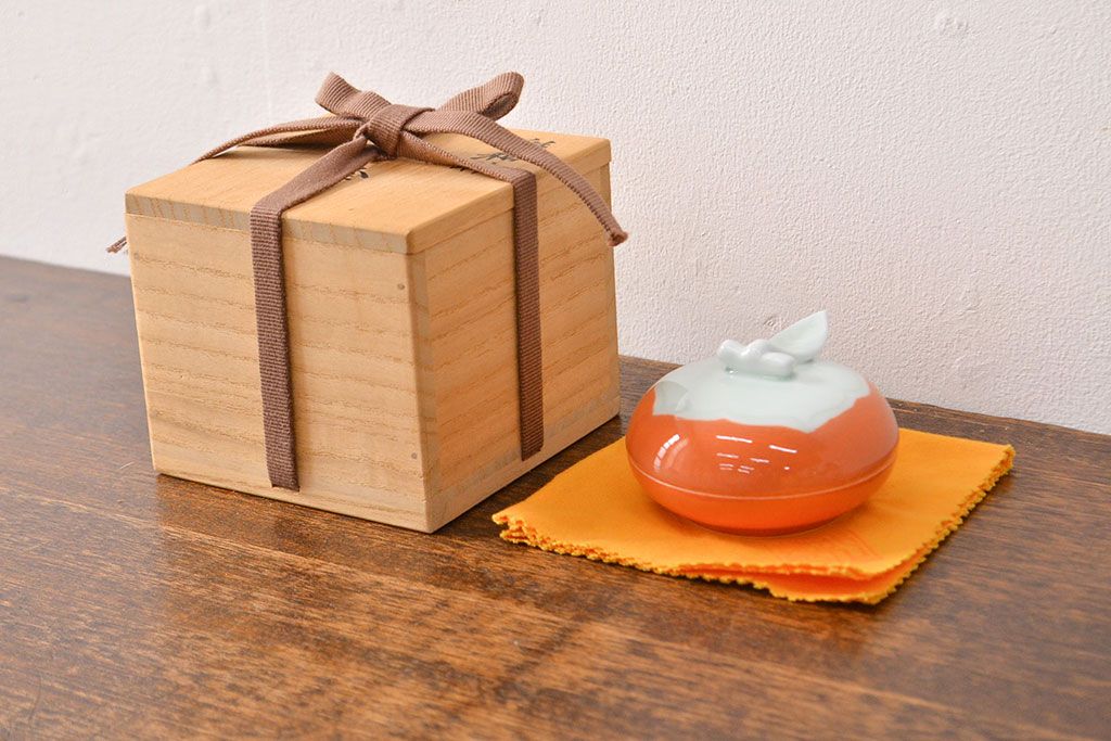 人間国宝 井上萬二 彩釉柿香合 共箱 茶道具(R-051933)