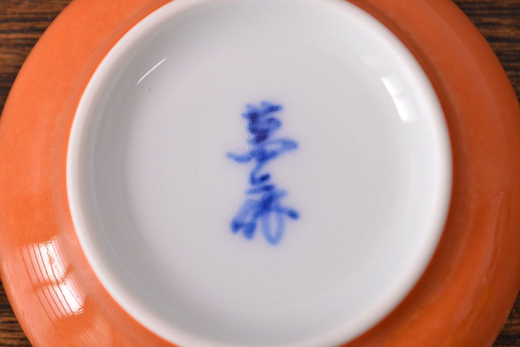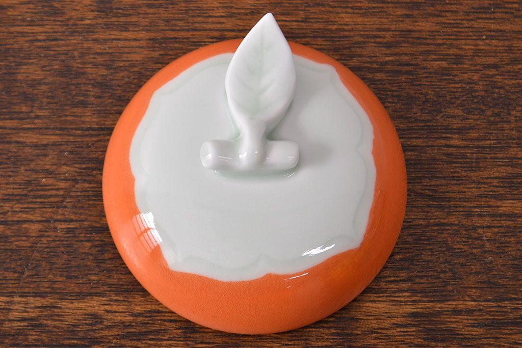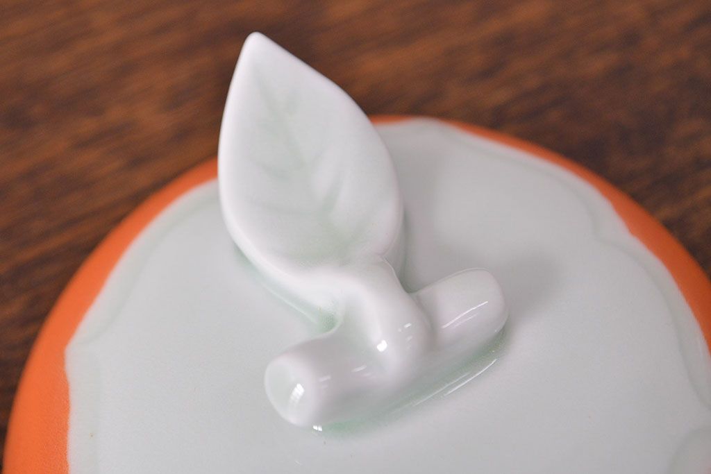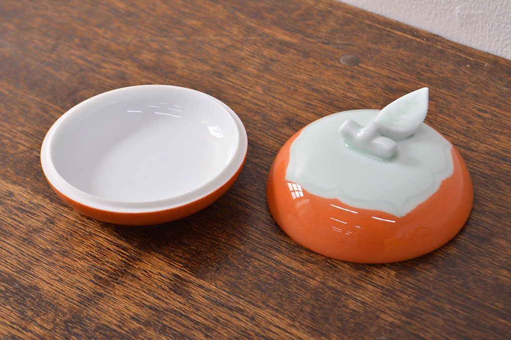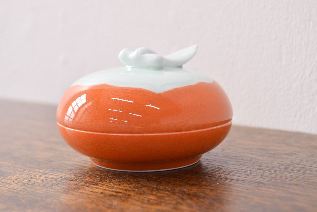 人間国宝 井上萬二 彩釉柿香合 共箱 茶道具(R-051933)