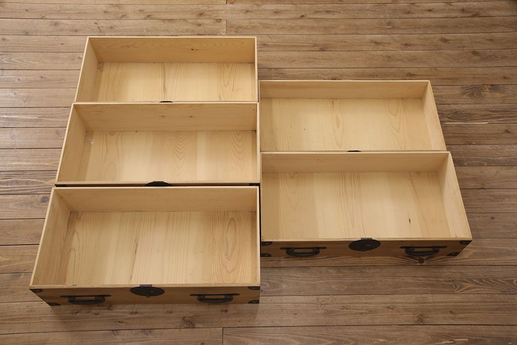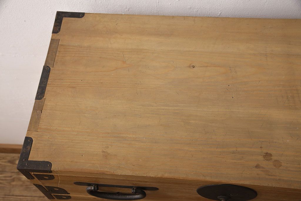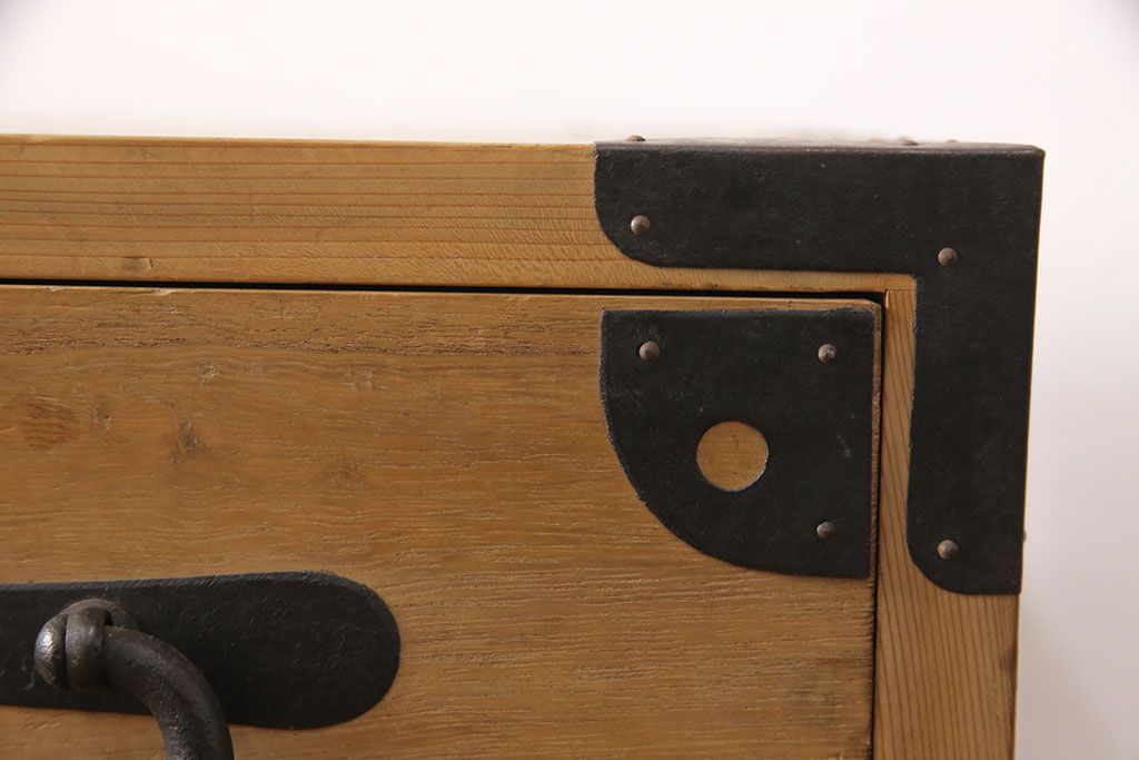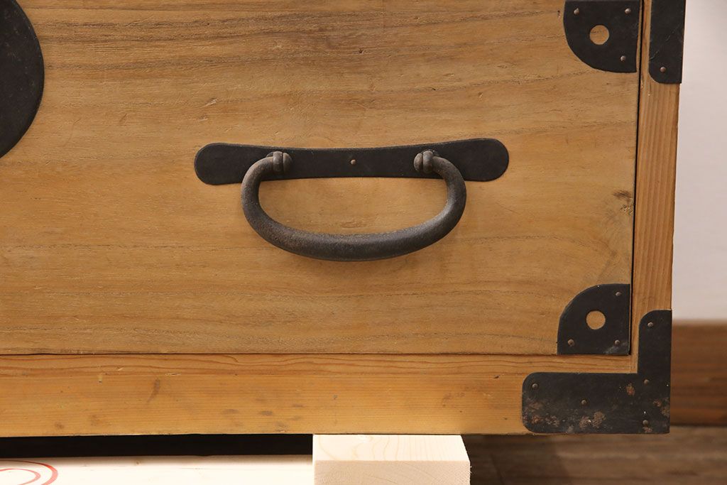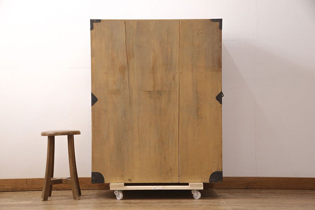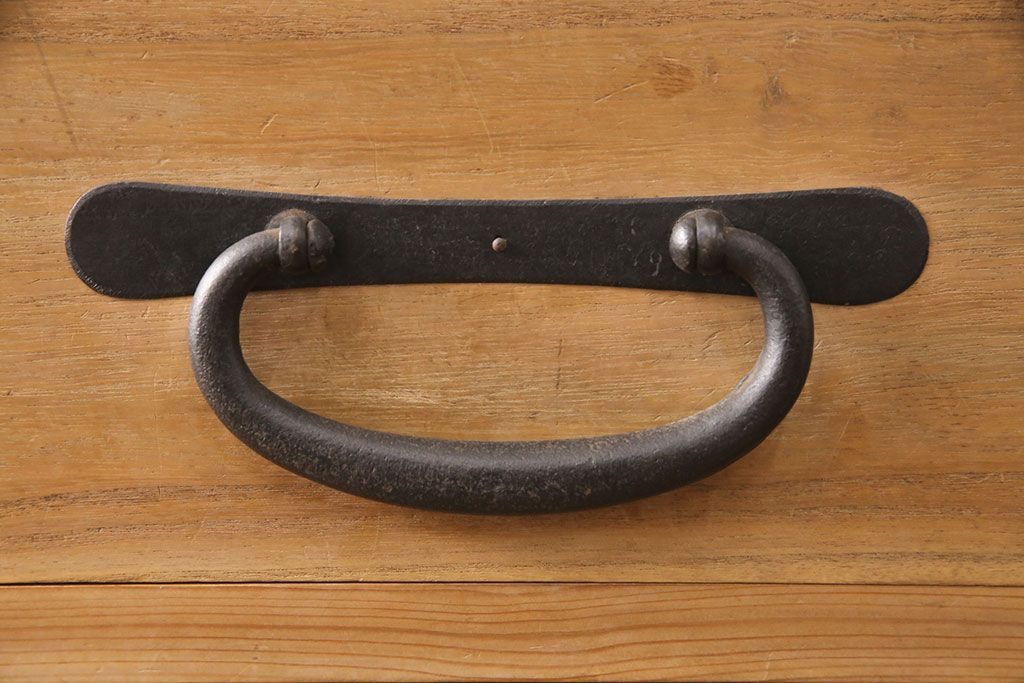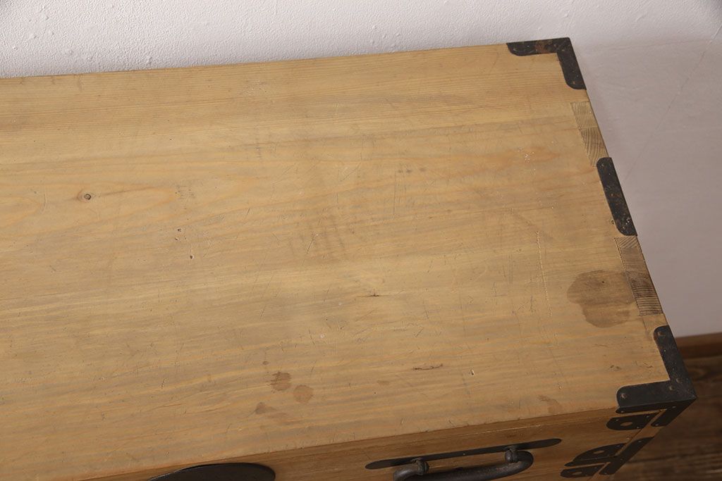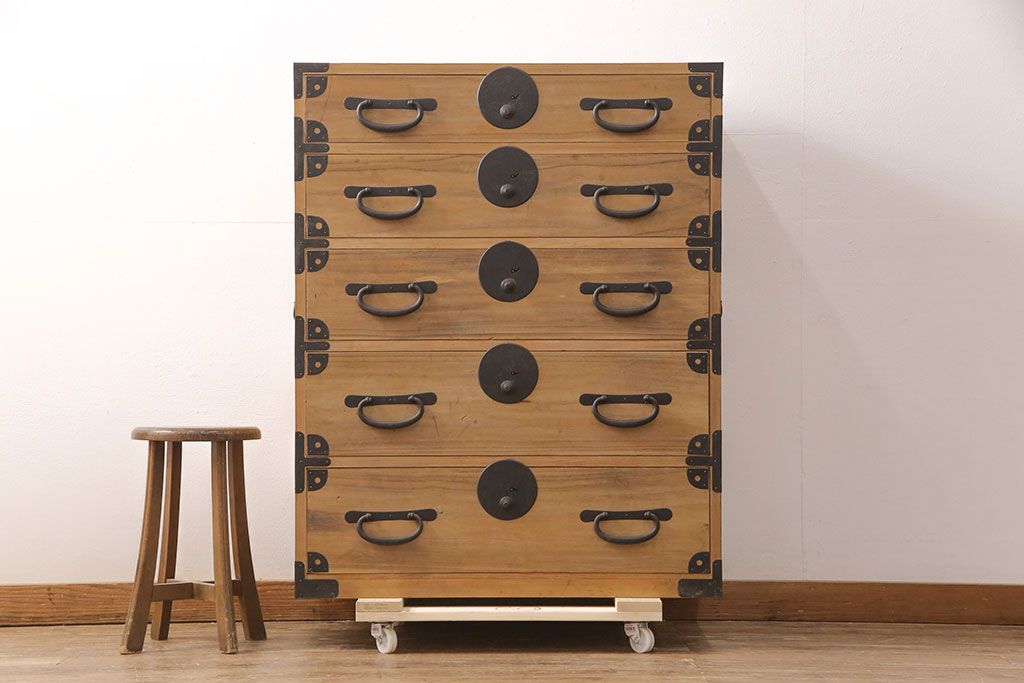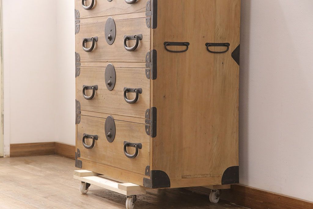 和箪笥 > 和製アンティーク 前面桐材 丸みのあるデザインの金具が可愛らしい松本衣装箪笥(時代箪笥、和タンス、引き出し、チェスト)(R-051928)