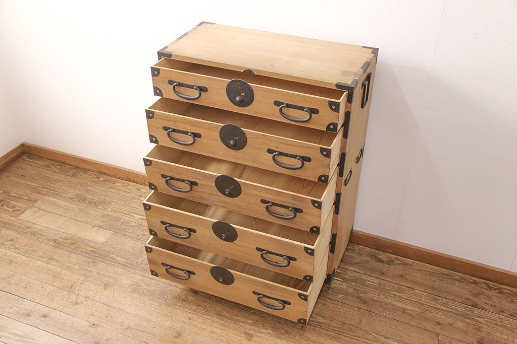 和製アンティーク 前面桐材 丸みのあるデザインの金具が可愛らしい松本衣装箪笥(時代箪笥、和タンス、引き出し、チェスト)(R-051928)