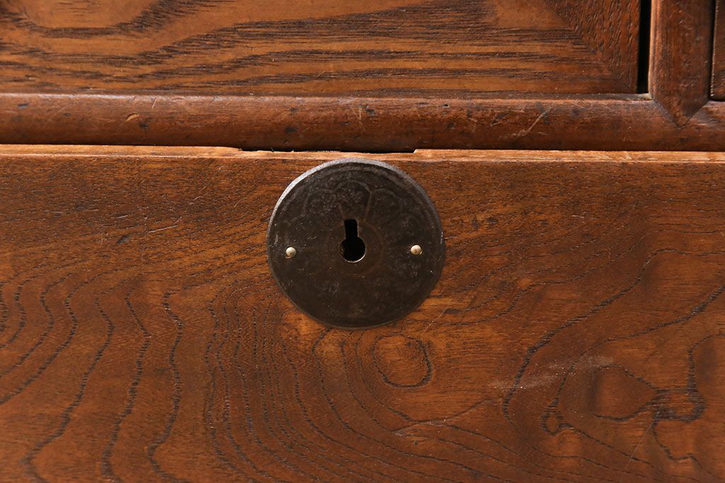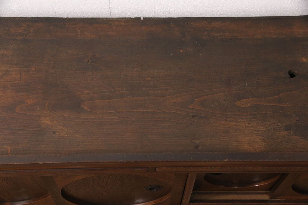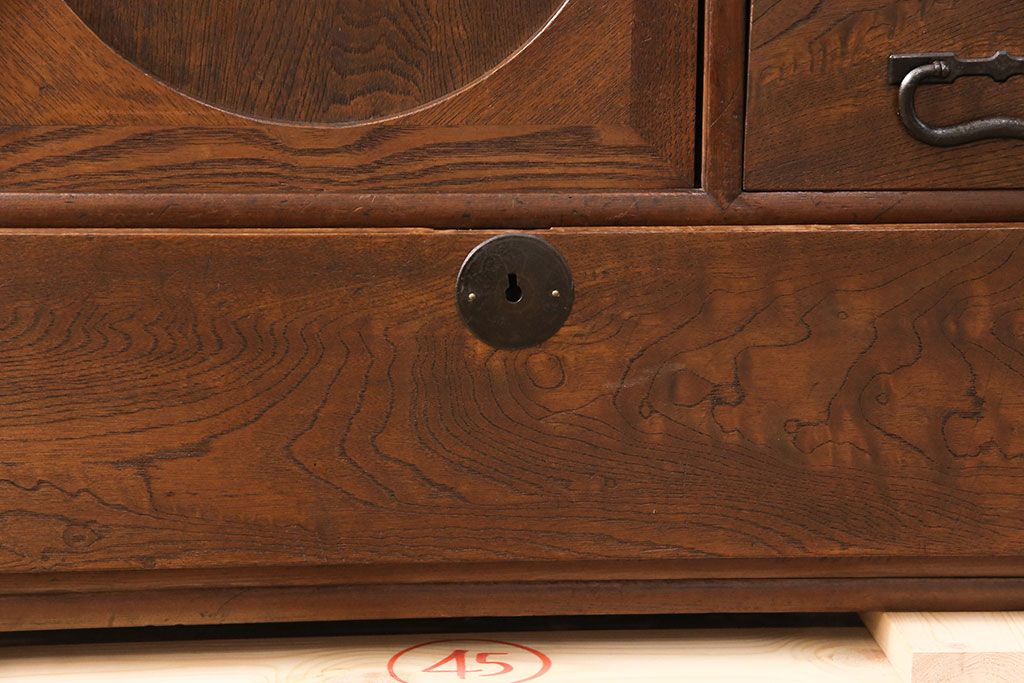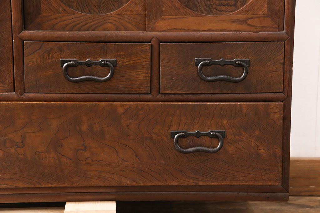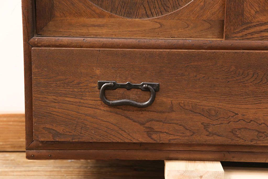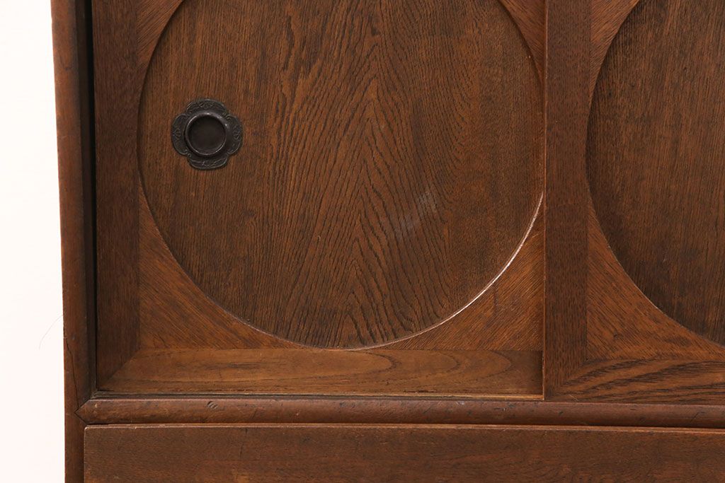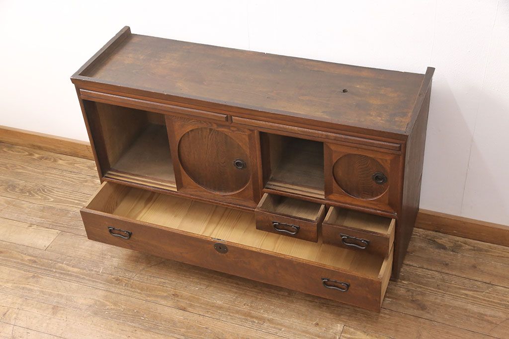 和製アンティーク 前面ケヤキ材 ガラスを入れて丸窓にリメイク! レトロなデザインが可愛らしい収納戸棚(テレビボード、テレビ台、サイドボード、ローボード)(R-051838)