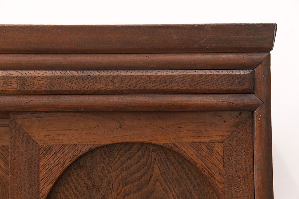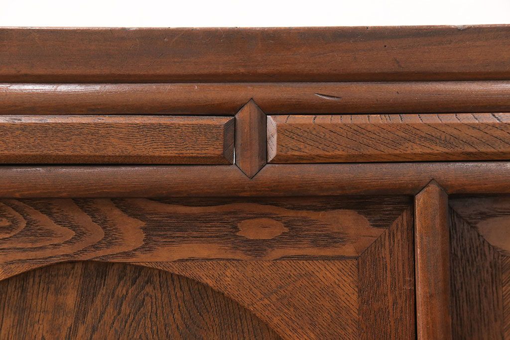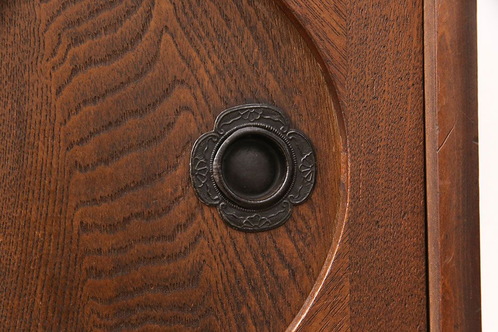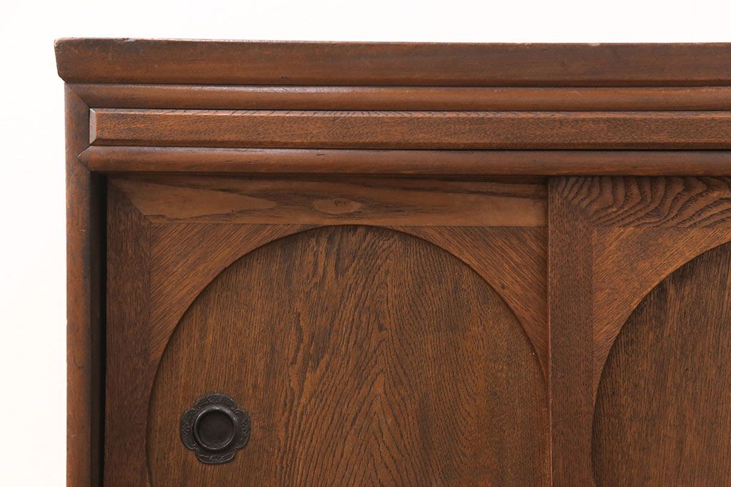 キャビネット・戸棚> サイドボード > 和製アンティーク 前面ケヤキ材 ガラスを入れて丸窓にリメイク! レトロなデザインが可愛らしい収納戸棚(テレビボード、テレビ台、サイドボード、ローボード)(R-051838)