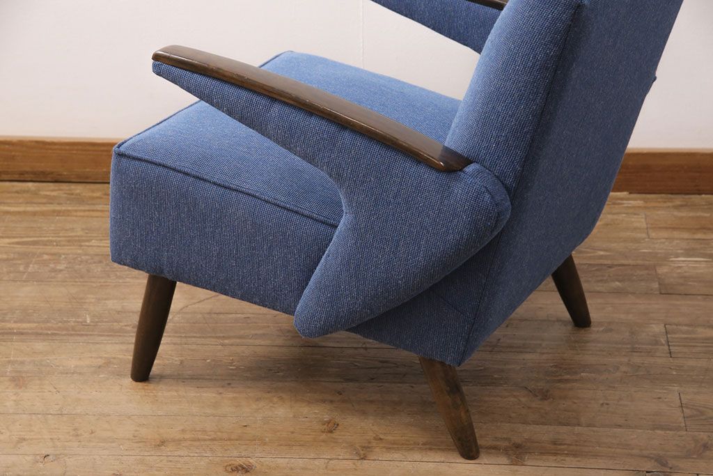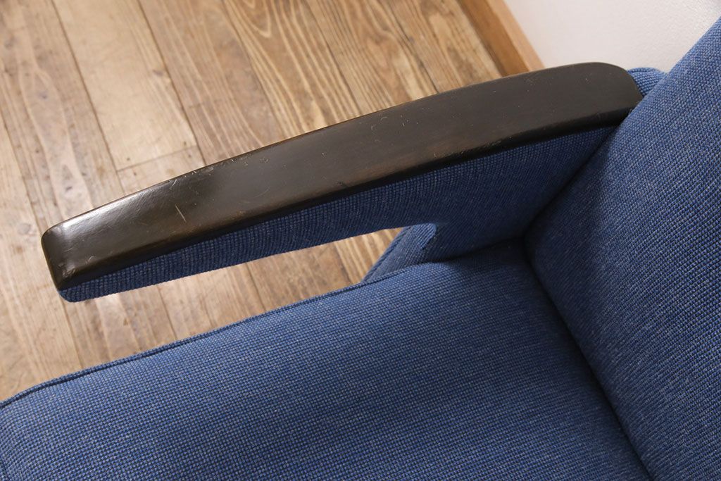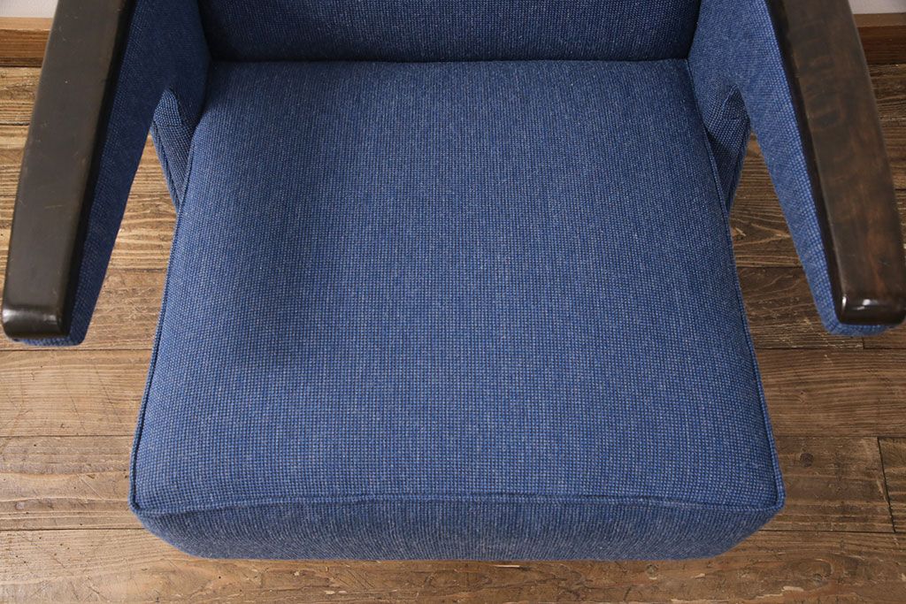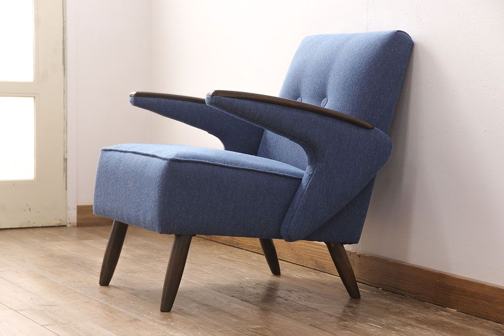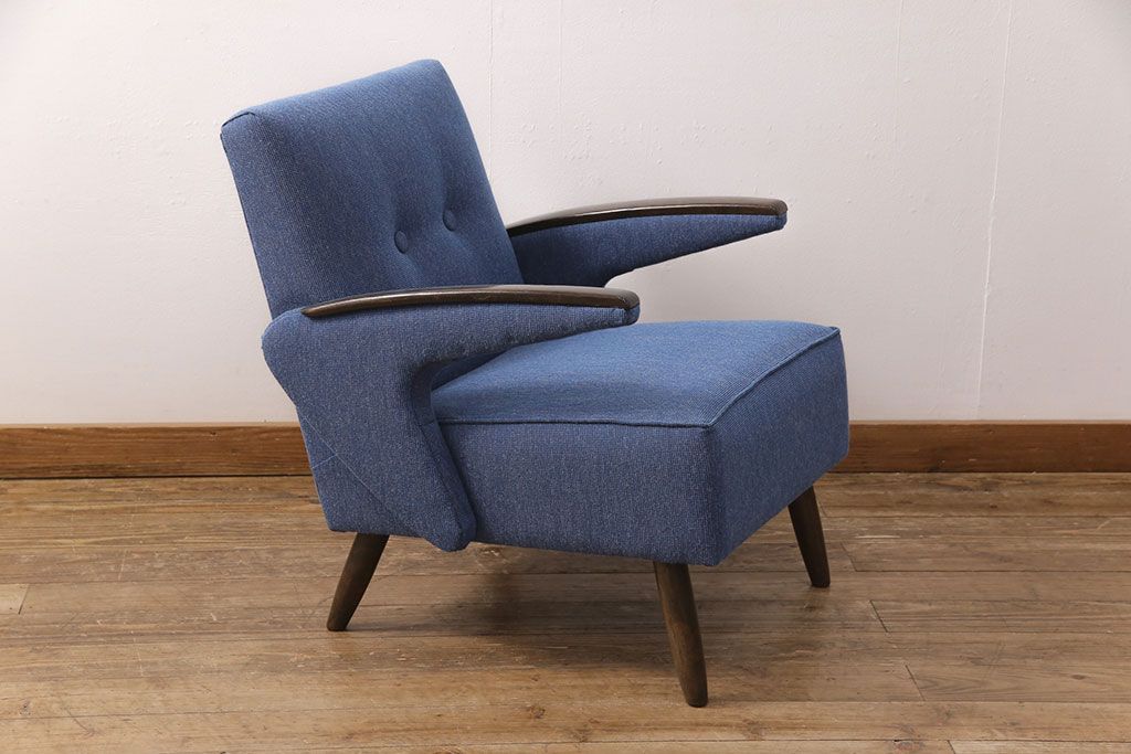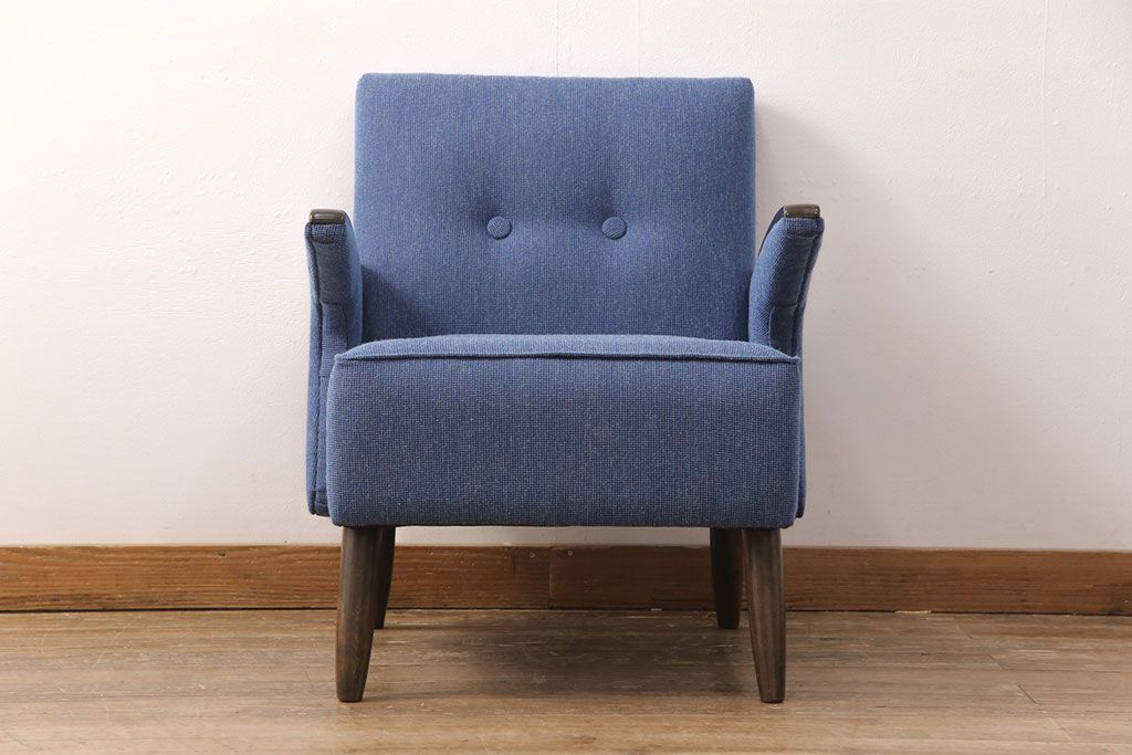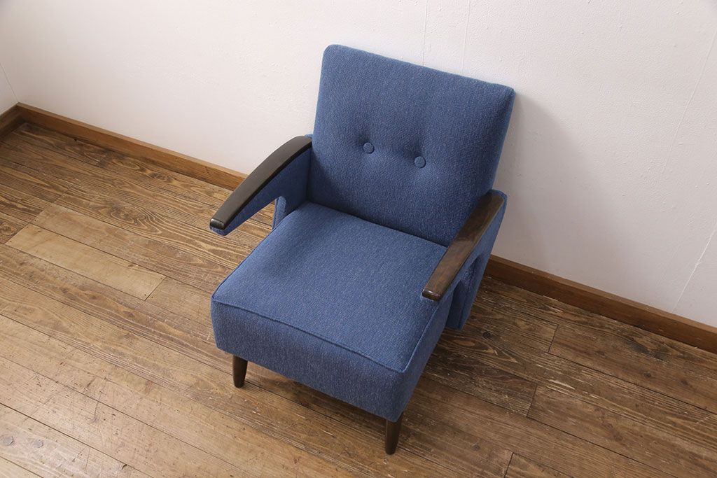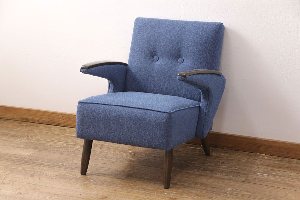 椅子・ベンチ> アームチェア > ヴィンテージの1人掛けソファをリペア&カスタム!指定の生地に張り替え、ボタンと縁のパイピングを再現。(1Pソファ、アームソファ)