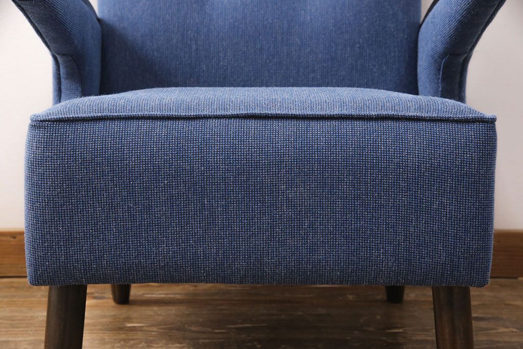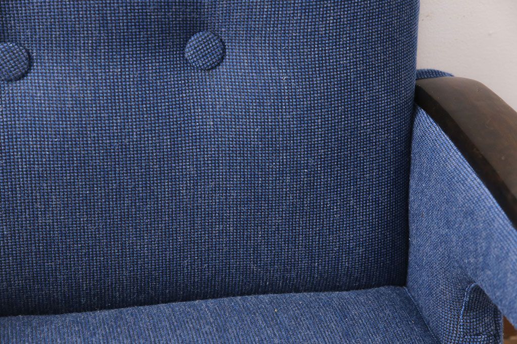 ヴィンテージの1人掛けソファをリペア&カスタム!指定の生地に張り替え、ボタンと縁のパイピングを再現。(1Pソファ、アームソファ)