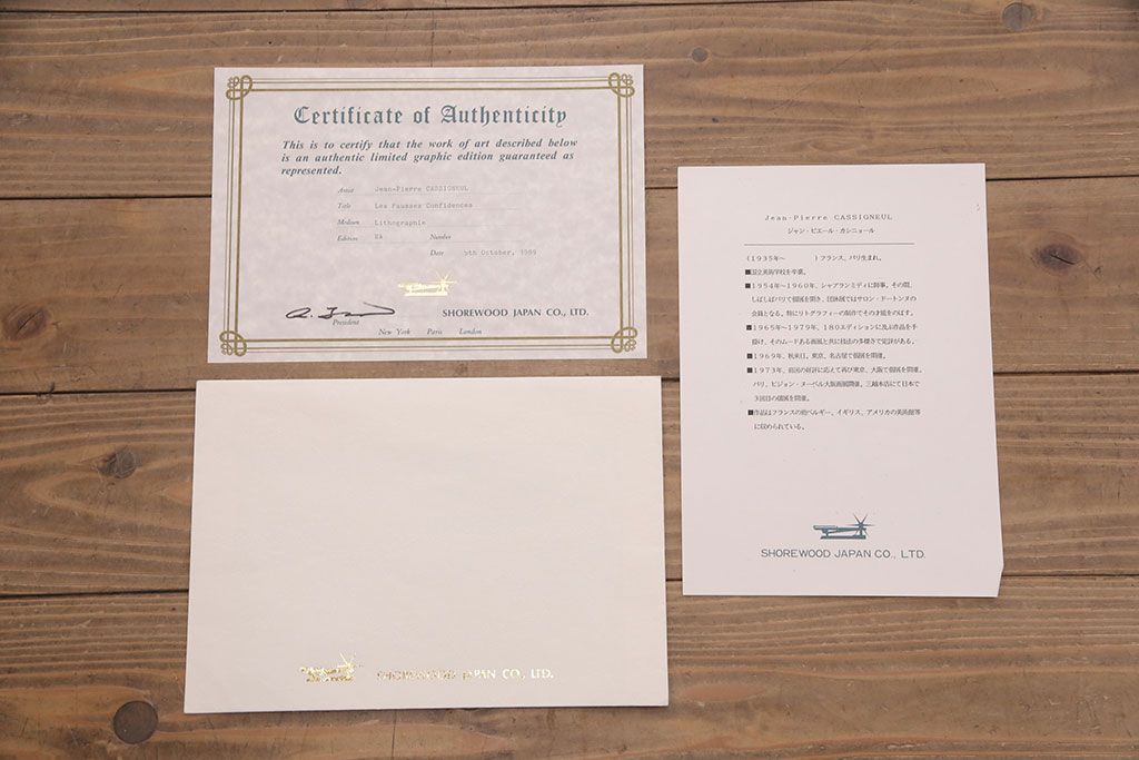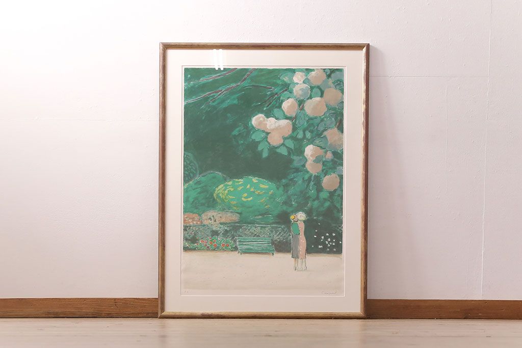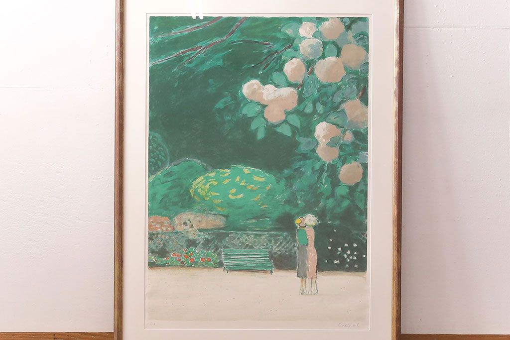 ラフジュ工房> 骨董・美術品> 日本画・洋画 > ジャン=ピエール・カシニョール(JeanPierreCassigneul) 「グリーンのベンチ」「 Les Fausses Confidences」 リトグラフ(ディスプレイ、石版画)(R-051553)