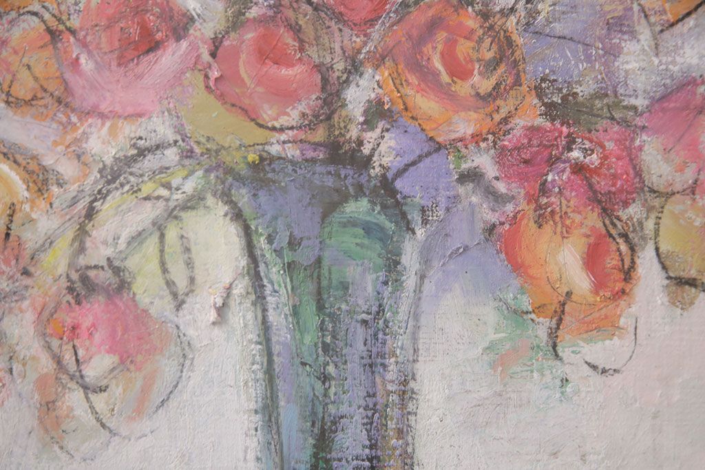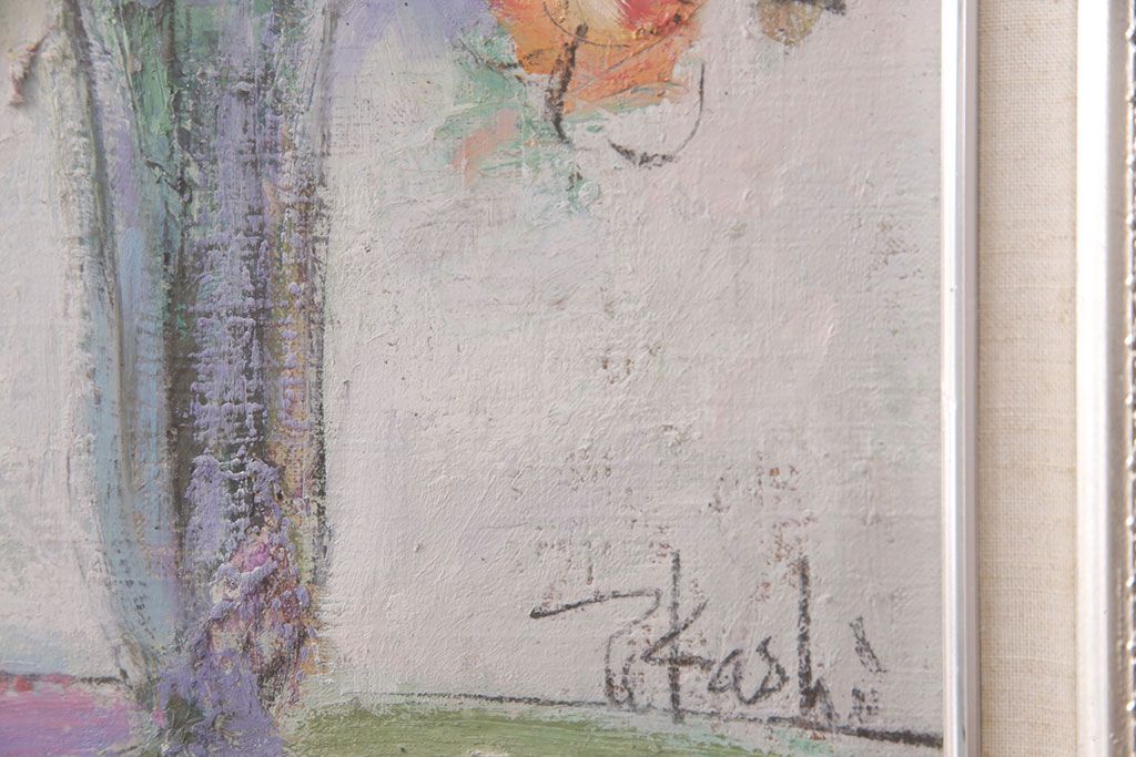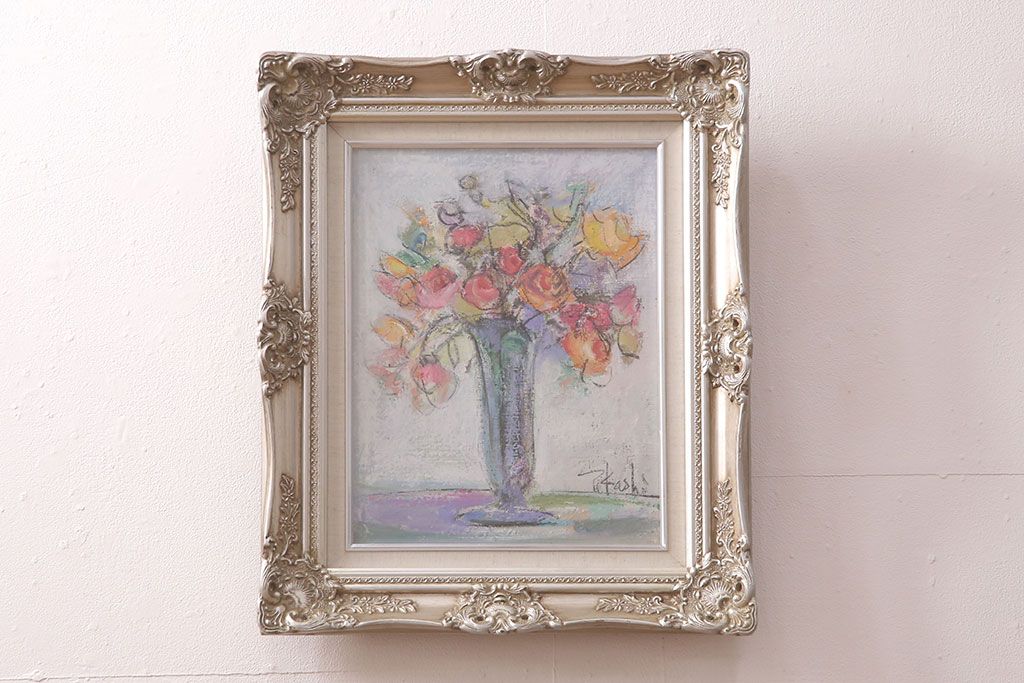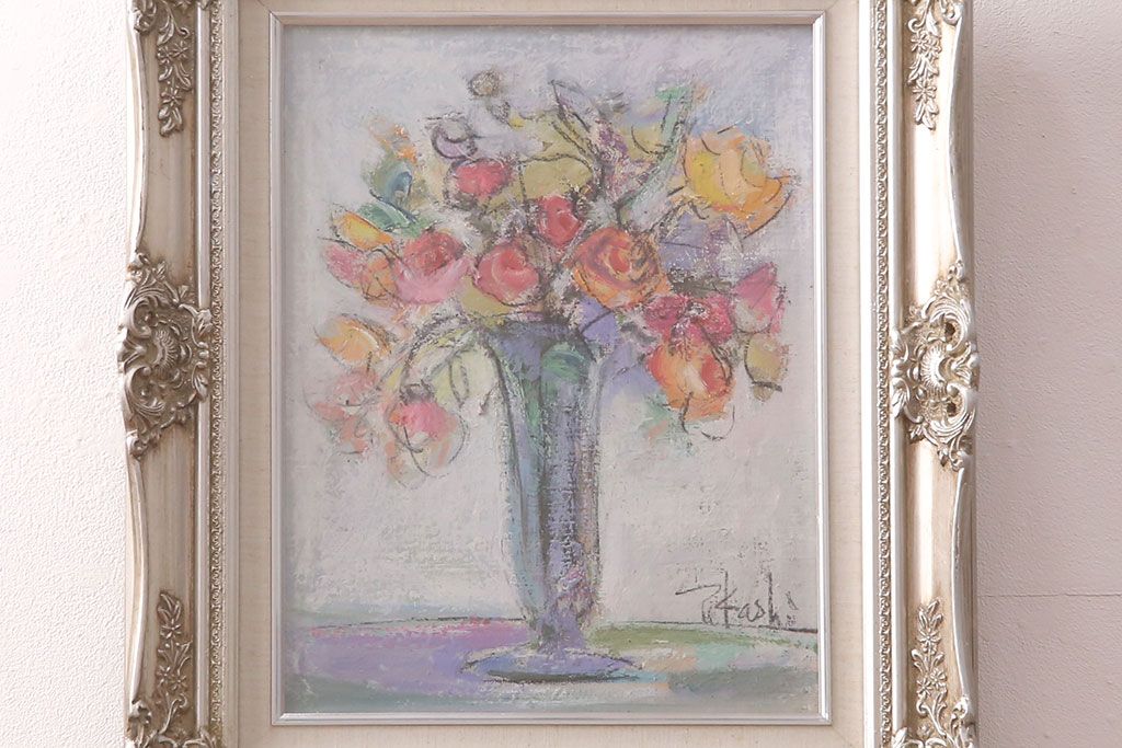 油彩画 樫原隆男 花 三軌会会員 油絵(ディスプレイ)(R-051555)