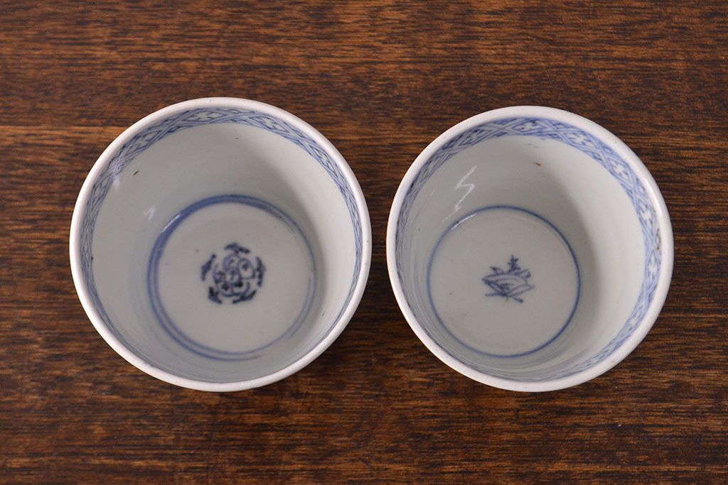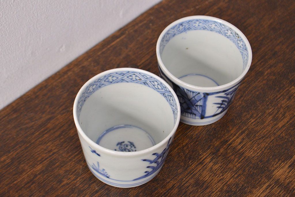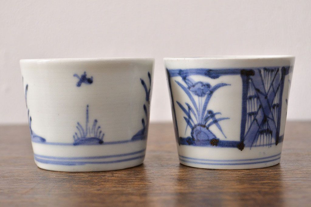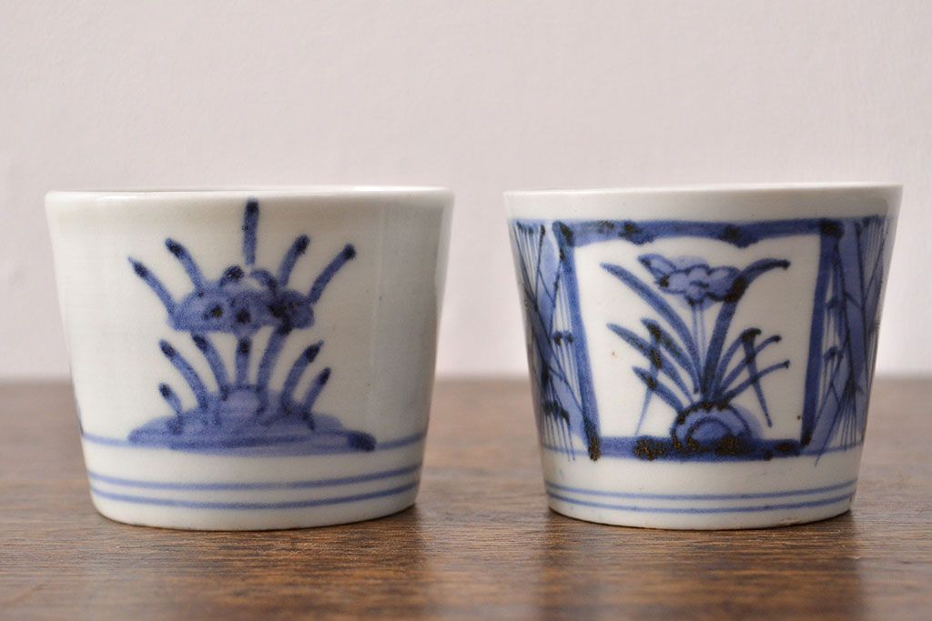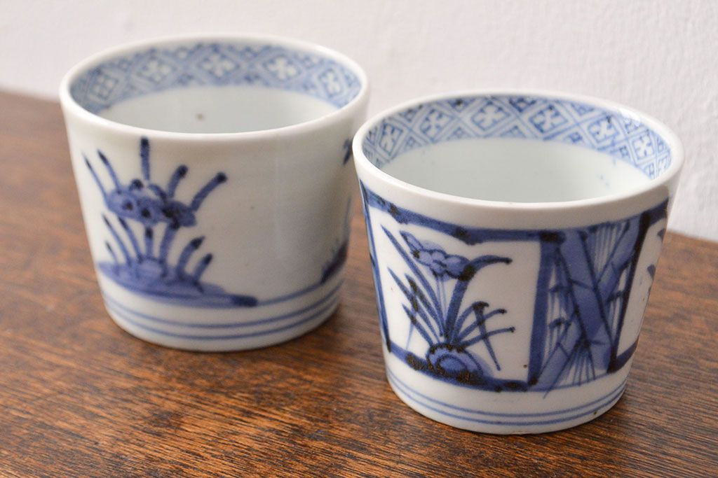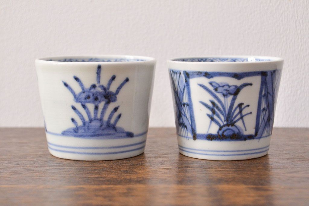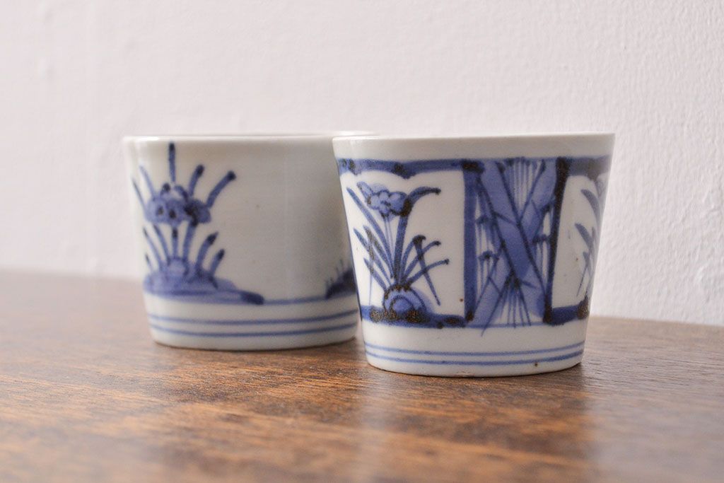 ラフジュ工房> 骨董・美術品> 骨董-陶磁器 > 江戸期 古伊万里 水仙文染付 蕎麦猪口2客セット(和食器)(R-051942)