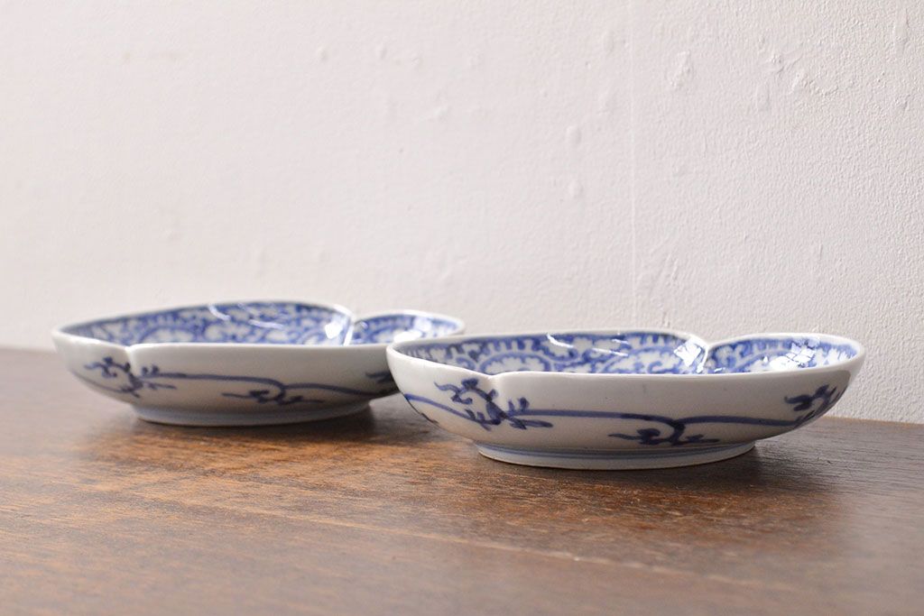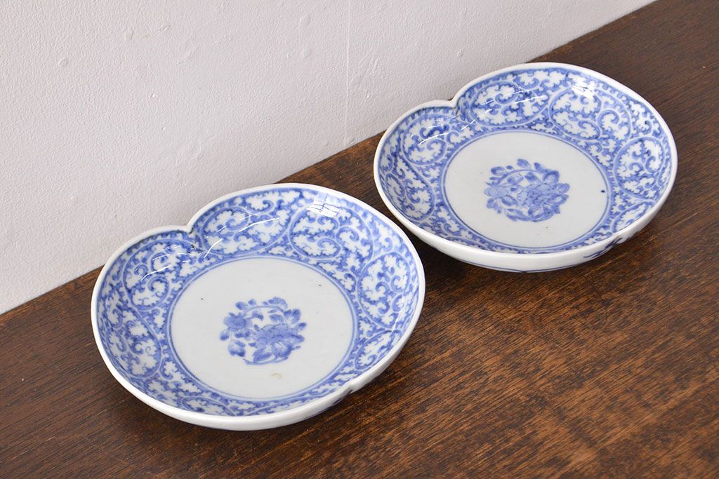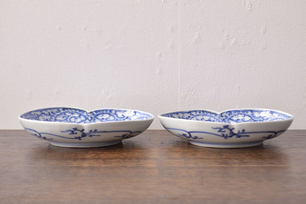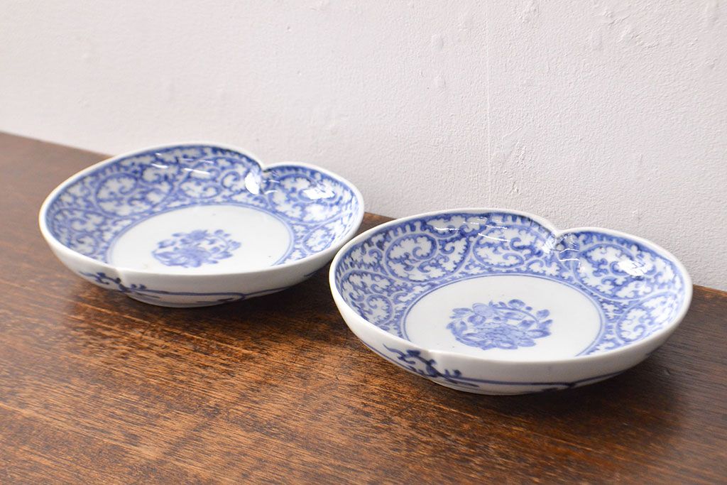 ラフジュ工房> 和食器・茶道具 > 江戸期 古伊万里 蛸唐草文 渦福 変形皿2枚セット(和食器)(R-051970)