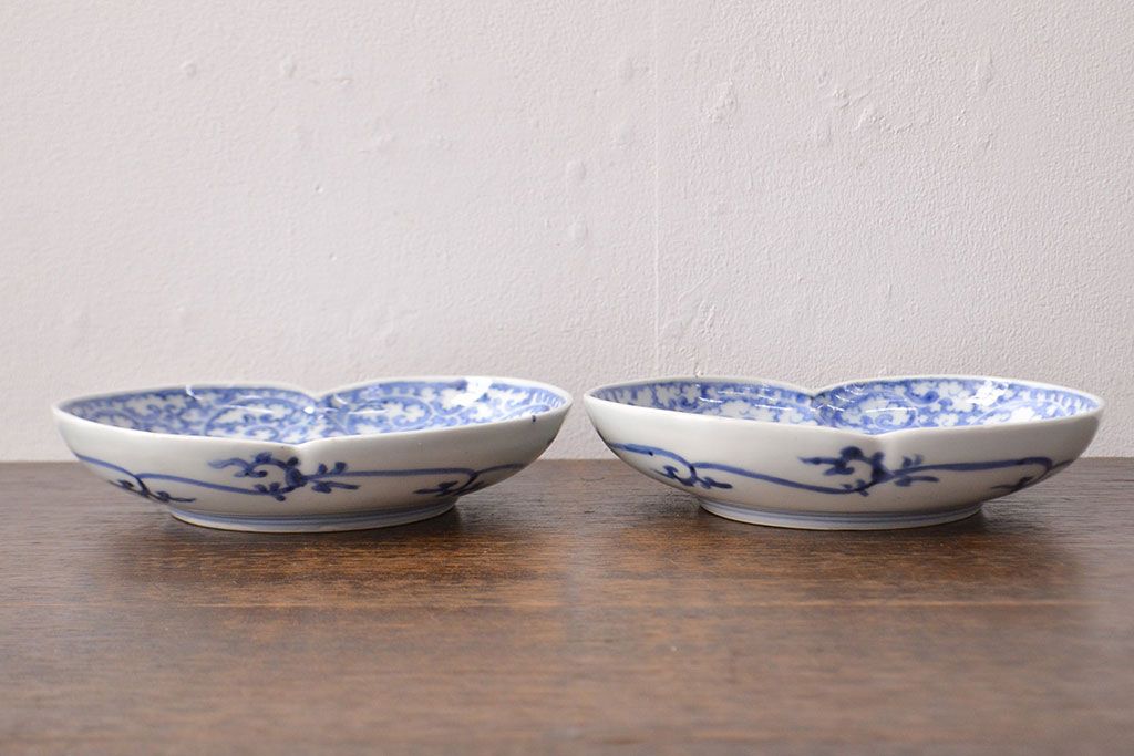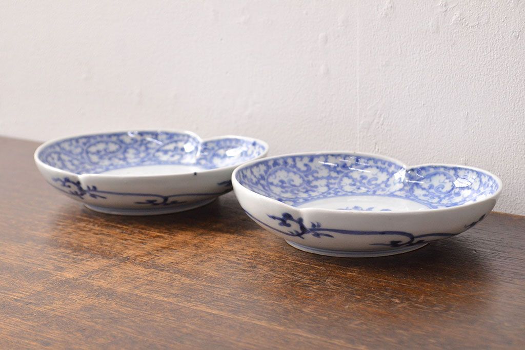 ラフジュ工房> 和食器・茶道具 > 江戸期 古伊万里 蛸唐草文 渦福 変形皿2枚セット(和食器)(R-051972)