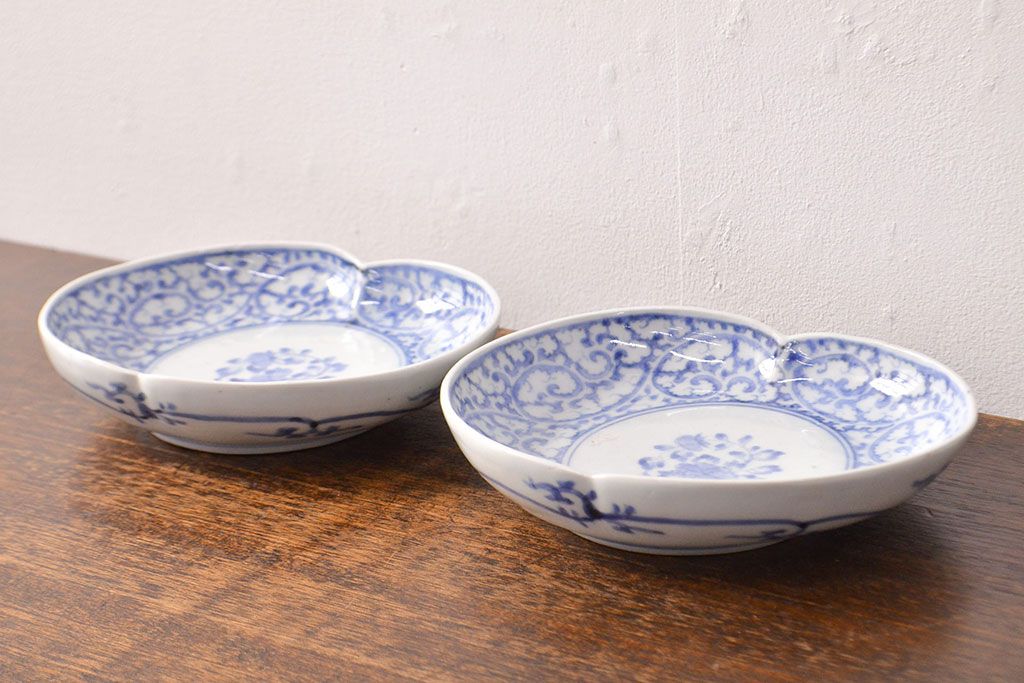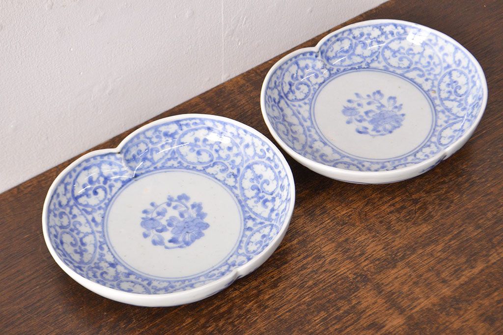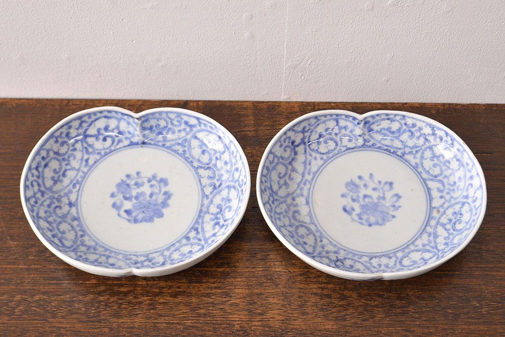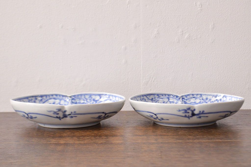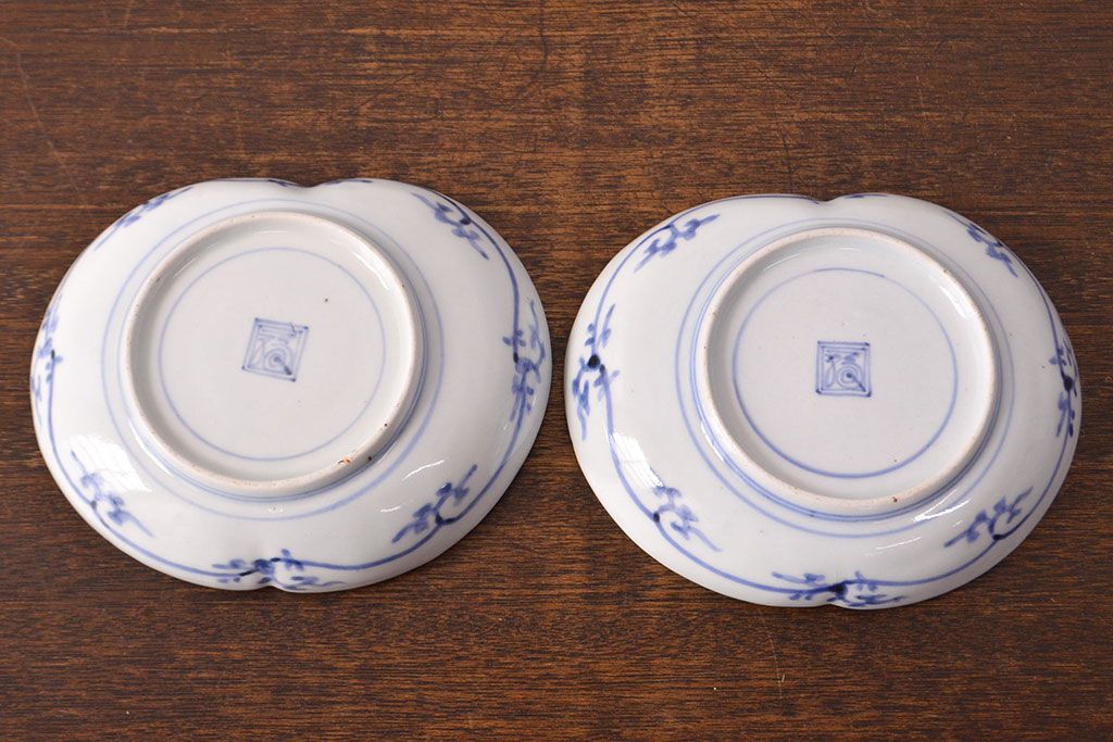 ラフジュ工房> 和食器・茶道具 > 江戸期 古伊万里 蛸唐草文 渦福 変形皿2枚セット(和食器)(R-051973)