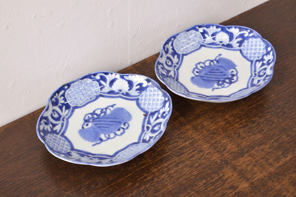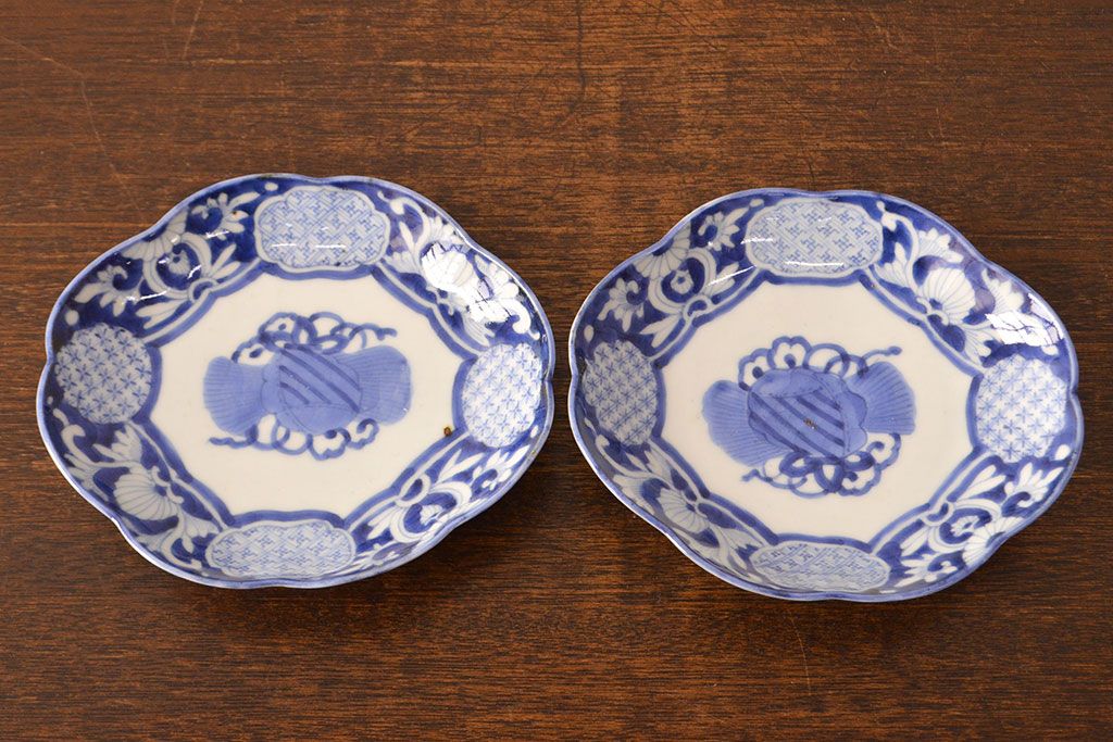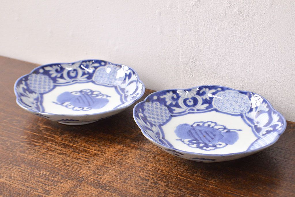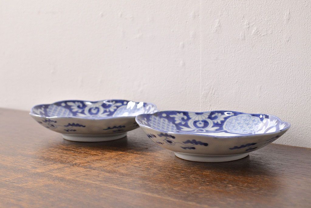 ラフジュ工房> 和食器・茶道具 > 江戸期 古伊万里 染付変形皿2枚セット(和食器)(R-051975)