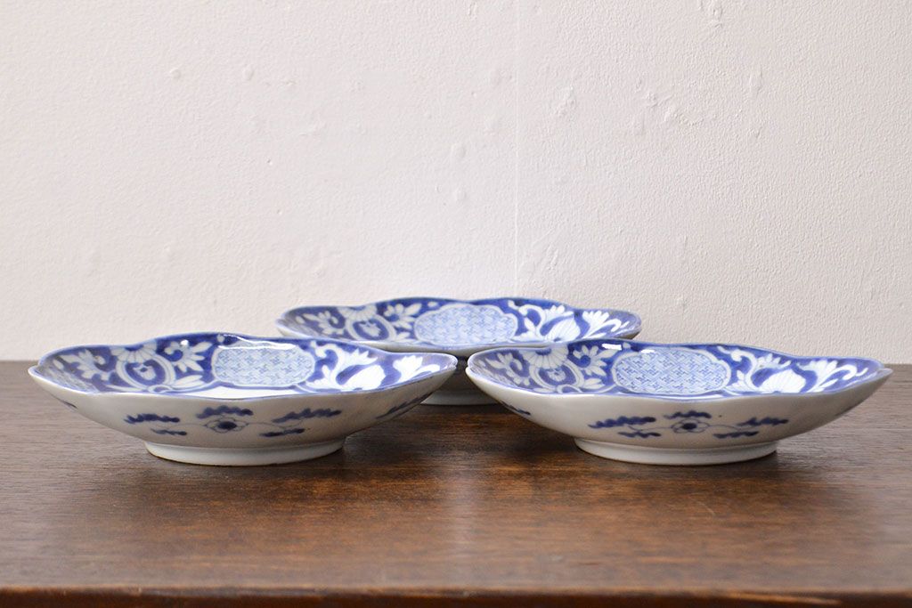 ラフジュ工房> 和食器・茶道具 > 江戸期 古伊万里 染付変形皿3枚セット(和食器)(R-051976)