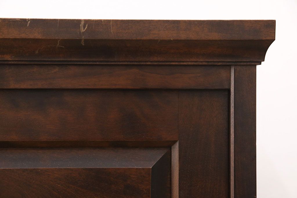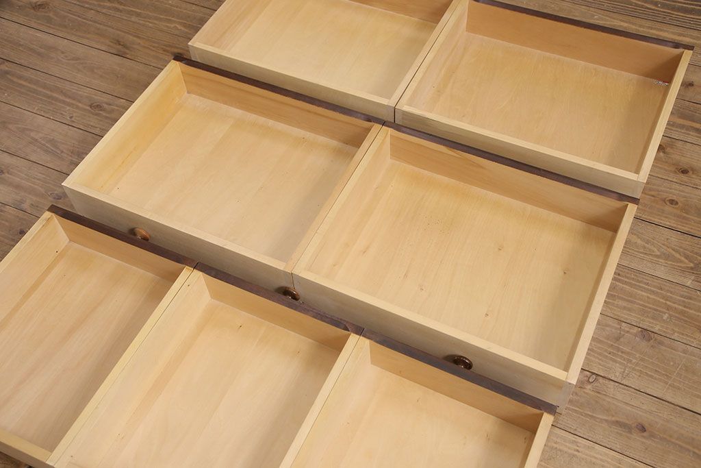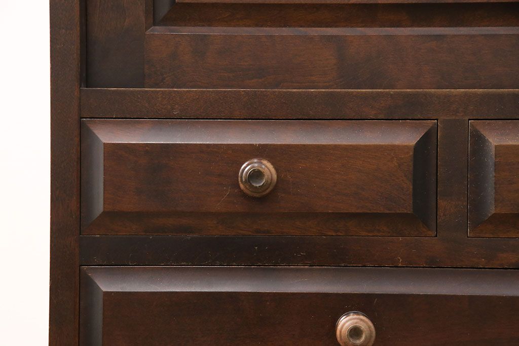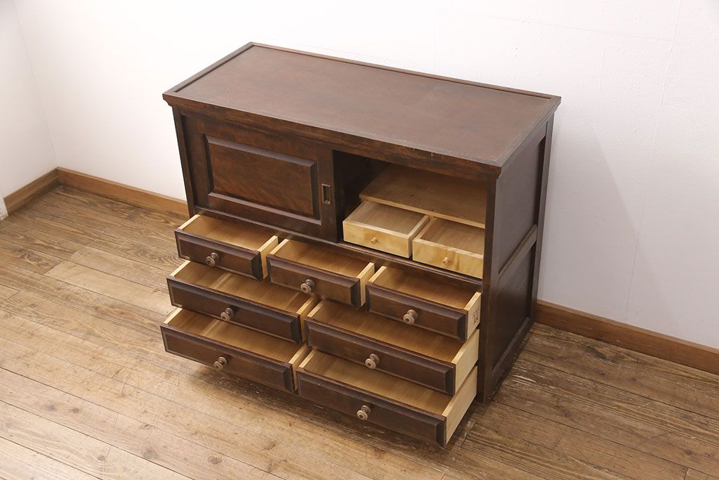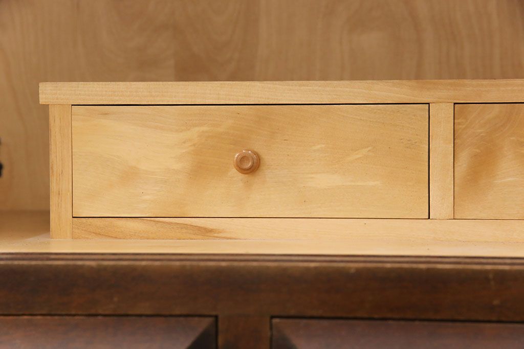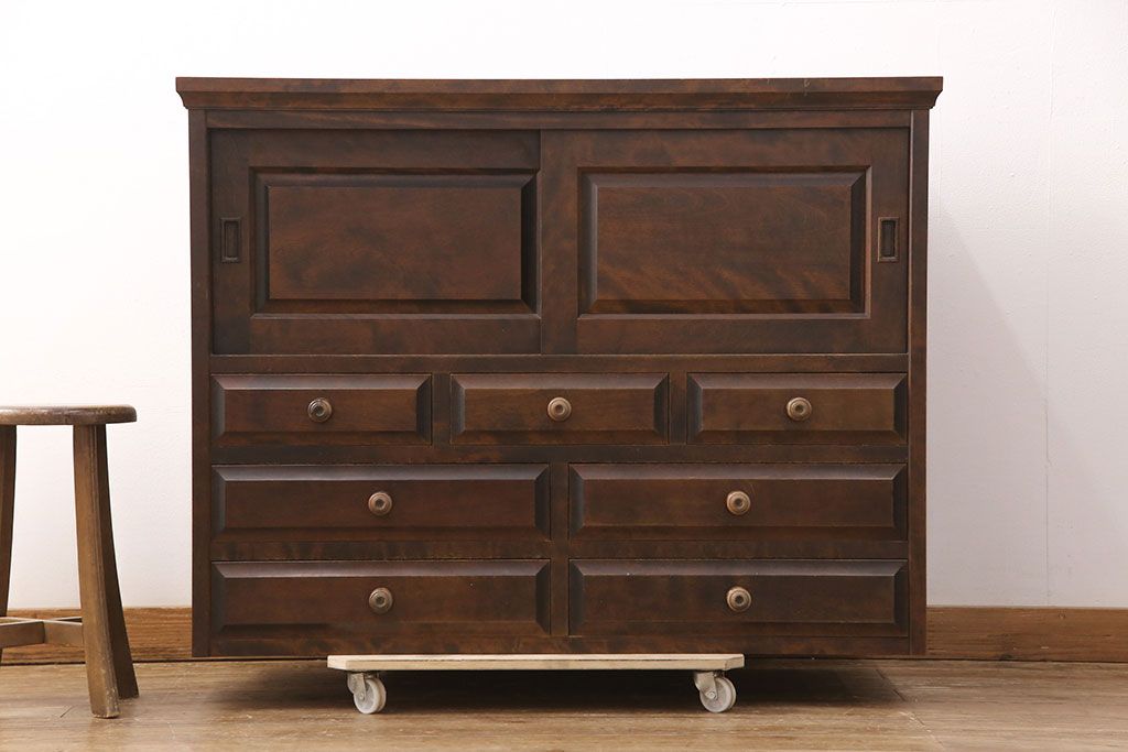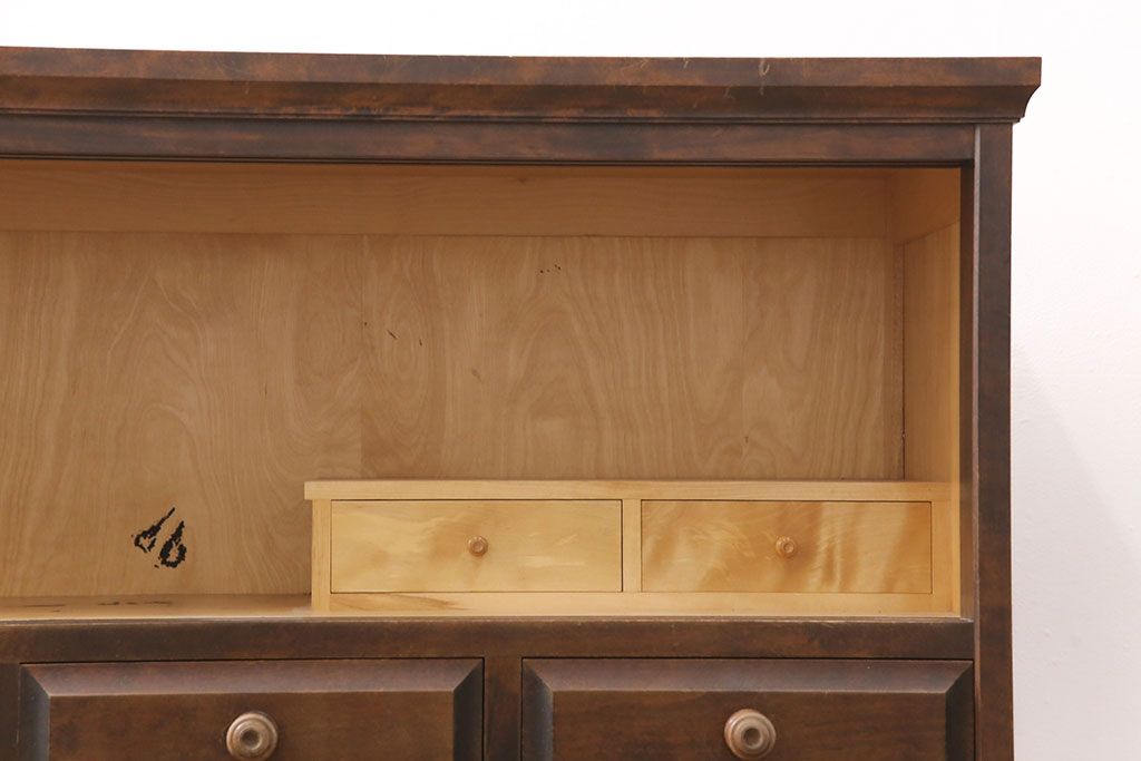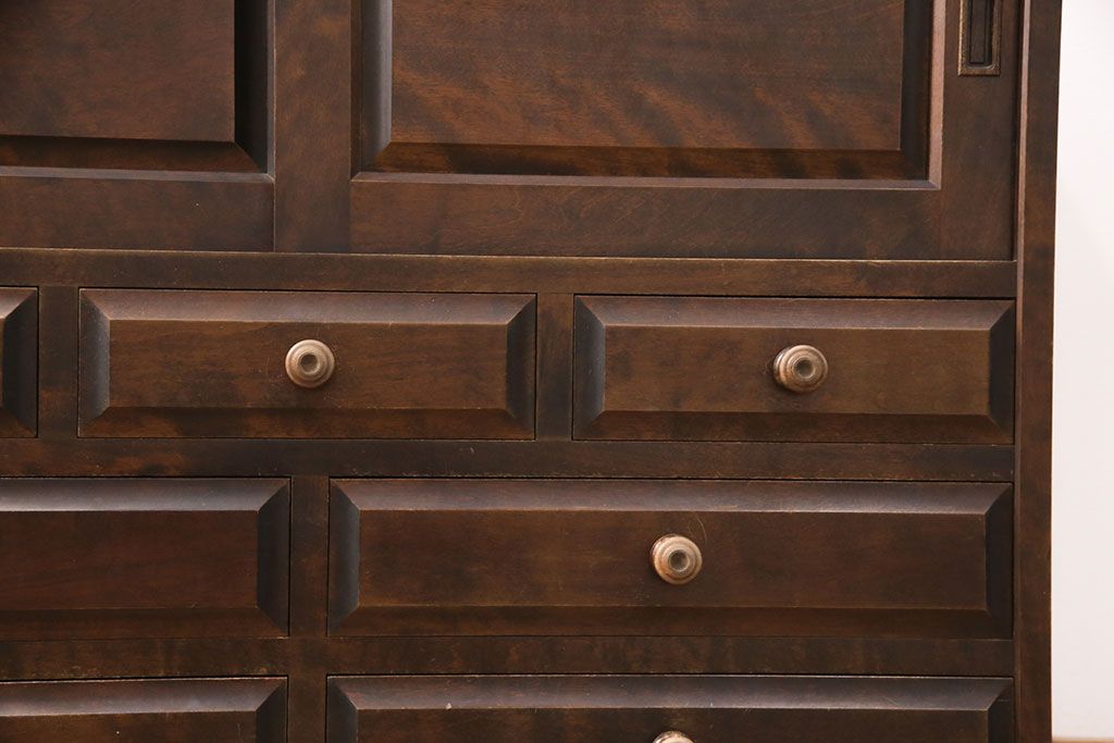ラフジュ工房> チェスト・引き出し> サイドチェスト > 中古 北海道民芸家具 脚(台輪)付きリメイク 取り入れやすいサイズが嬉しい!シックな佇まいが魅力の収納棚(サイドキャビネット、サイドボード、戸棚、引き出し、サイドチェスト)(R-051762)