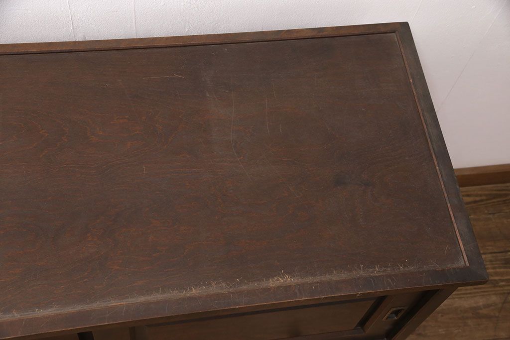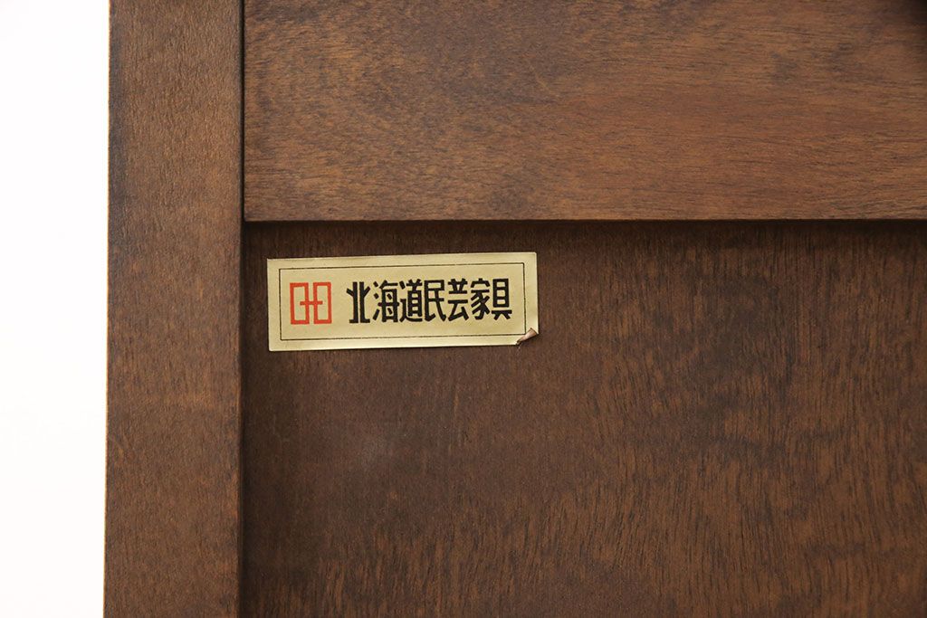 中古 北海道民芸家具 脚(台輪)付きリメイク 取り入れやすいサイズが嬉しい!シックな佇まいが魅力の収納棚(サイドキャビネット、サイドボード、戸棚、引き出し、サイドチェスト)(R-051762)