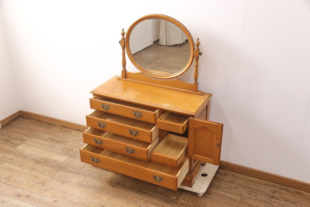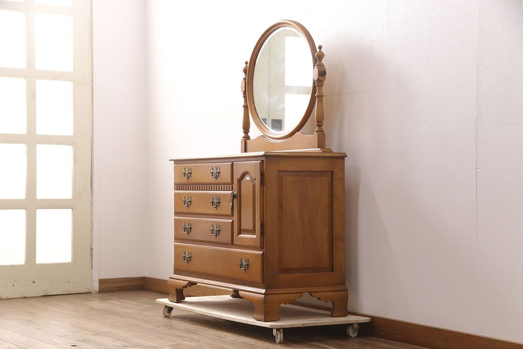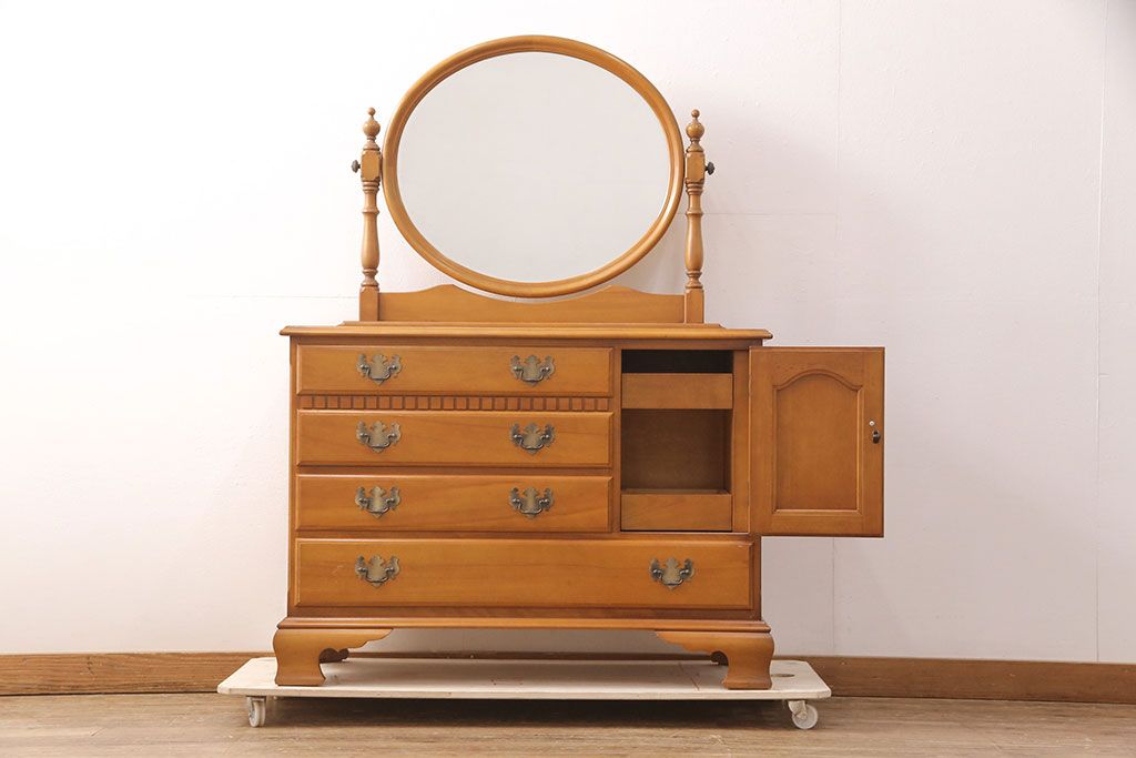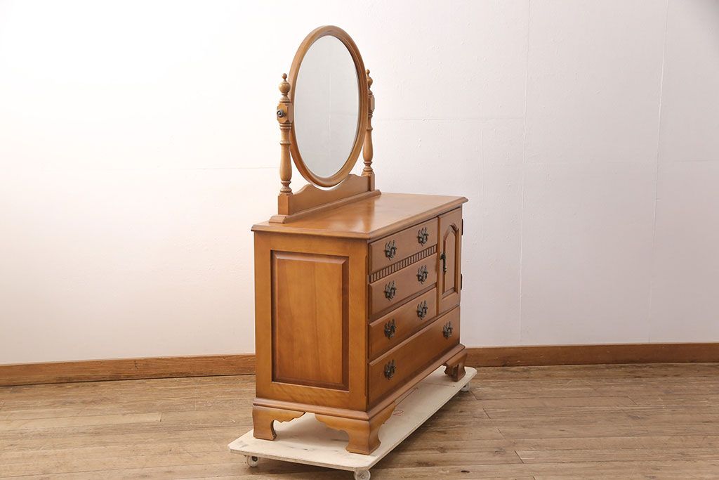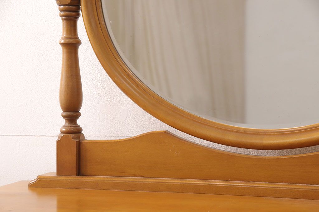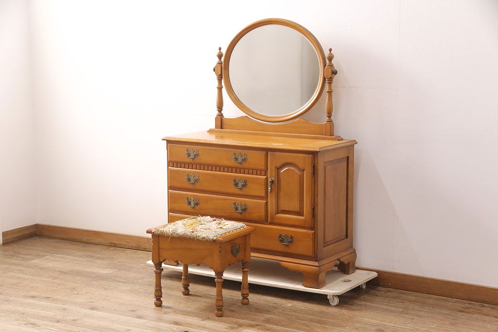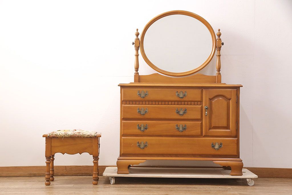 中古 横浜クラシック家具 ダニエル(Daniel) ラウンド型の鏡が印象的なドレッサー&スツールセット(鏡台、サイドチェスト、チェア)(定価約74万円)(R-051843)です。