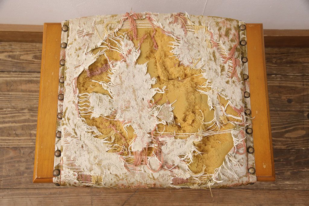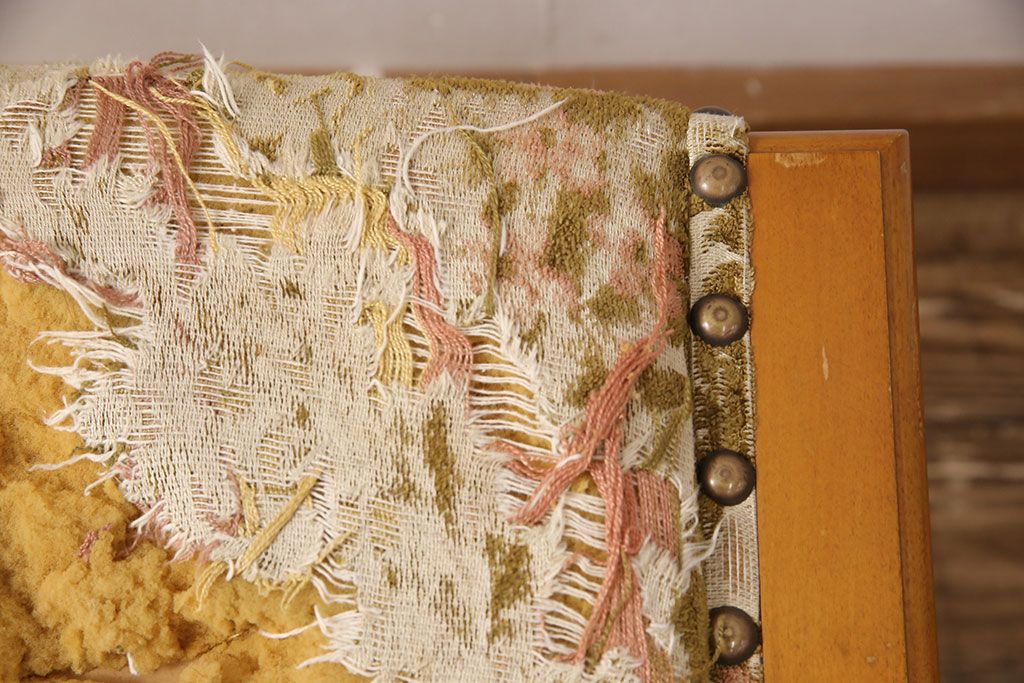 座面生地とクッション(座面内スポンジ)は当店にて張り替えて仕上げます。(料金込み)