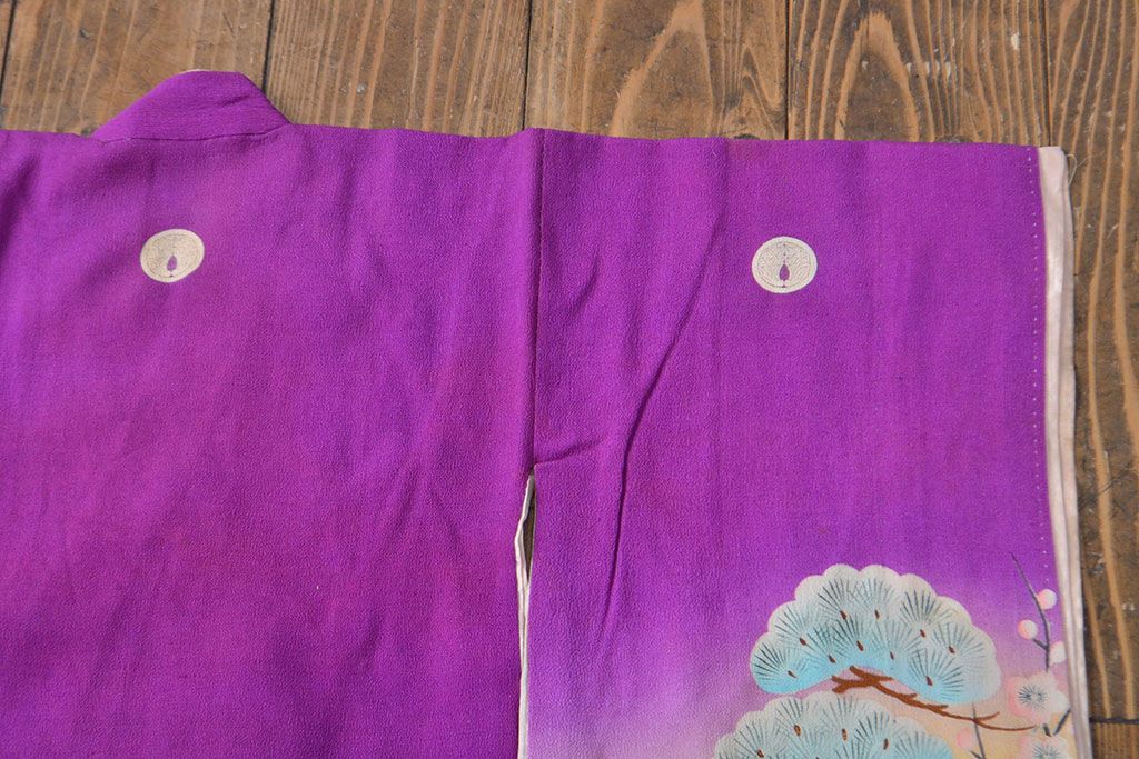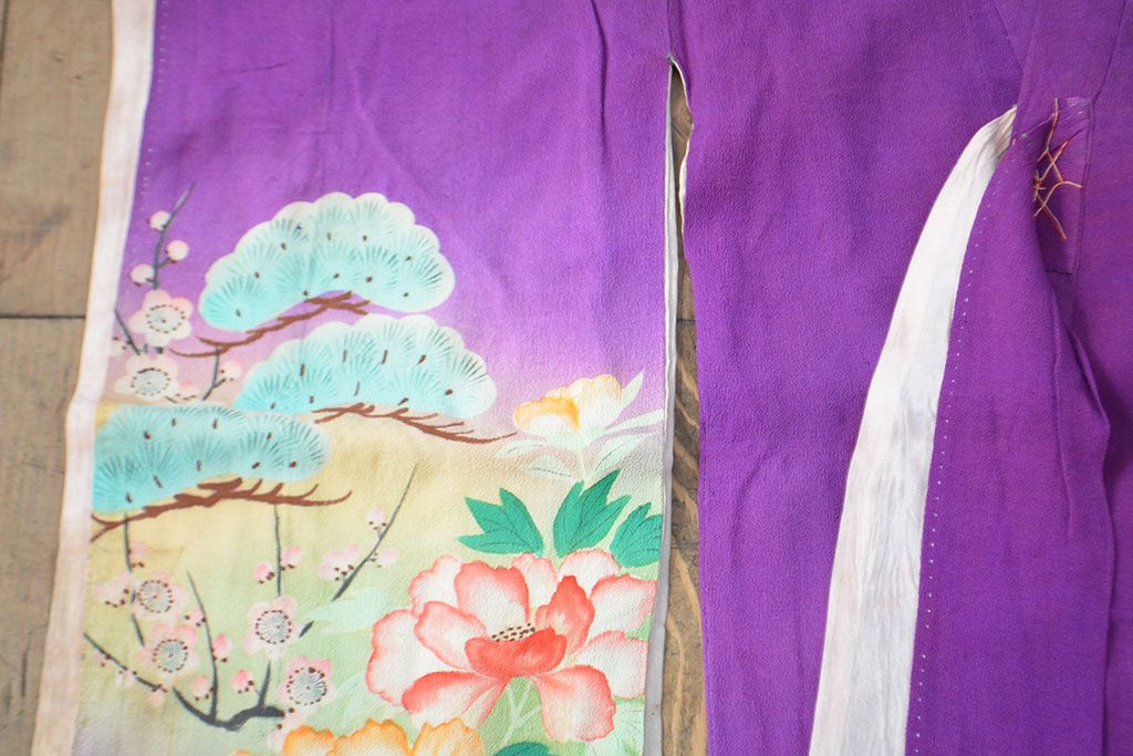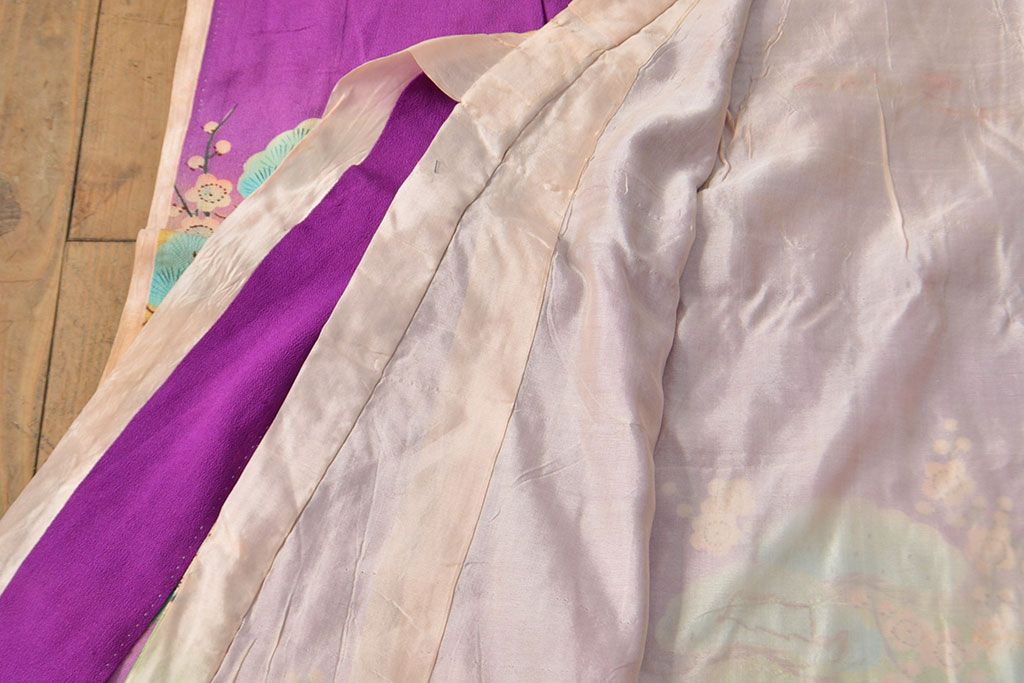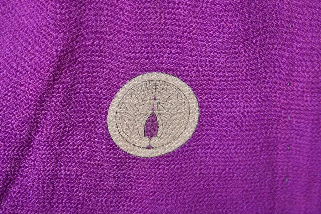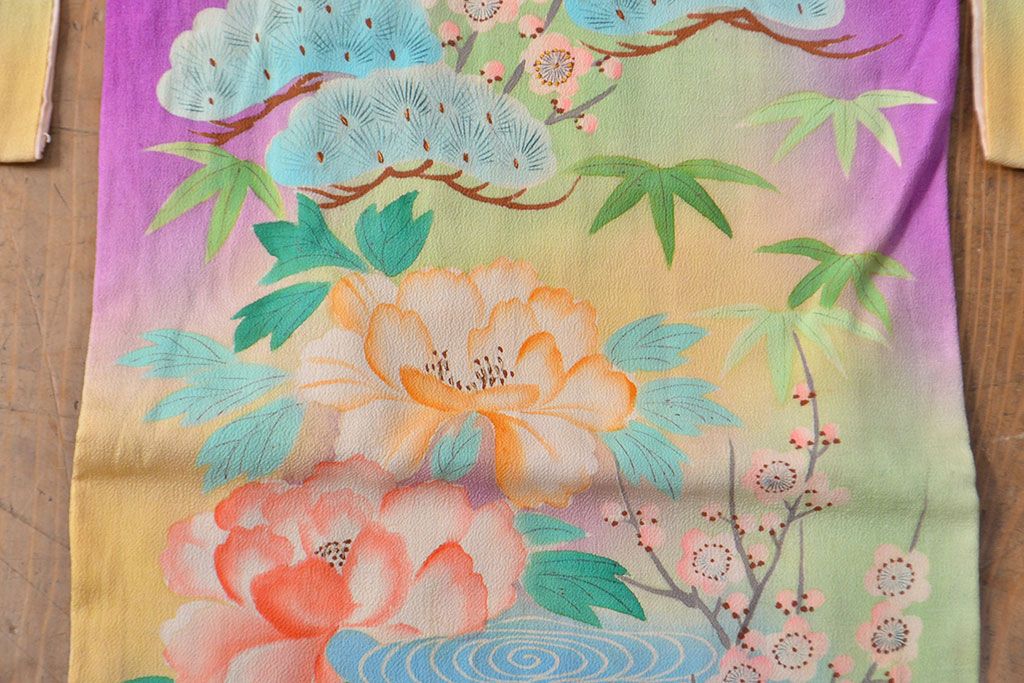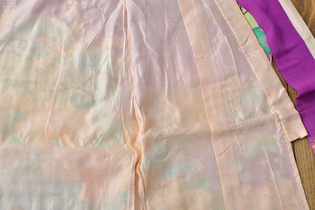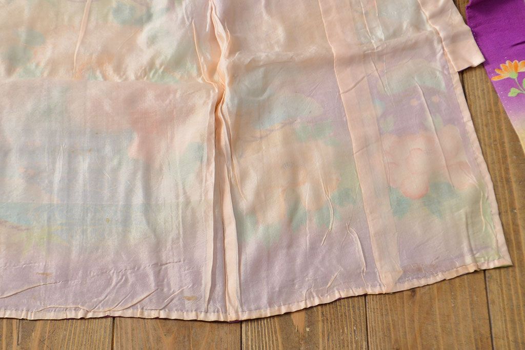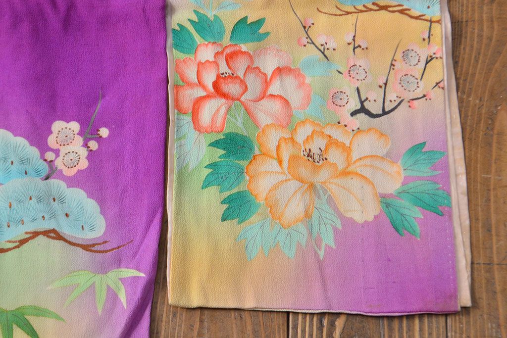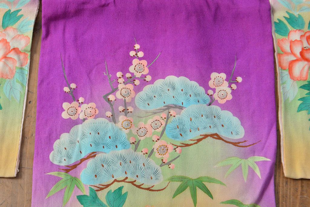 大正〜昭和初期 梅に牡丹 アンティーク 縮緬着物(正絹、古布、ちりめん)(R-051869)