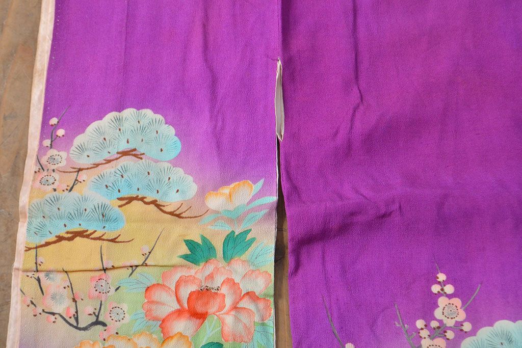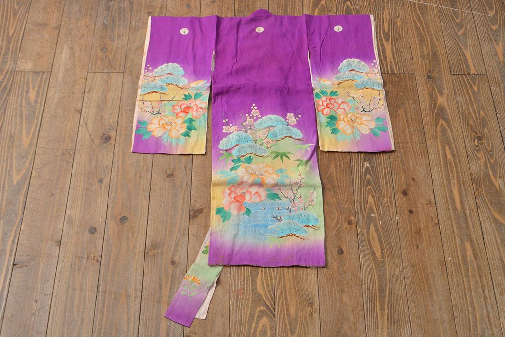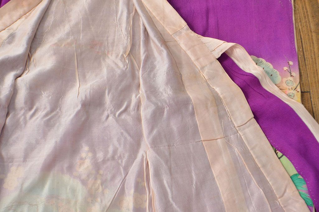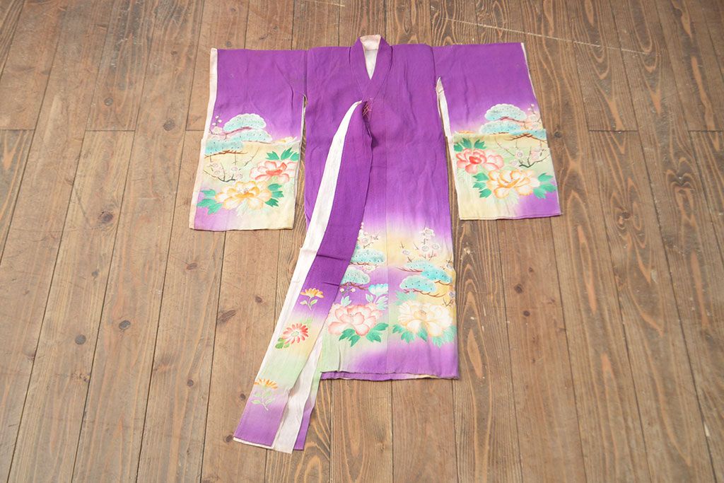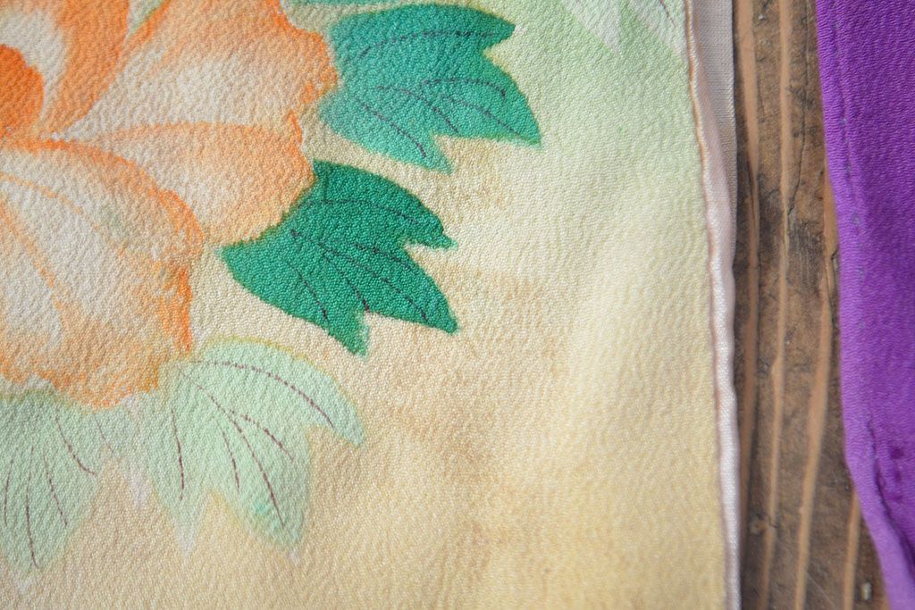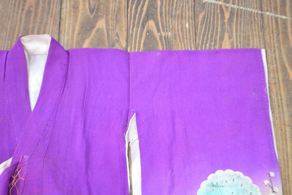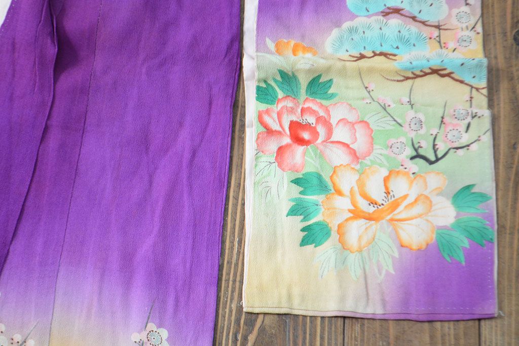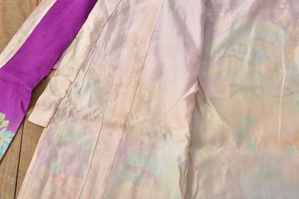 大正〜昭和初期 梅に牡丹 アンティーク 縮緬着物(正絹、古布、ちりめん)(R-051869)