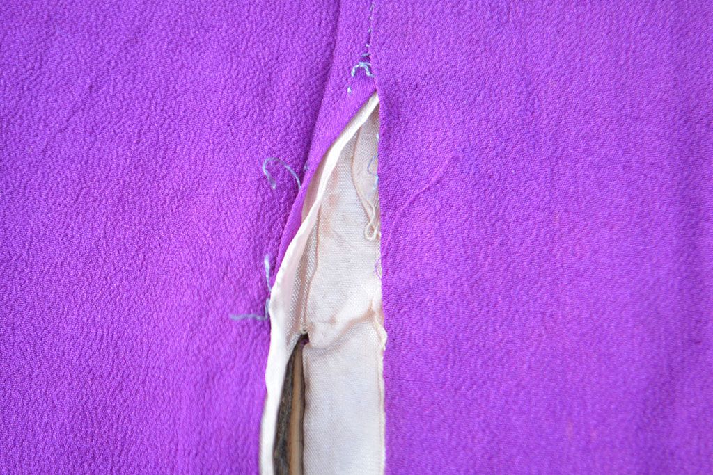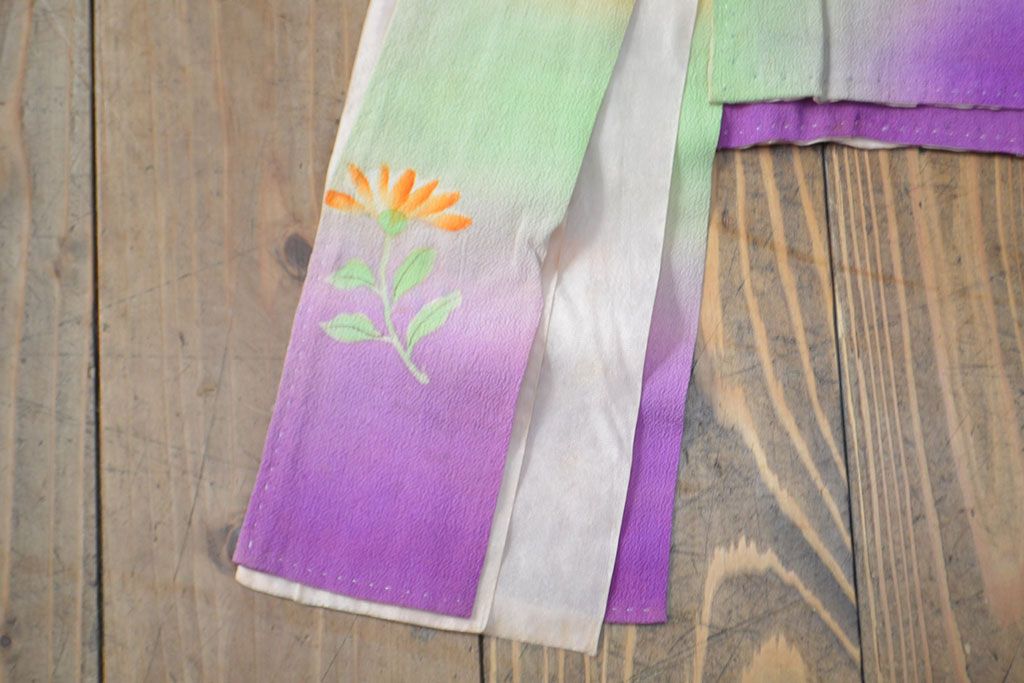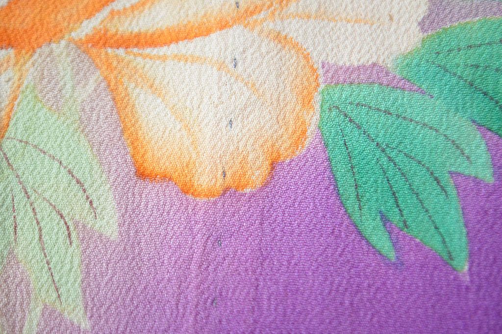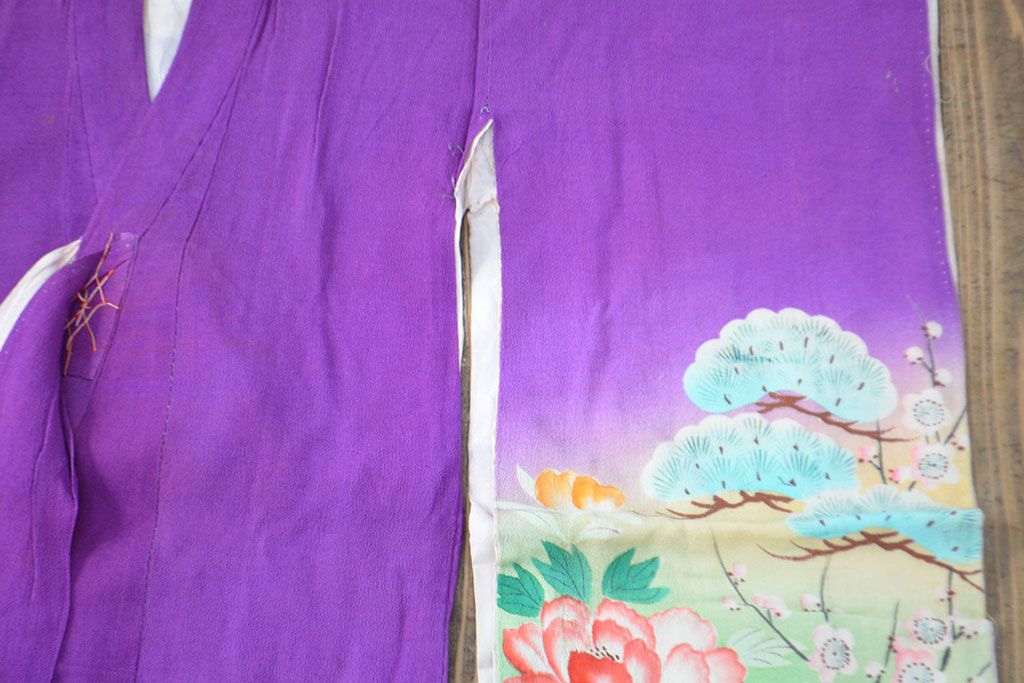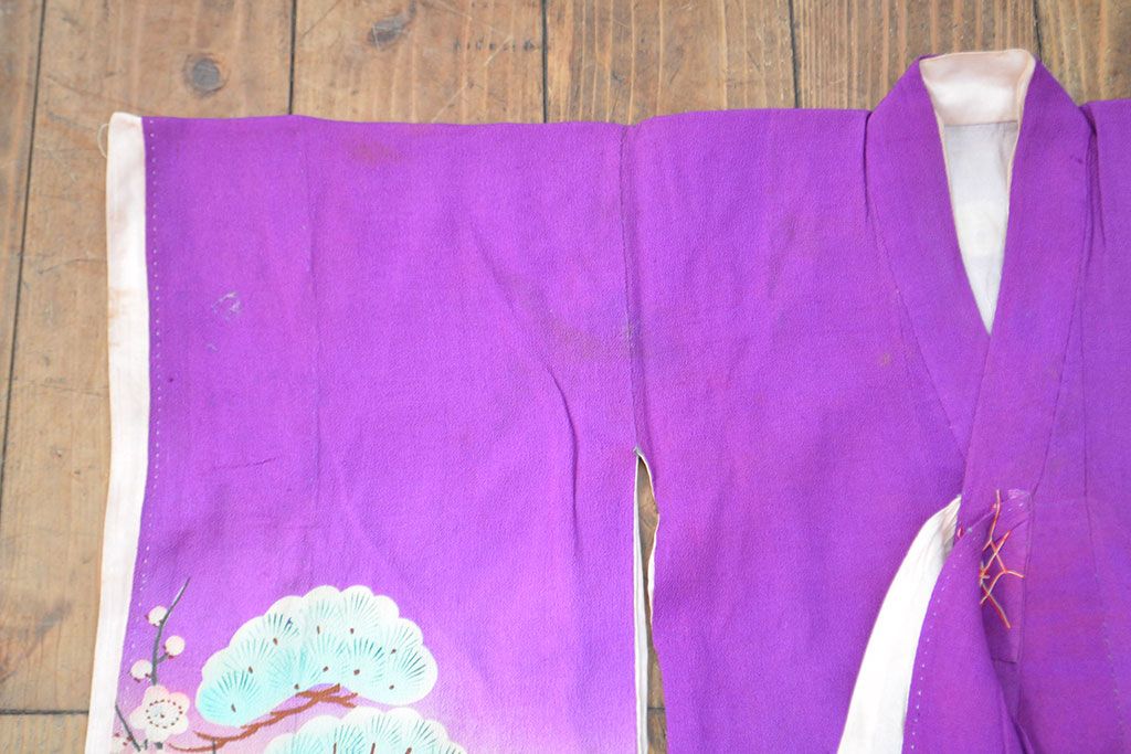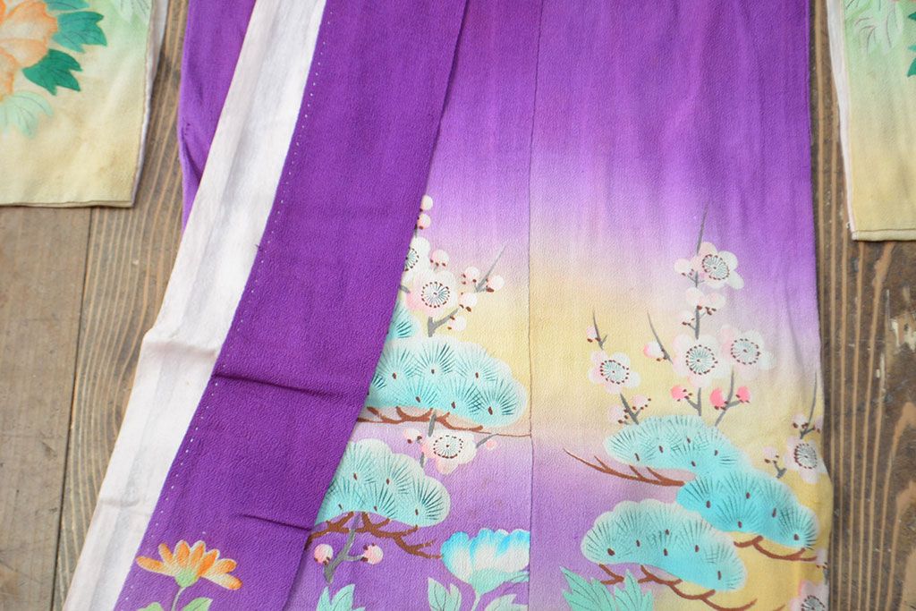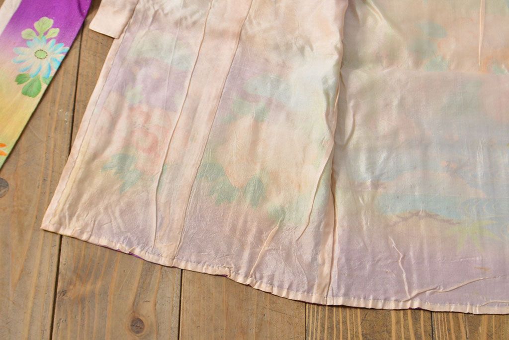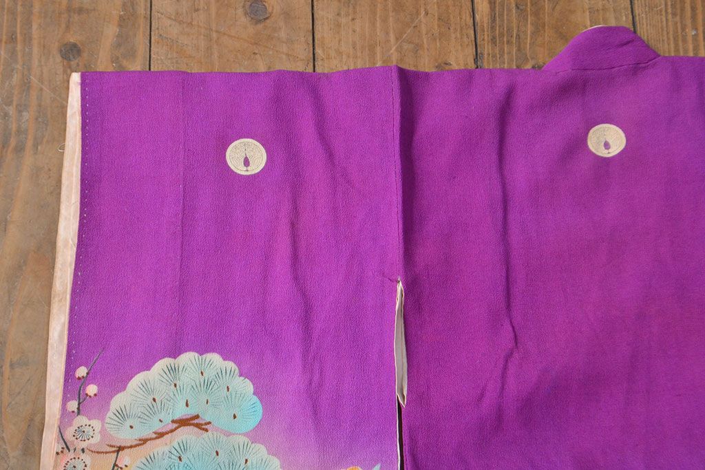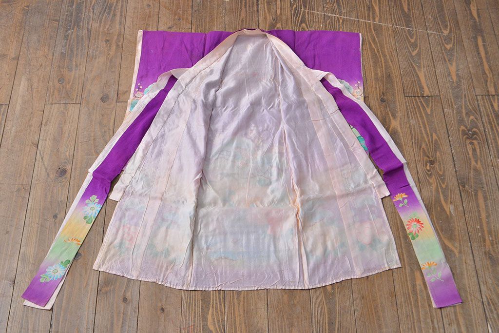 大正〜昭和初期 梅に牡丹 アンティーク 縮緬着物(正絹、古布、ちりめん)(R-051869)