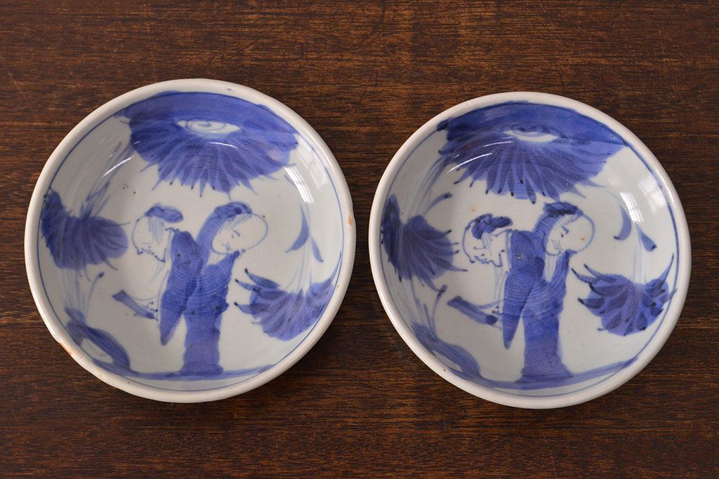 ラフジュ工房> 骨董・美術品> 骨董-陶磁器 > 江戸期 古伊万里 染付仙人図 なます皿2枚セット(中皿、和食器)(R-051997)