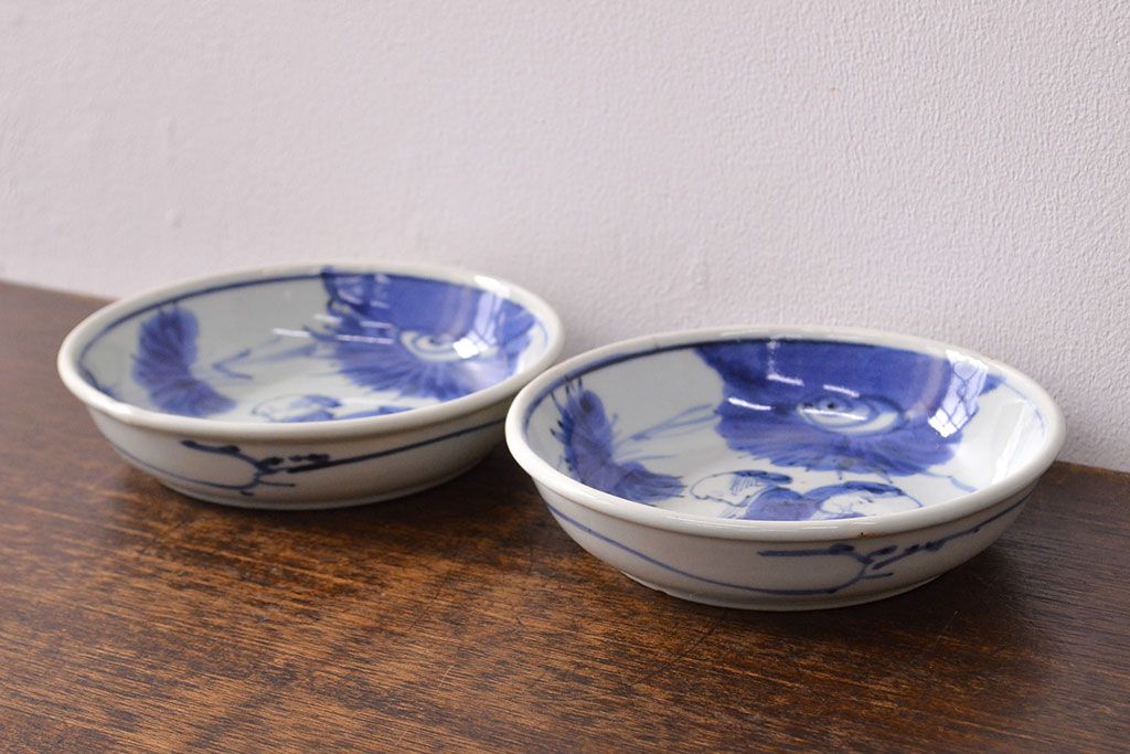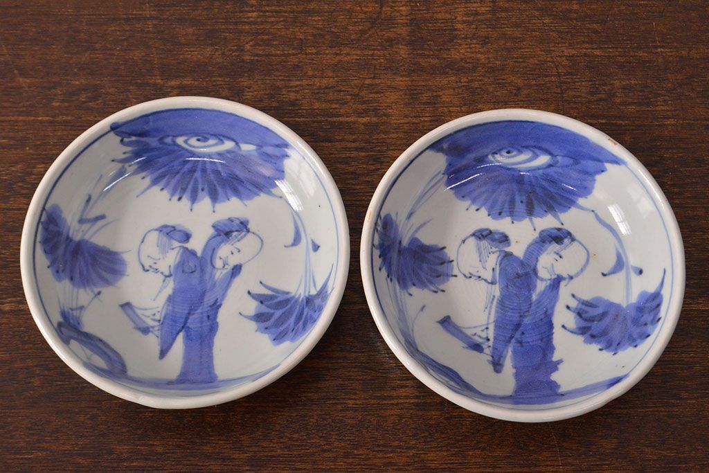江戸期 古伊万里 染付仙人図 なます皿2枚セット(中皿、和食器)(R-051999)