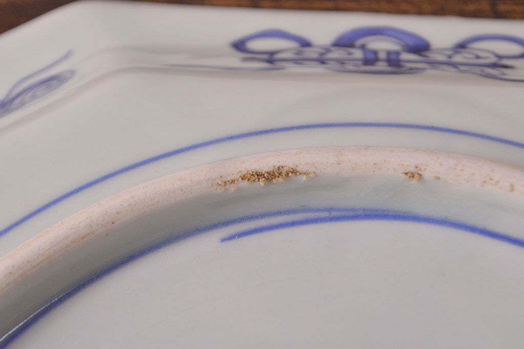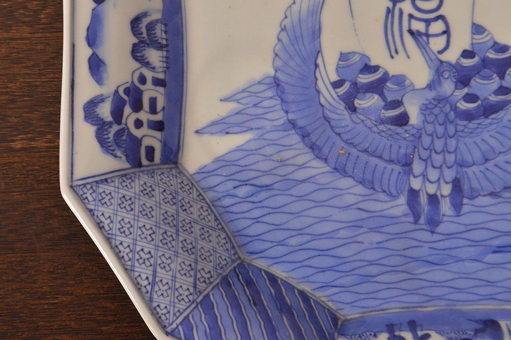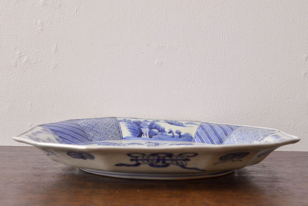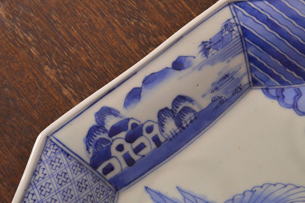 ラフジュ工房> 和食器・茶道具 > 江戸期 古伊万里 大明成化年製 鶴の図 染付 十二角皿(和食器)(R-052002)
