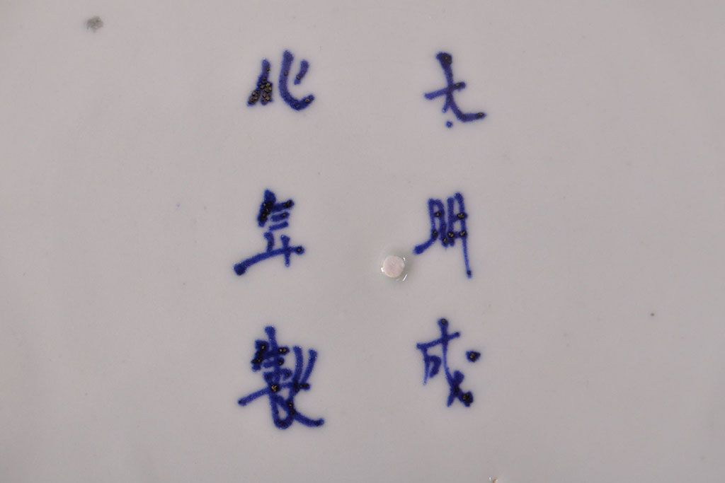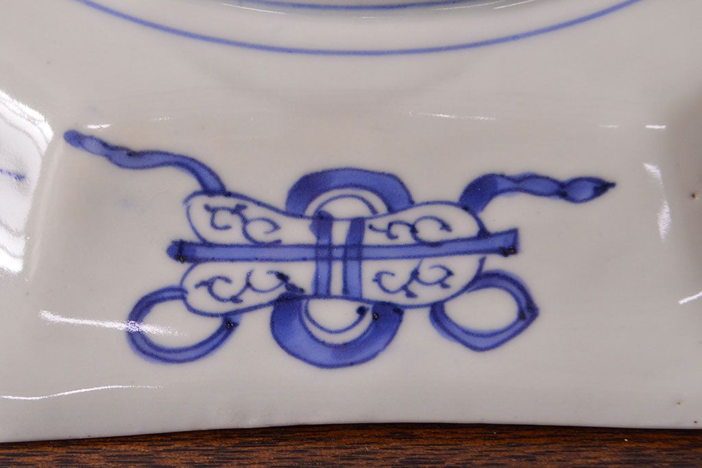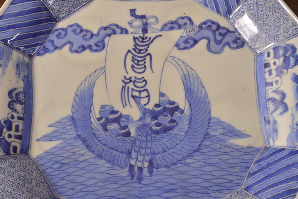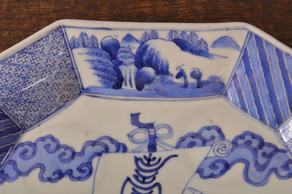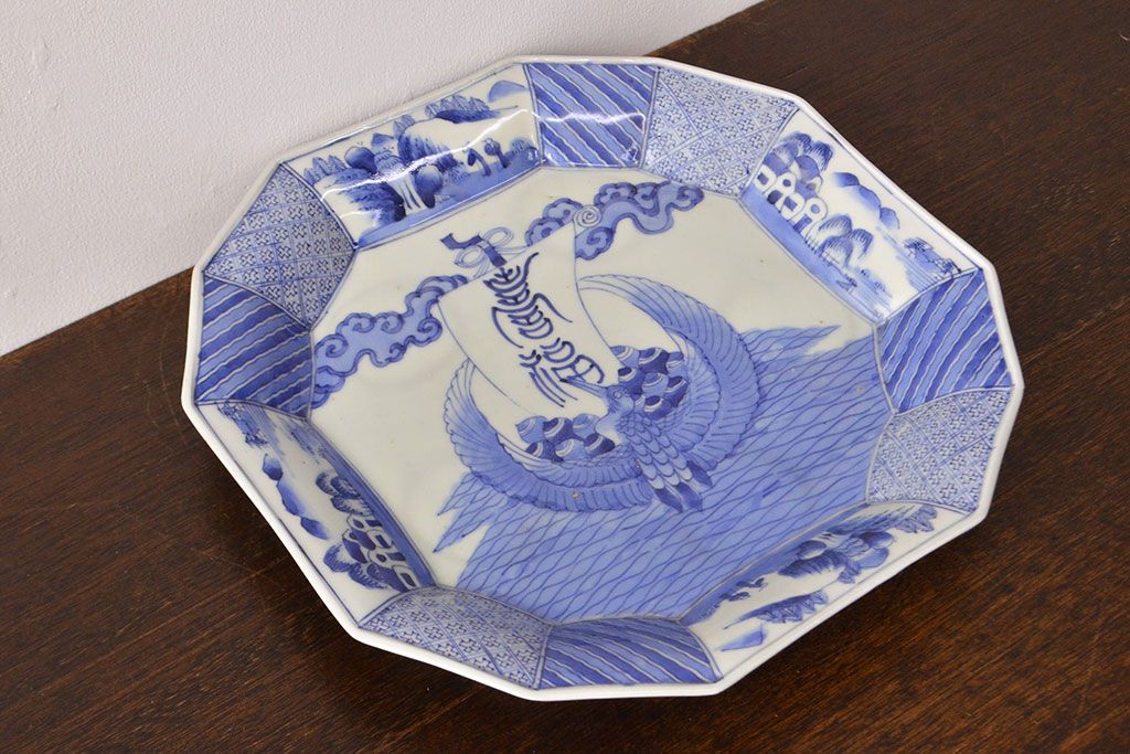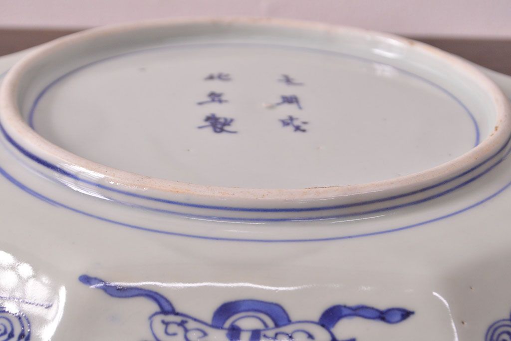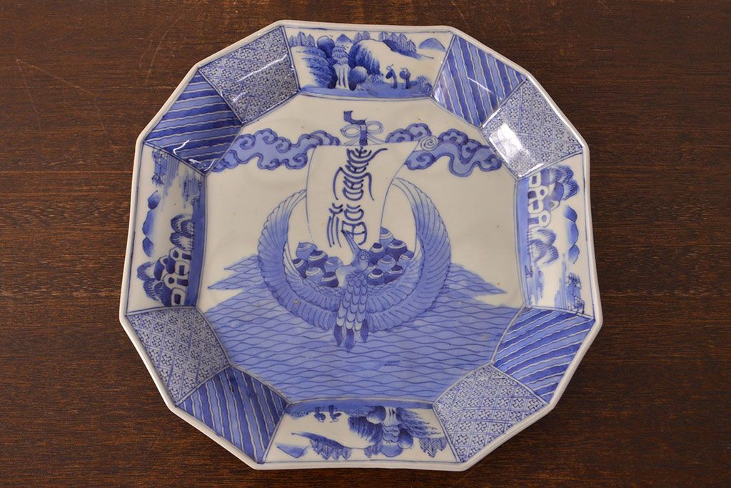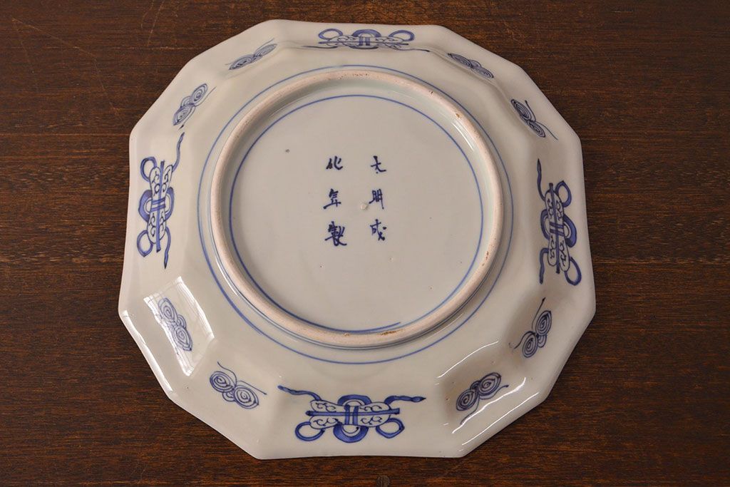 ラフジュ工房> 骨董・美術品> 骨董-陶磁器 > 江戸期 古伊万里 大明成化年製 鶴の図 染付 十二角皿(和食器)(R-052002)