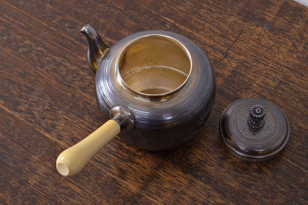 ラフジュ工房> 和食器・茶道具> 茶道具・鉄瓶 > 古い 純銀製 横手急須 247g(銀瓶、茶道具)(R-052004)