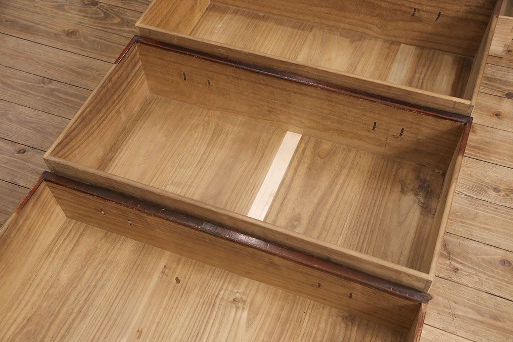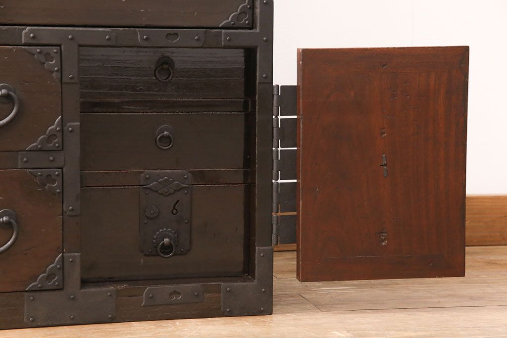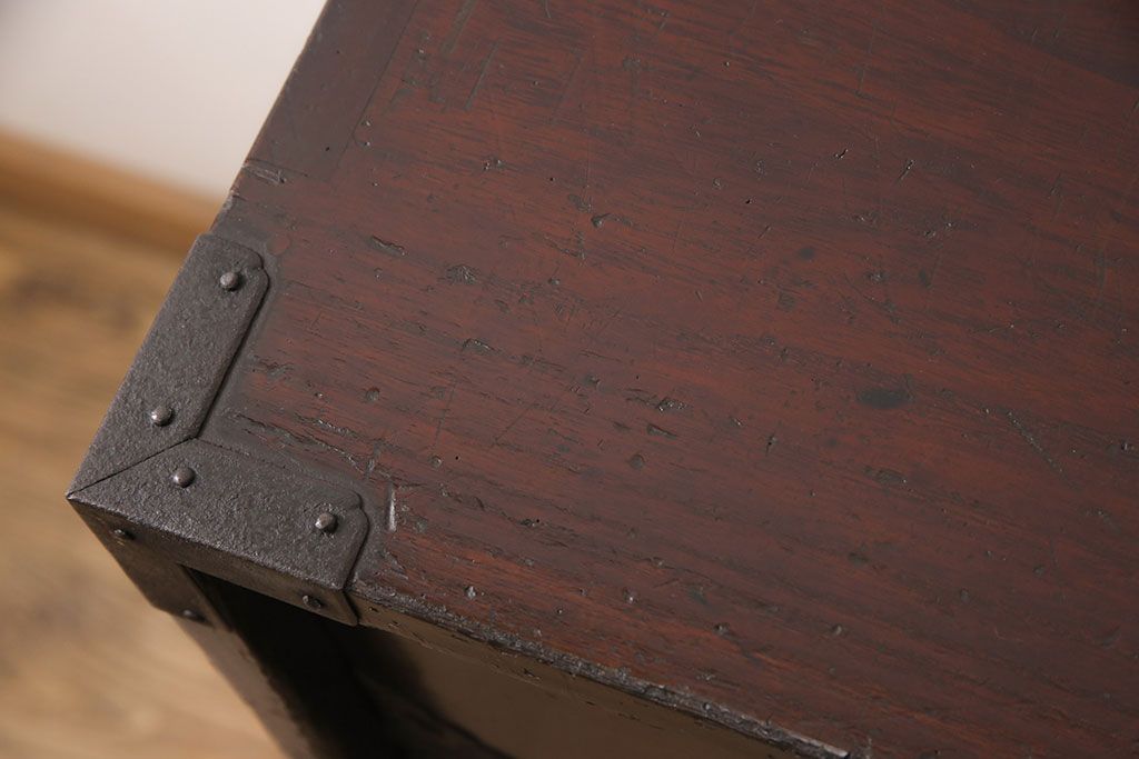セミオーダー家具実績 > 明治期の衣装箪笥の見た目を変えずに綺麗にリペア!金具の錆は黒染め。1トーン落ち着いた色味に着色し仕上げ。(収納箪笥、和タンス、時代箪笥)