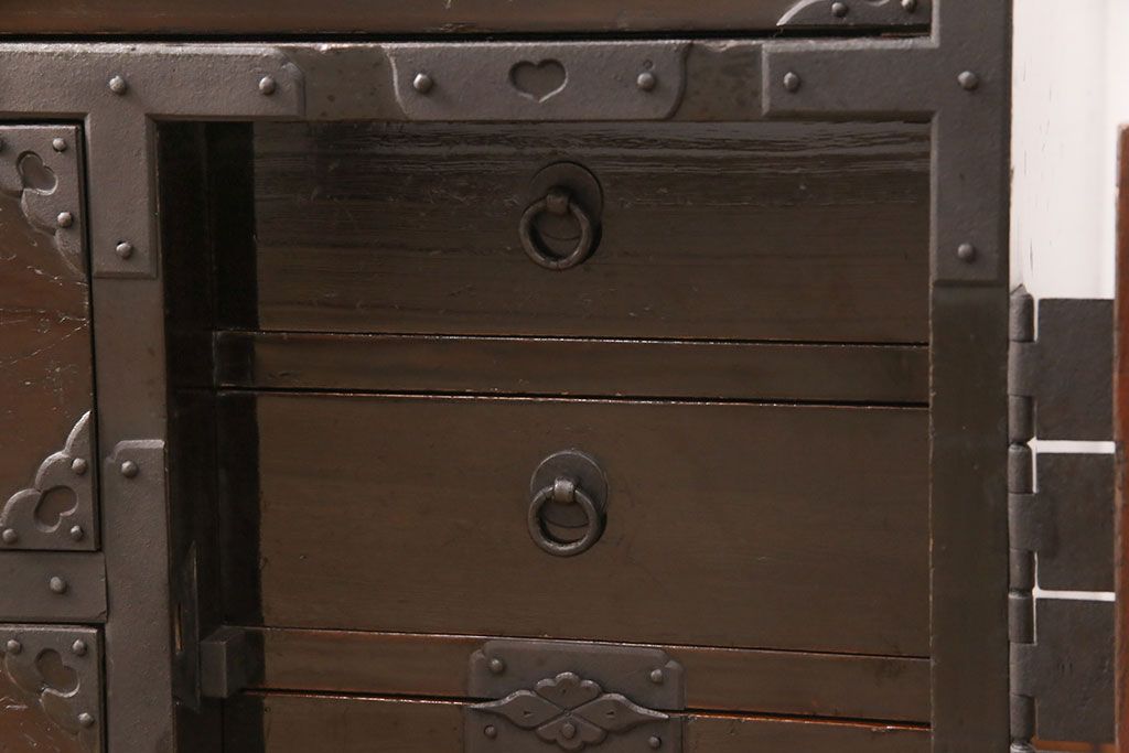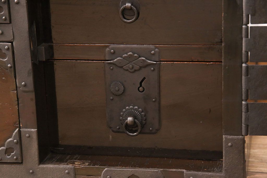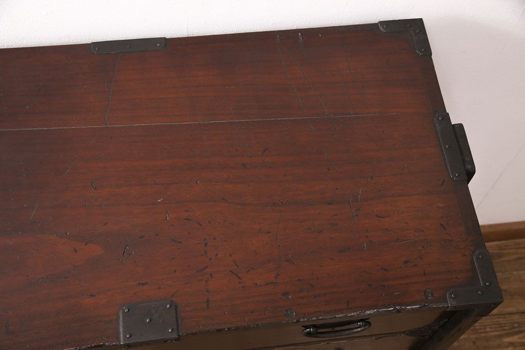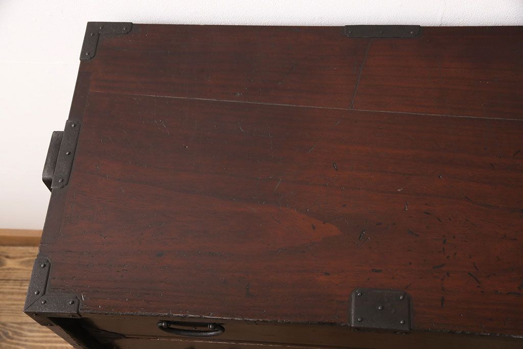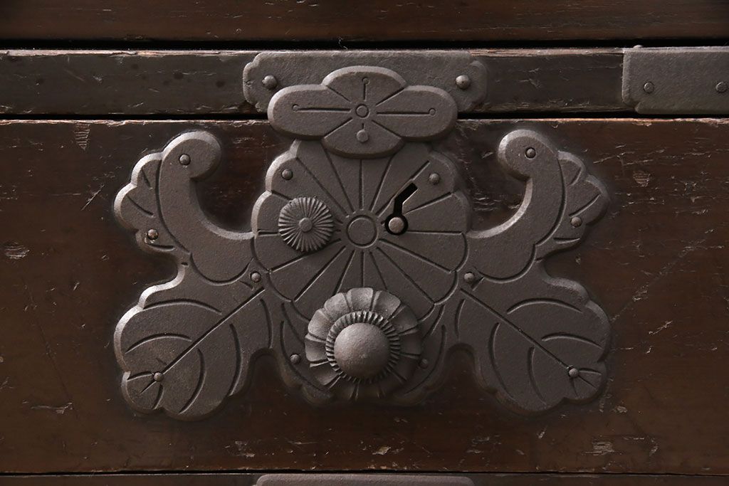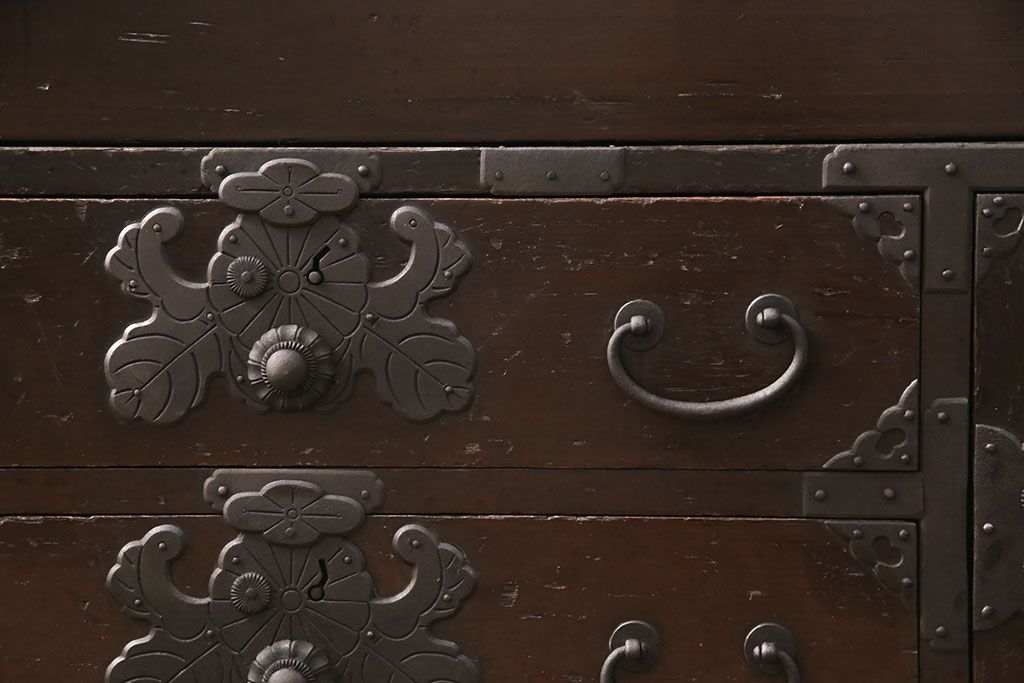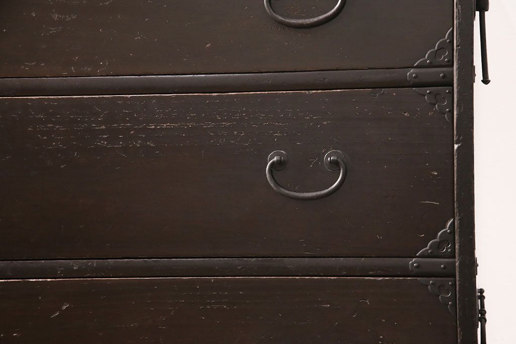 和箪笥> 衣装箪笥 > 明治期の衣装箪笥の見た目を変えずに綺麗にリペア!金具の錆は黒染め。1トーン落ち着いた色味に着色し仕上げ。(収納箪笥、和タンス、時代箪笥)