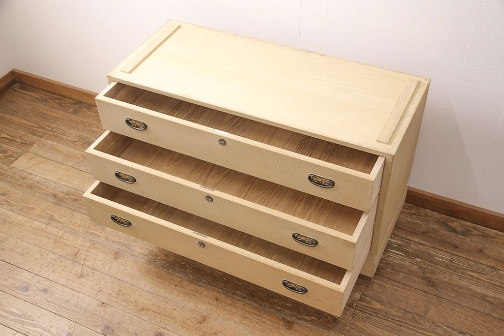 中古 美品 天板リメイク 伝統工芸士・東樹義明作 取り入れやすいサイズの加茂総桐箪笥・下段(胴厚、四方丸)(総桐たんす、衣装タンス、ローボード、ローチェスト)(R-052099)です。